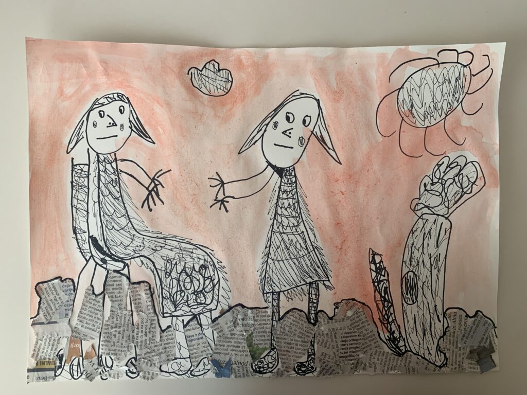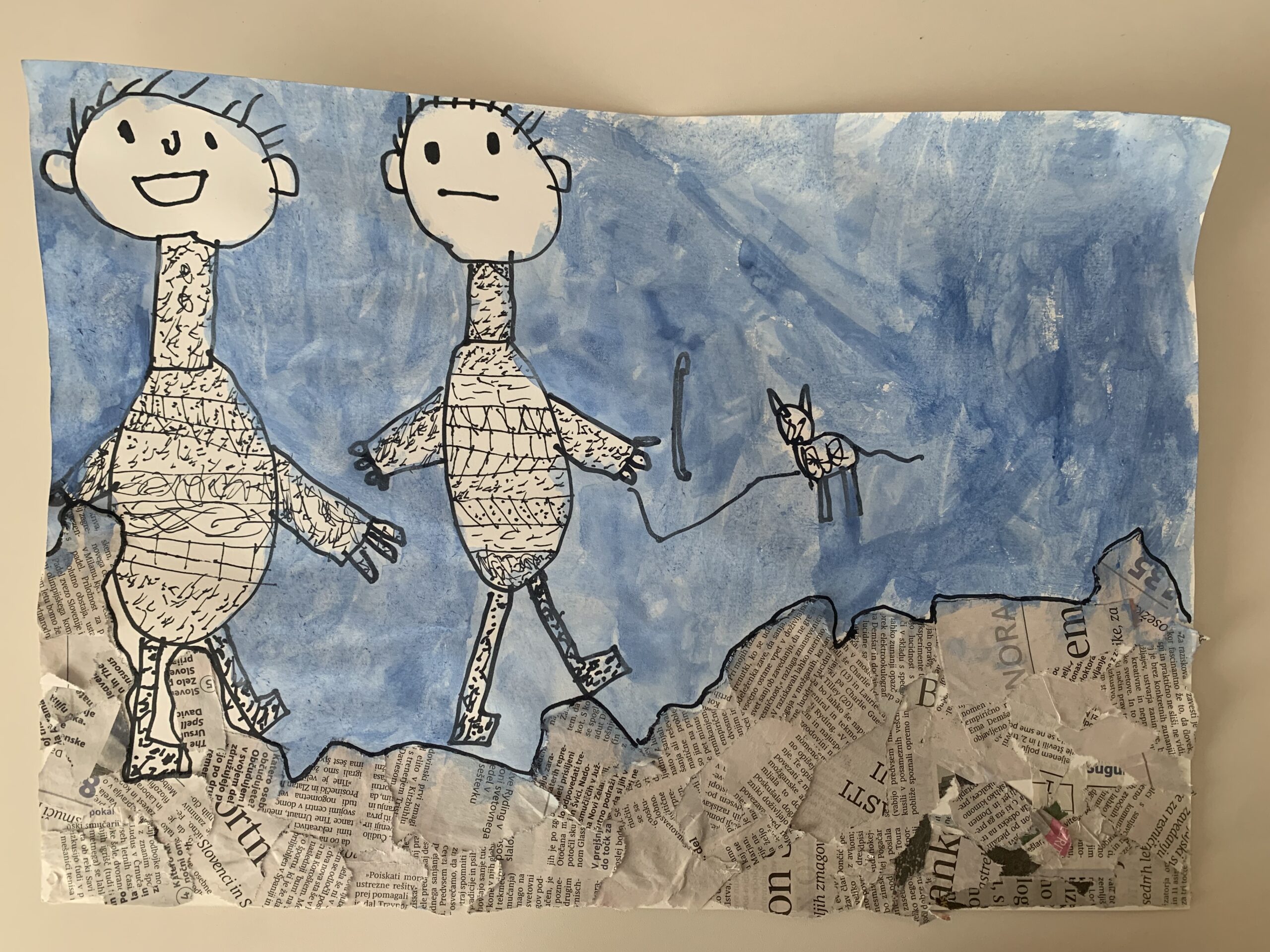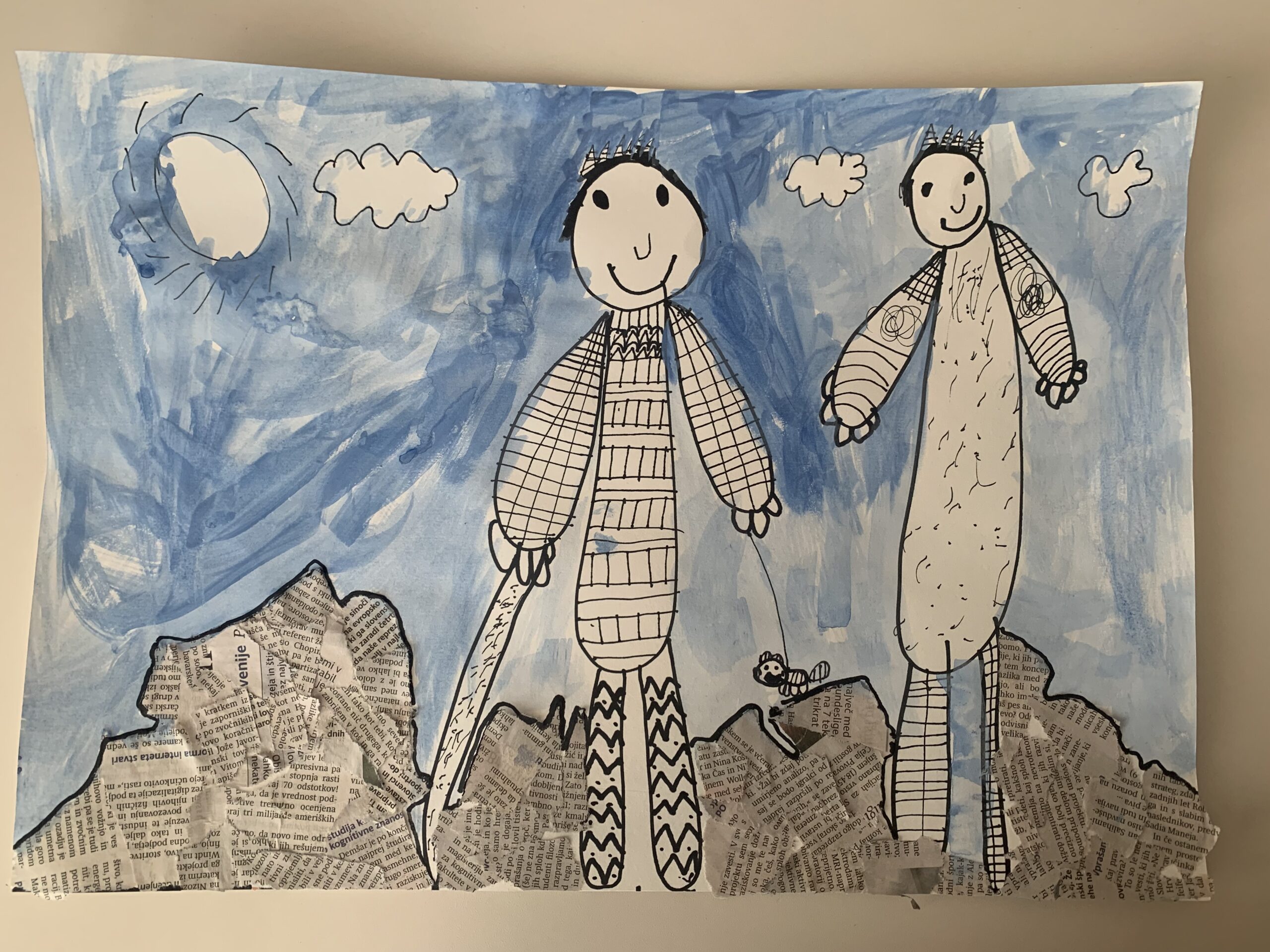 Uprava Republike Slovenije za zaščito in reševanje je v šolskem letu 2022/2023 razpisala natečaj »Naravne in druge nesreče – Pomoč potrebujemo vsi.«Naravne in druge nesreče se dogajajo vsakodnevno. Ob naravnih in drugih nesrečah nam pomagajo reševalci, pa tudi vsak posameznik po svojih močeh in sposobnostih. V letošnjem natečaju smo poseben poudarek posvetili invalidom, ki živijo, se šolajo in delajo med nami. Invalidi zaradi različnih oblik invalidnosti ob naravnih in drugih nesrečah potrebujejo dodatno pomoč. Pri pouku smo se pogovarjali o katastrofalnem potresu v Turčiji. Prvošolci so nato v mesecu februarju ustvarjali likovne izdelke na temo Pomoč potrebujemo vsi. Pri ustvarjanju so uporabili kombinacijo različnih likovnih tehnik. Najprej so natrgali in prilepili koščke časopisnega papirja, ki so predstavljali ruševine. Nato so s črnim flomastrom narisali otroke, ki pomagajo invalidnim otrokom. Na koncu pa so z izbrano barvo pobarvali še ozadje.