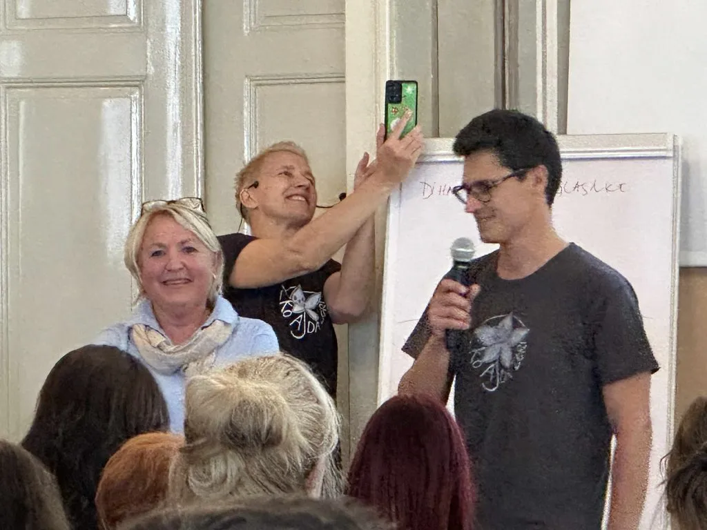 Ena od šestih delavnic je bila tudi naša Ajda. Damjana Vončina, ki je delavnico vodila, je k besedi povabila tudi skladatelja muzikala Andreja Makorja, libretistko Lilijano Homovec in ravnateljico naše šole Karmen Simonič Mervic. V prvi polovici delavnice so slušatelji dobili pregled nad celotnim projektom (zasnova, organizacija, izpeljava). Druga polovica pa je bila namenjena spoznavanju glasbenih delov muzikala. Preko 250 slovenskih zborovodji je tako v Termah Dobrna pelo skladbe iz naše Ajde.