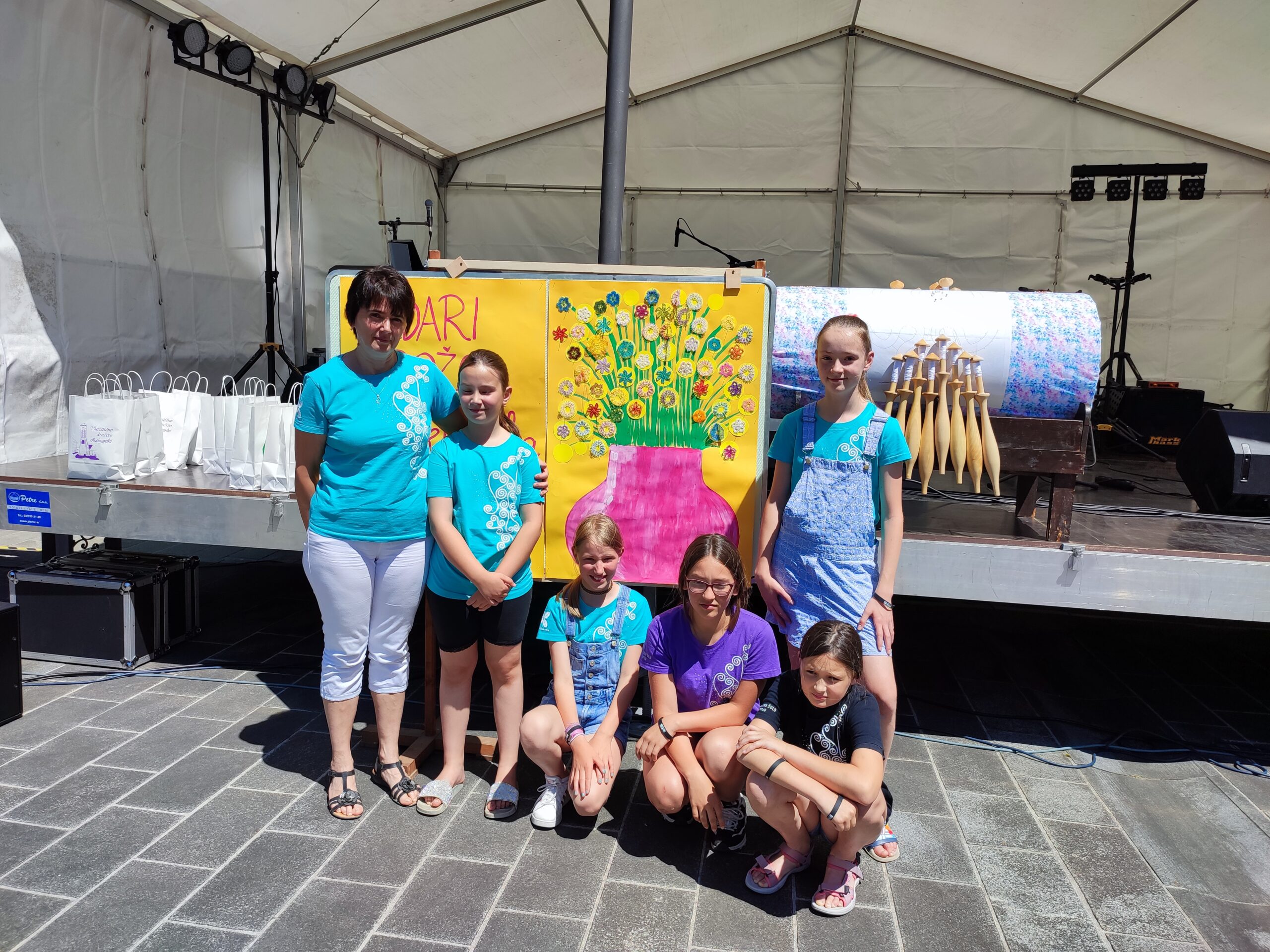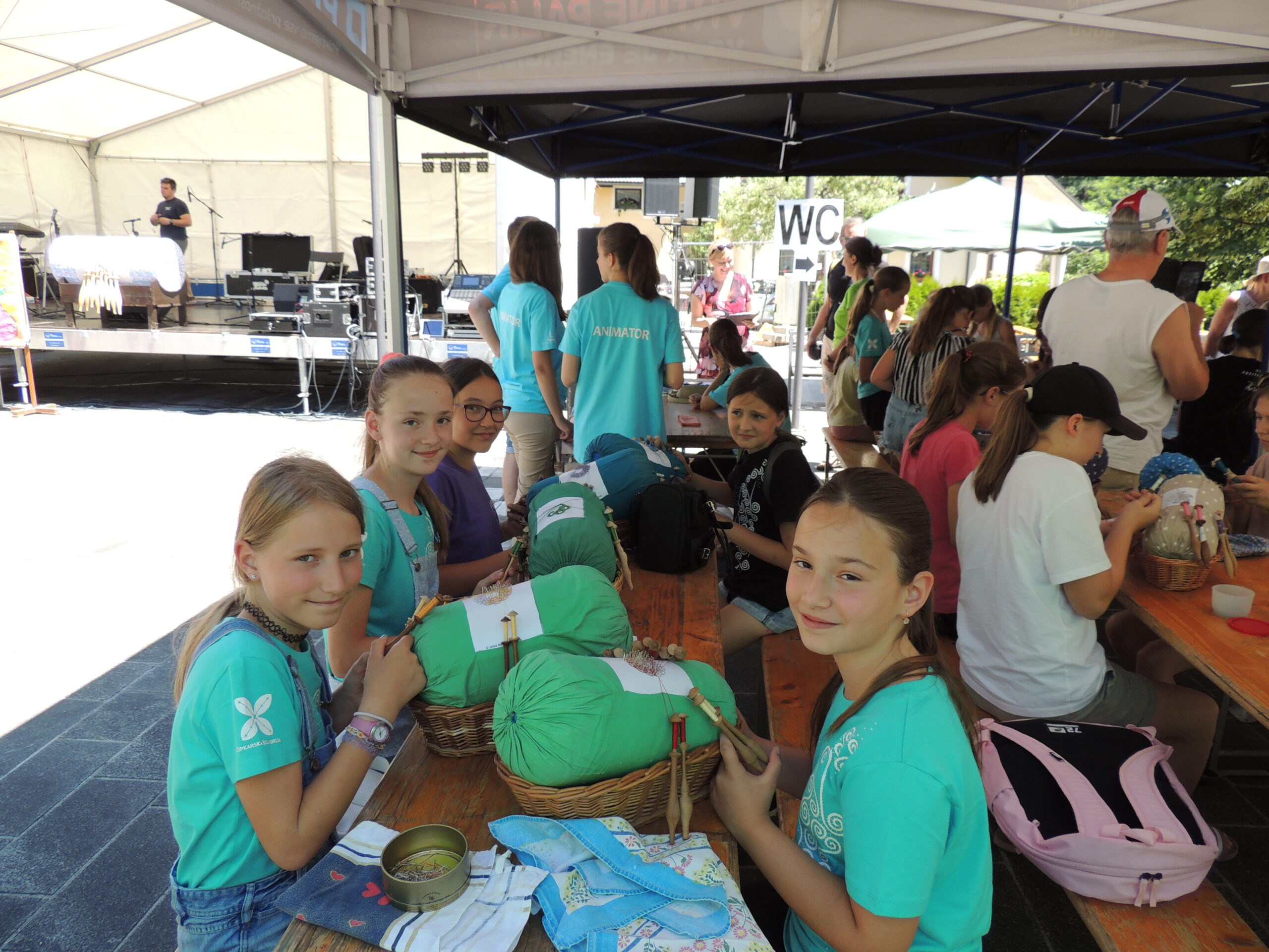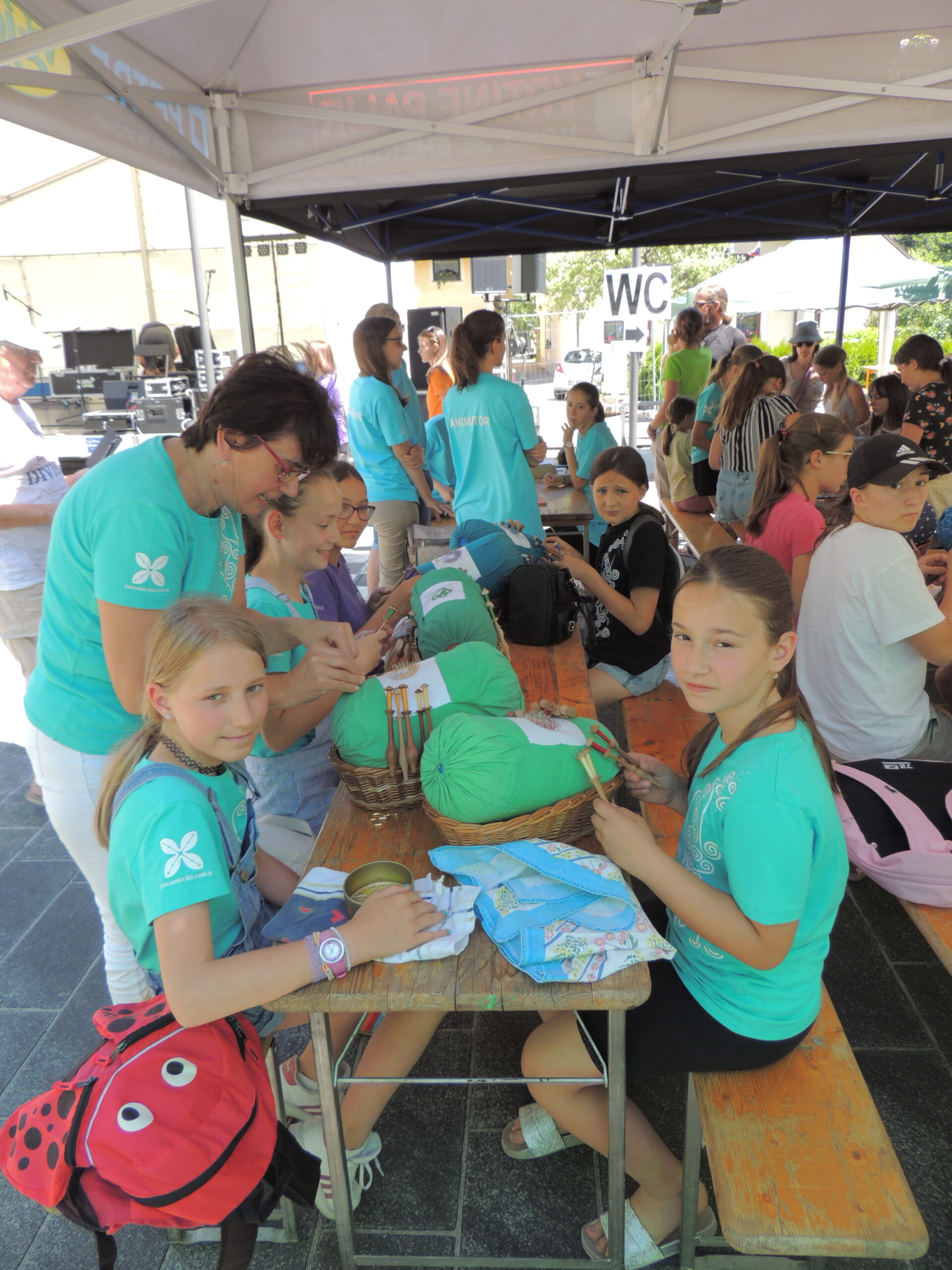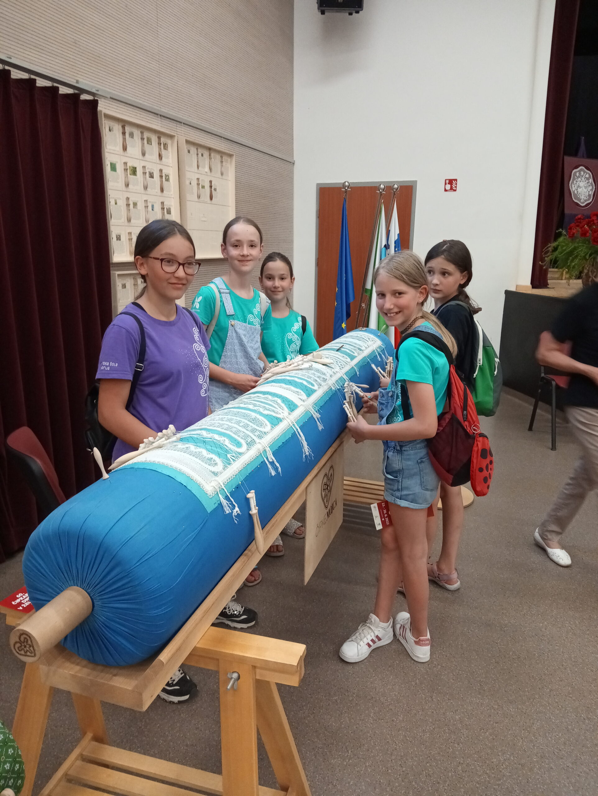 Po zaključku klekljanja smo si ogledali razstave. Učenke so se preizkusile v klekljanju na buli velikanki. Sprehodile smo se med stojnicami, kjer nas je prijetno presenetila gospa Andreja, ki je vsaki izmed nas podarila rolico barvanega sukanca po izbiri.