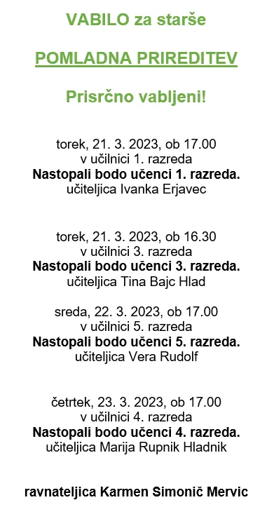 Naši učenci vabijo