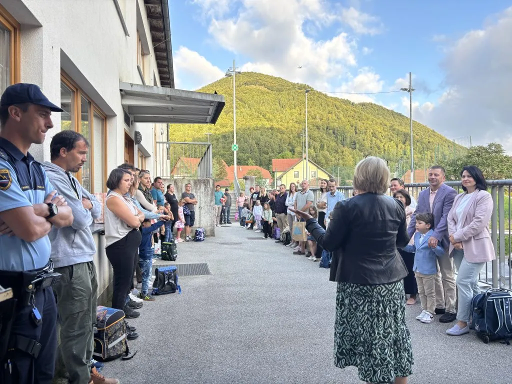 Učence prvega razreda so do učilnice v sprevodu in z aplavzom pospremili ostali učenci razredne stopnje ter njihove razredničarke.