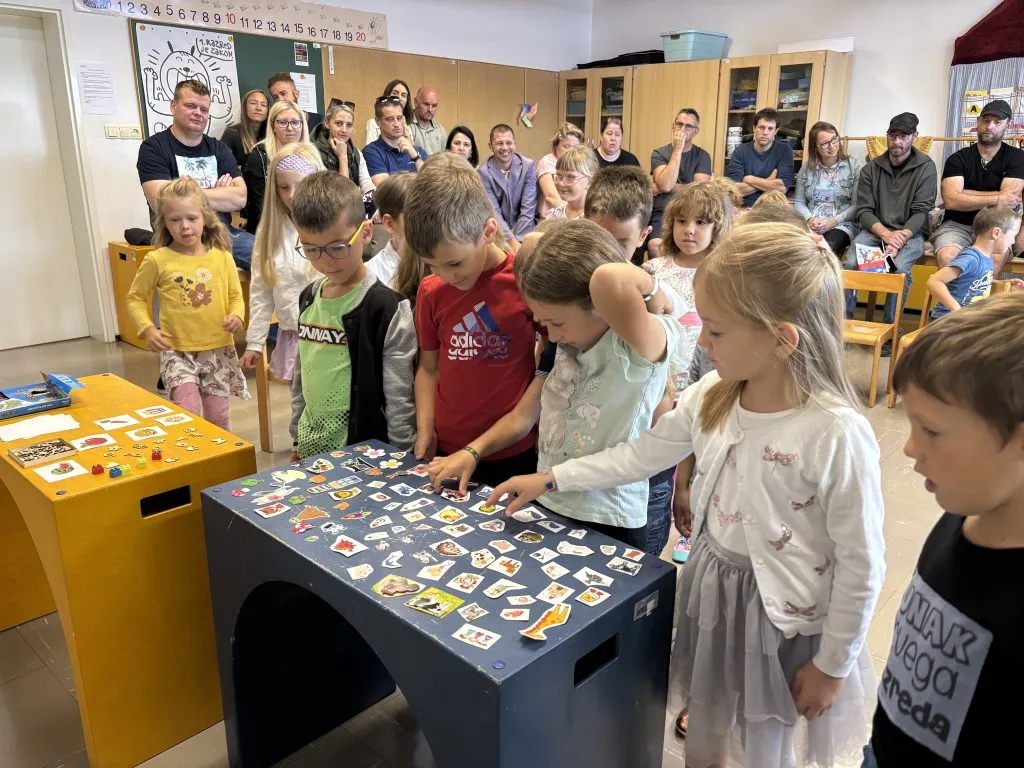 V učilnici so prvošolci prisluhnili pravljici Povabilo, avtorice Maje P. Kastelic, zatem pa oblikovali plakat, kjer se je vsak izmed učencev predstavil z nečim, kar rad počne. Ob koncu pa so vsi posladkali s kolački, ki jih je pripravila šolska kuharica Melita Lukančič.