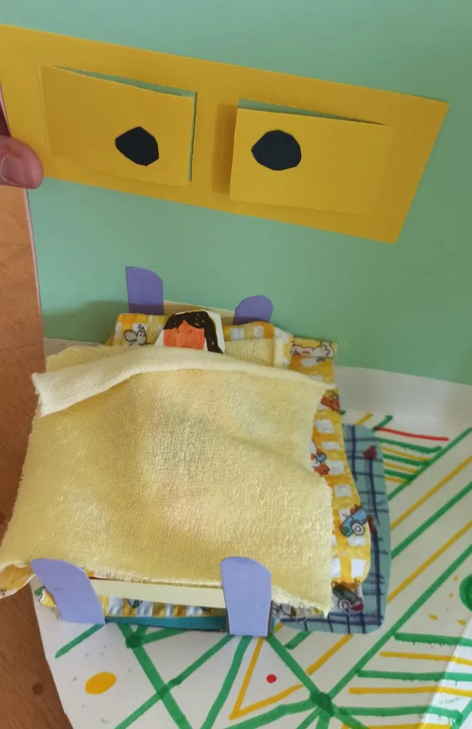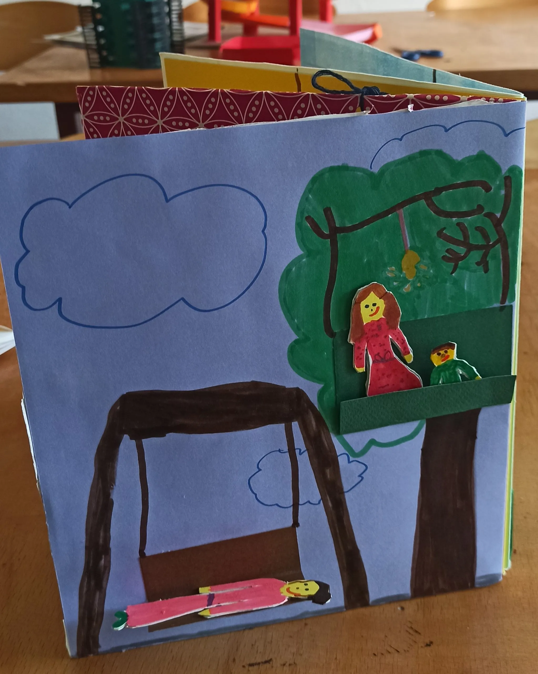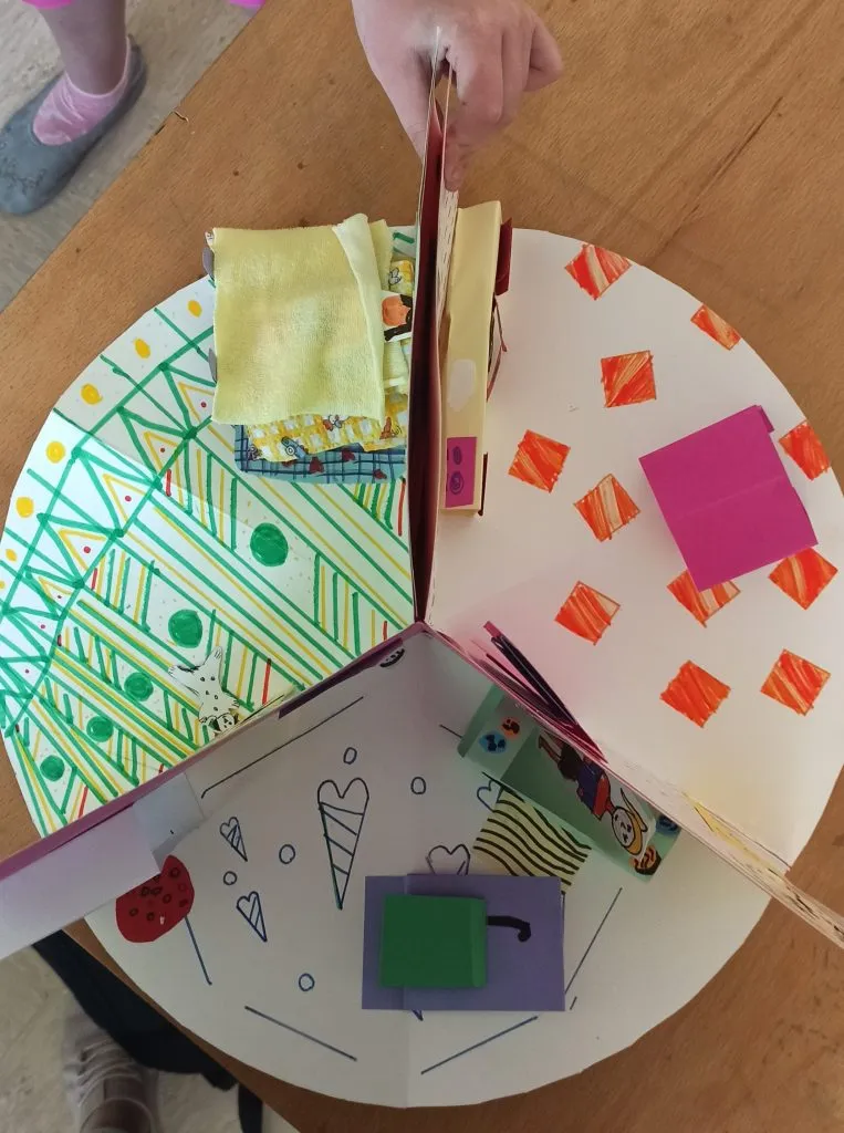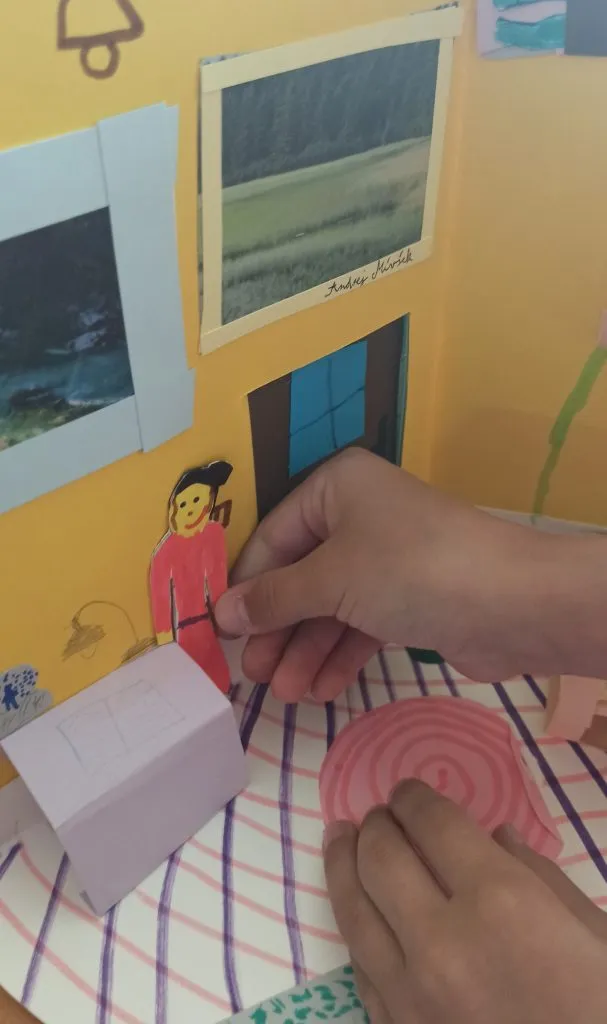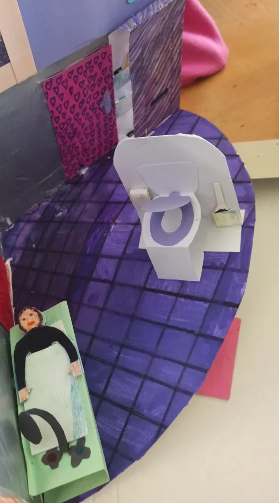 Učenke so se z veliko navdušenja posvetile večmesečnemu projektu, kjer so izdelovale trisobno stanovanje, ki je narejeno v tehniki pop up. Stanovanje namreč lahko zložiš in nastane oblika knjige. V njem so z mnogimi podrobnostmi narejeni stanovanjski elementi in seveda tudi stanovalci. In igra se lahko začne 🙂