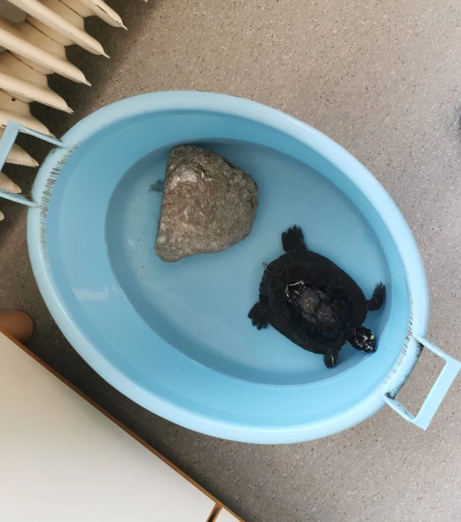 Naša dolgoletna spremljevalka, želva Francka, je pred kratkim doživela manjšo nesrečo – ostala je brez akvaterarija, ki ji je več let služil kot udoben dom. Ta se je med čiščenjem žal razbil. A Francka se ni pustila zmesti! Za nekaj dni smo jo preselili v začasen dom – priročen in topel škaf, kjer smo ji poskušali zagotoviti čim bolj udobno bivanje. Veliko se je gibala tudi med učenci.
