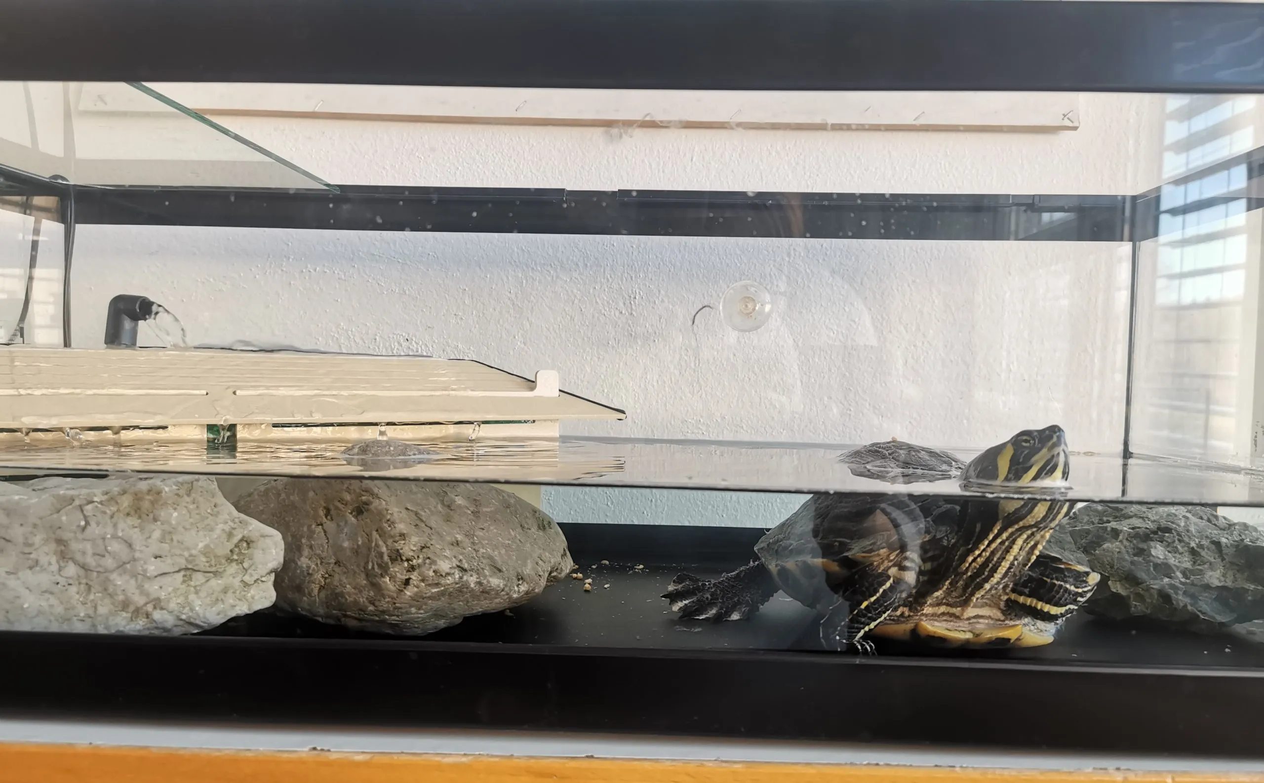 Po nekaj dneh pa smo za našo Francko uredili popolnoma nov akvaterarij. Njeno novo bivališče je prostorno, moderno in prilagojeno njenim potrebam, zato smo prepričani, da bo v njem zelo zadovoljna. Francka se že prilagaja na svoj novi dom, kjer si jo lahko še naprej ogledate in ji zaželite srečno bivanje.