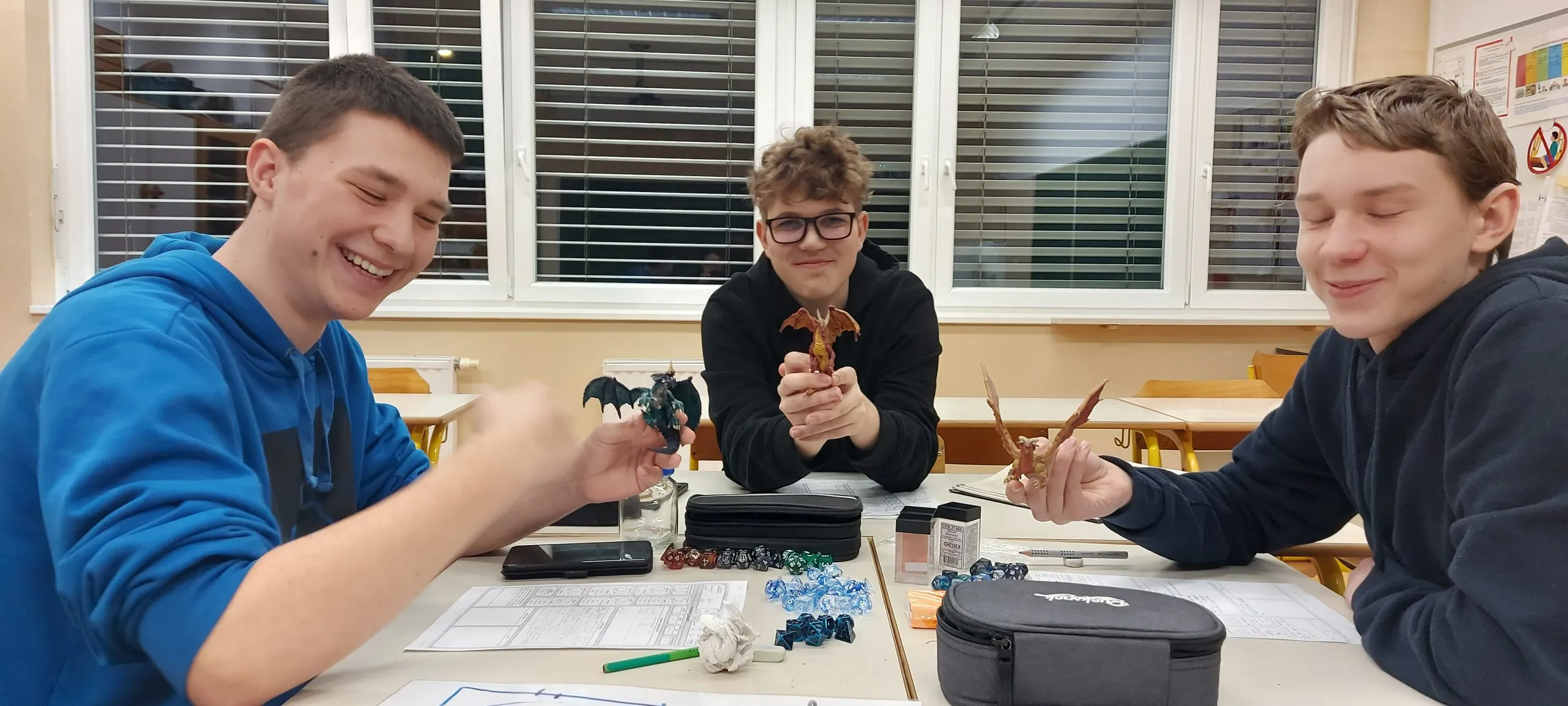 Prav tako pa smo veseli, ko se učenci vrnejo med naše zidove, da skupaj pojdemo raziskovati svetove onkraj našega – tiste svetove, kjer čarodeji vladajo mestom, zmaji grozijo kraljem in kjer so junaški pustolovci še kako nujna tržna niša.