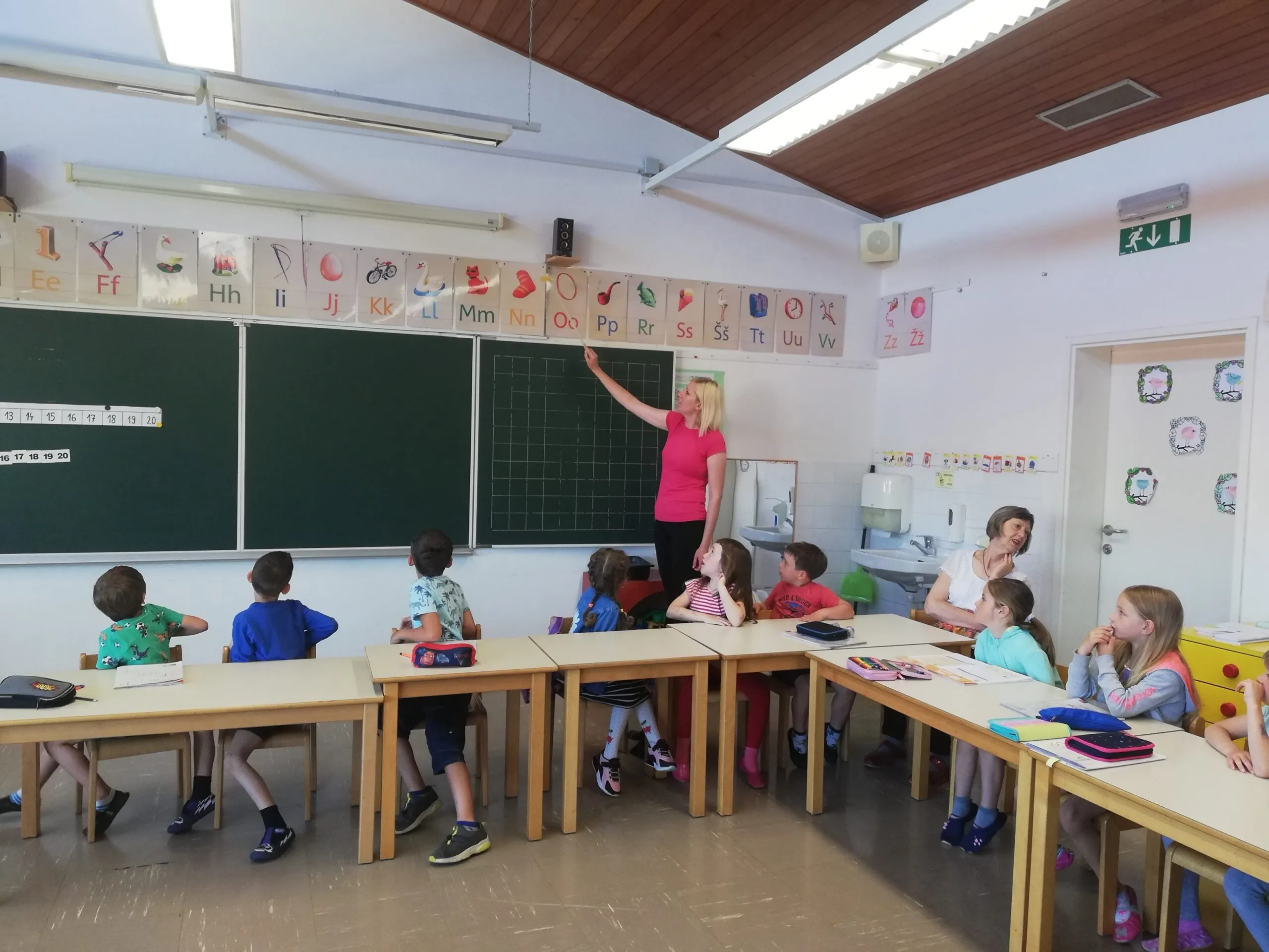 Otroke, ki so vključeni v vrtec, sta v šolo pripeljali vzgojiteljica Magda Gantar in študentka Jerneja Rupnik. Otroke, ki vrtca ne obiskujejo, pa je ob 7.55 pred vhodom osnovne šole sprejela učiteljica Ivanka Erjavec. Pripeljali so jih starši ali pa stari starši.