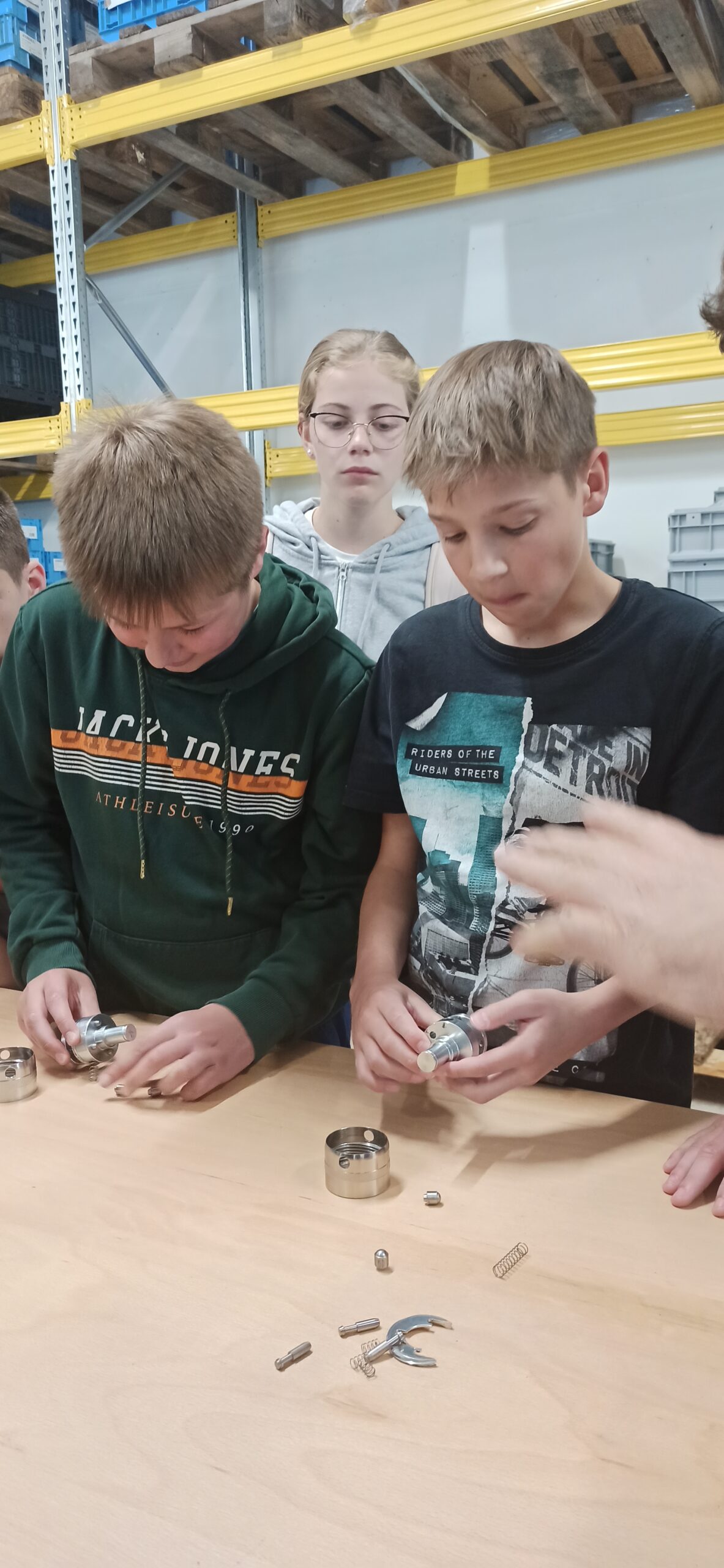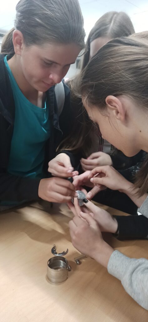 Z osmošolci smo se odzvali na prijazno povabilo podjetja Almat d.o.o. iz Godoviča, da jih obiščemo in spoznamo njihovo dejavnost. Tako smo v četrtek, 15. 6., naši uri tehnike in tehnologije začeli v njihovi proizvodni hali v Godoviču. Na zanimiv in animiran način sta nam lastnika tega družinskega podjetja predstavila njihovo delo in učenci so lahko neposredno sledili procesu izdelave kovinskih izdelkov – polizdelkov. Ob zaključku so tekmovali v sestavljanju kompleksnejšega kovinskega kosa in dekleta so za las premagala fante. Za nagrado pa so si vendarle vsi prislužili slastno darilo.