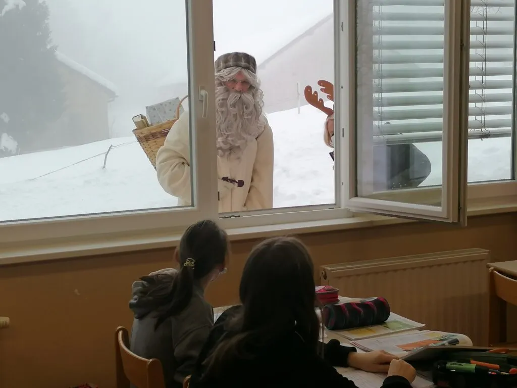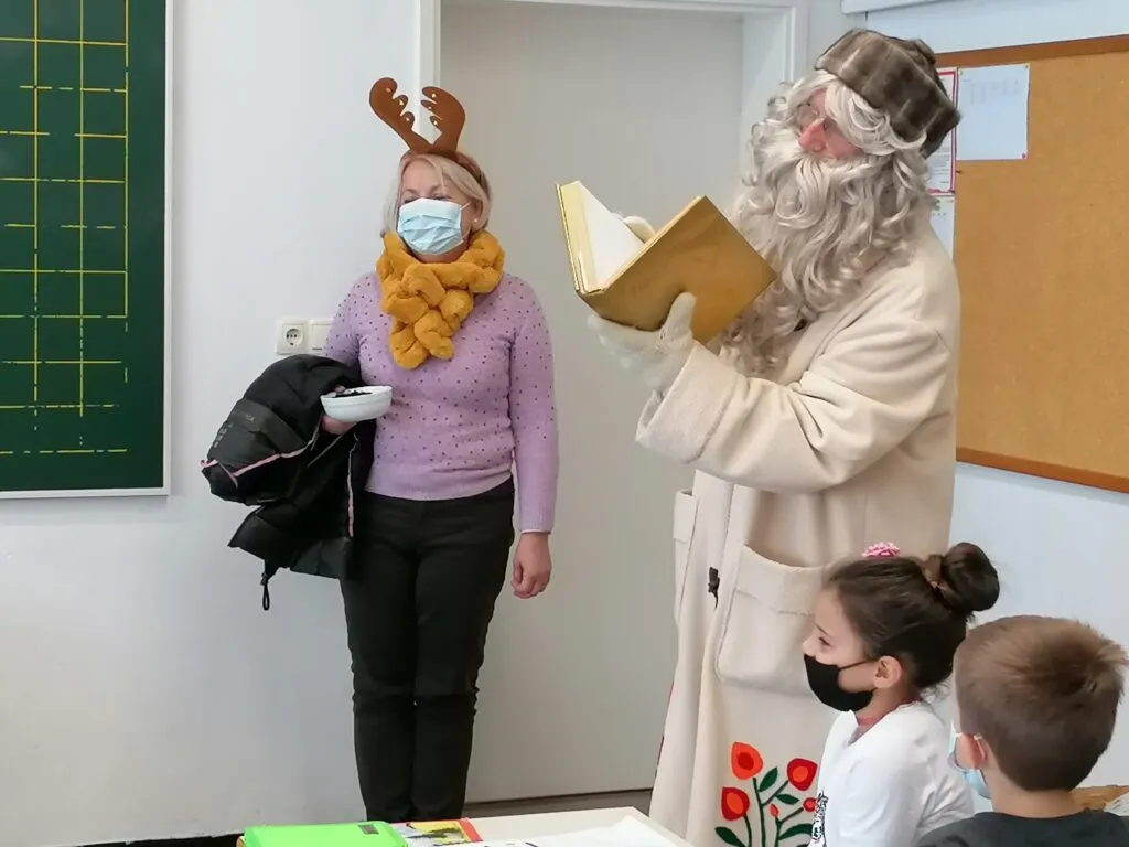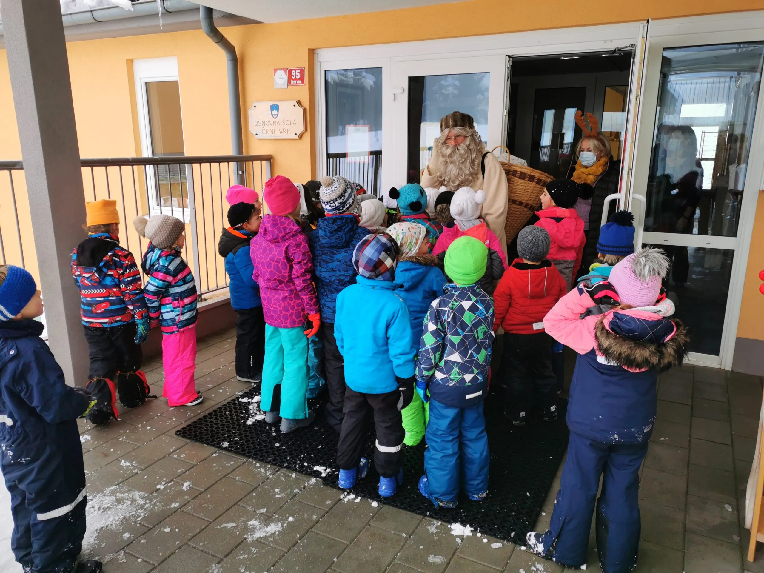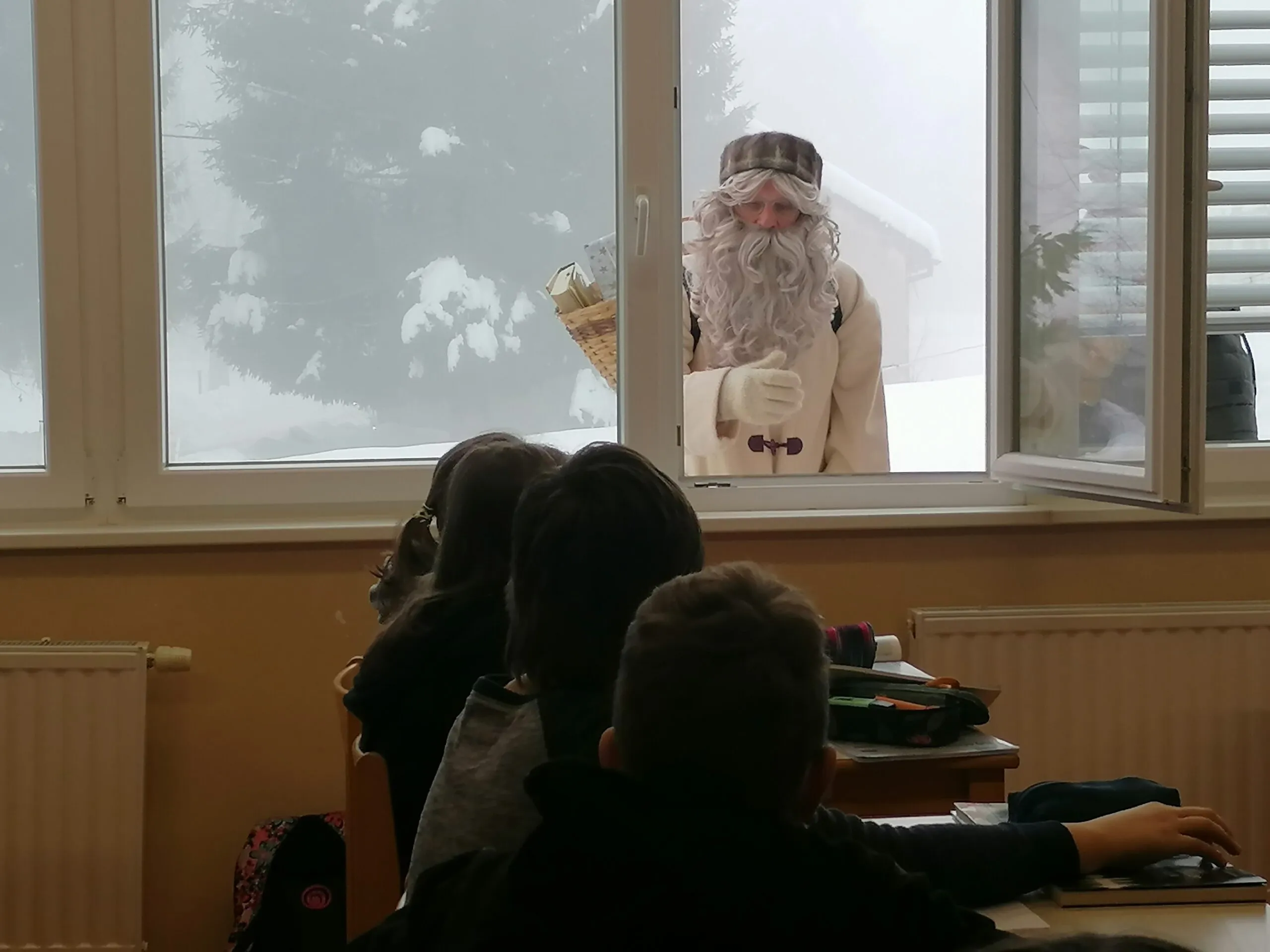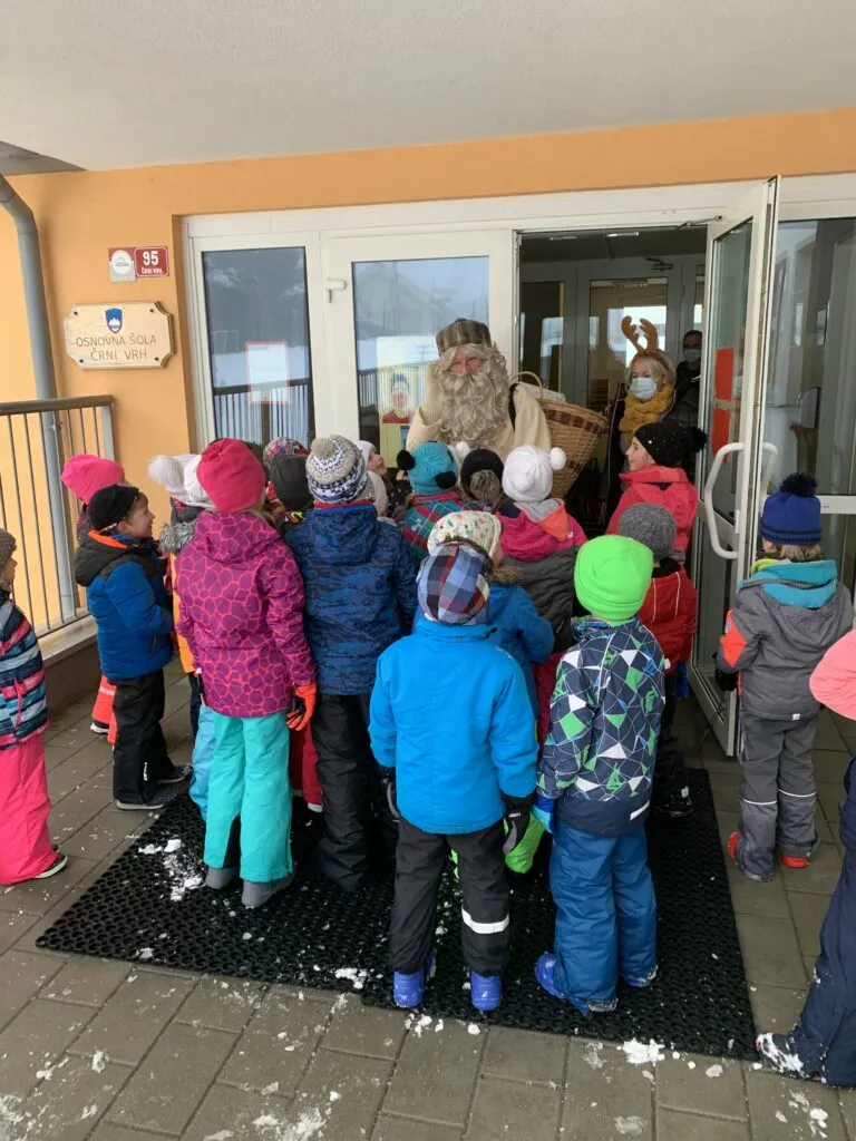 Danes, 15. 12. 2021, smo na šolo dobili zelo visok obisk. Obiskal nas je sam dedek Mraz. Na svoji poti je zavil tudi na našo šolo, se srečal z učenci, se z njimi pogovoril in njim povedal par lepih in modrih misli. Na njegovi poti po šoli je imel tudi spremljevalko, ki ga je vodila od učilnice do učilnice.