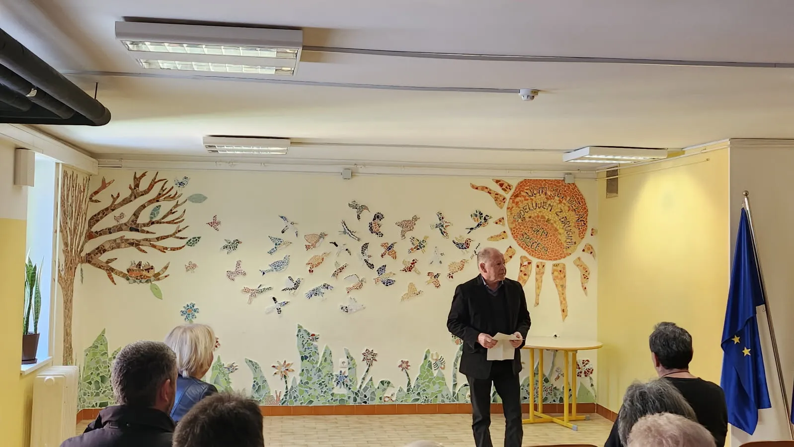 V šolski avli je 20. februarja potekla kratka slovesnost v spomin na Janka Premrla Vojka. Ravnateljica šole je v pozdravu povedala: «Prihod v šolo je pospremljen s pogledom mladega človek, ki danes v podobi kipa spominja na čase, ko se je postavljala in postavila osnova za danes. Toplo vas pozdravljam v slovenski šoli. Jezik je tisti, ki nas povezuje. Jezik je osnova za izražanje vsega, kar nas ljudi dela človeške – preko njega izražamo kaj čutimo, kaj znamo, kaj želimo sporočiti. Beseda, naj bo zapeta, pripovedovana ali napisana, je orodje za ustvarjanje.«