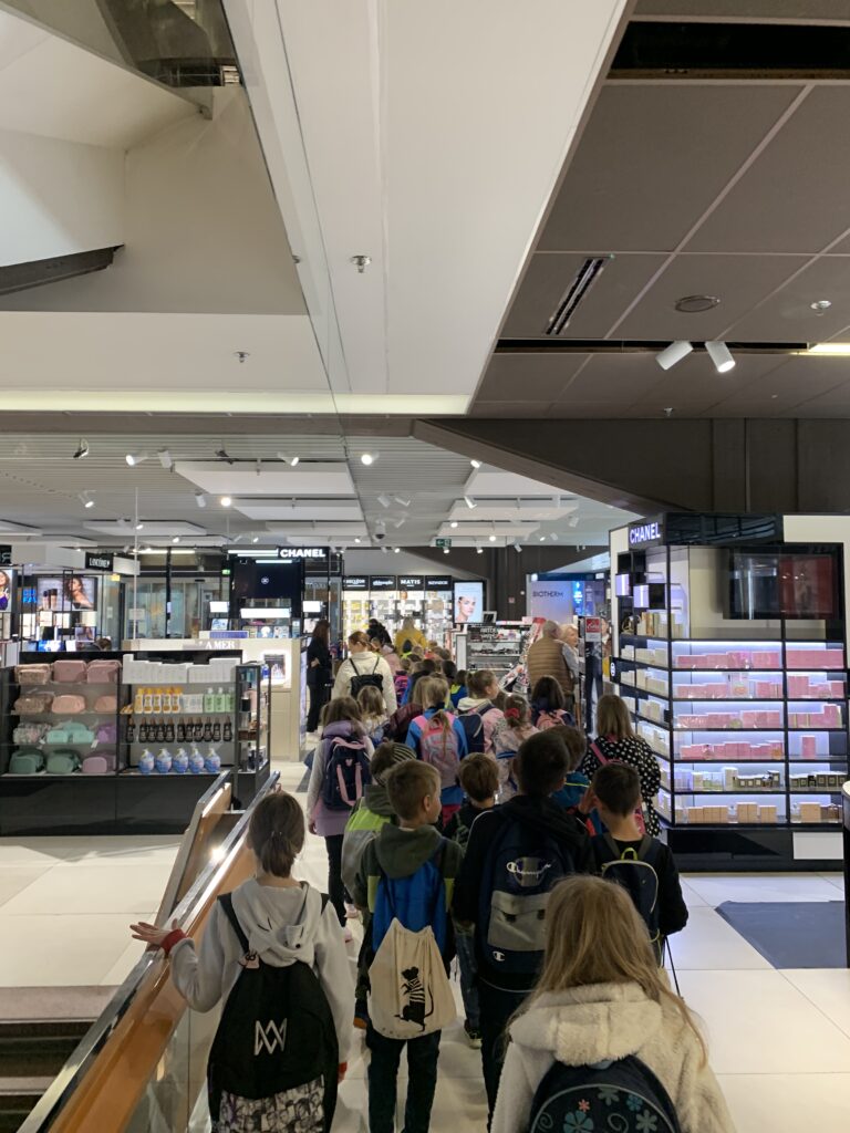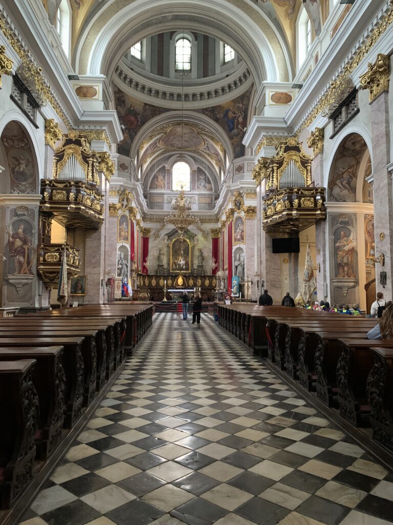 Sprehodili smo se čez Kongresni trg, Tromostovje in Prešernov trg, se povzpeli po tekočih stopnicah trgovine Maximarketa, si ogledali pročelje Slovenskega parlamenta, prehodili tržnico, si ogledali ribarnico in vstopili v stolnico.