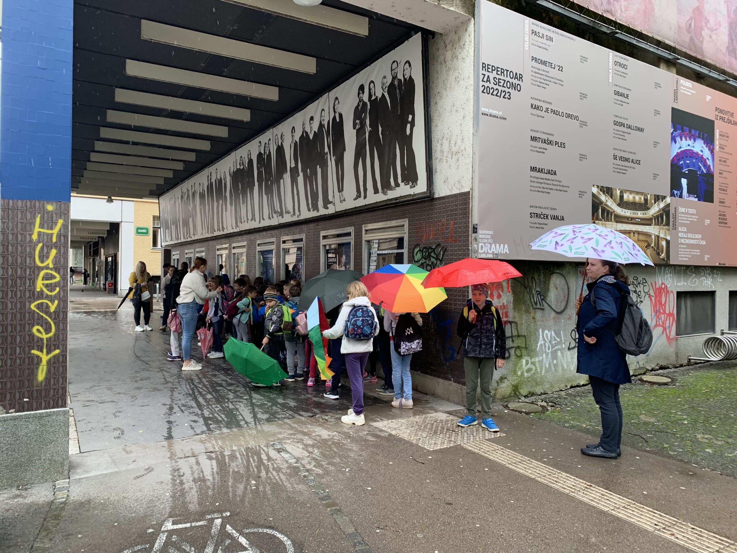 Pot smo zaključili pred Slovensko dramo, kjer smo počakali avtobus in se polni novih vtisov, izkušenj in znanj opravili proti Črnemu Vrhu.