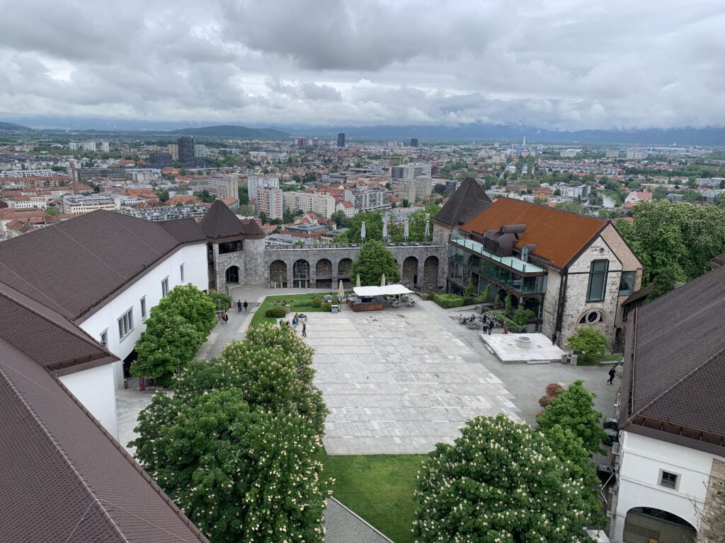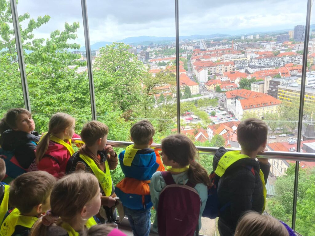 Pot smo začeli na Kongresnem trgu, kjer smo zapustili avtobus in se peš odpravili do Lutkovnega gledališča. V dveh skupinah smo se vkrcali v vzpenjačo in se povzpeli nad mestne ulice.
