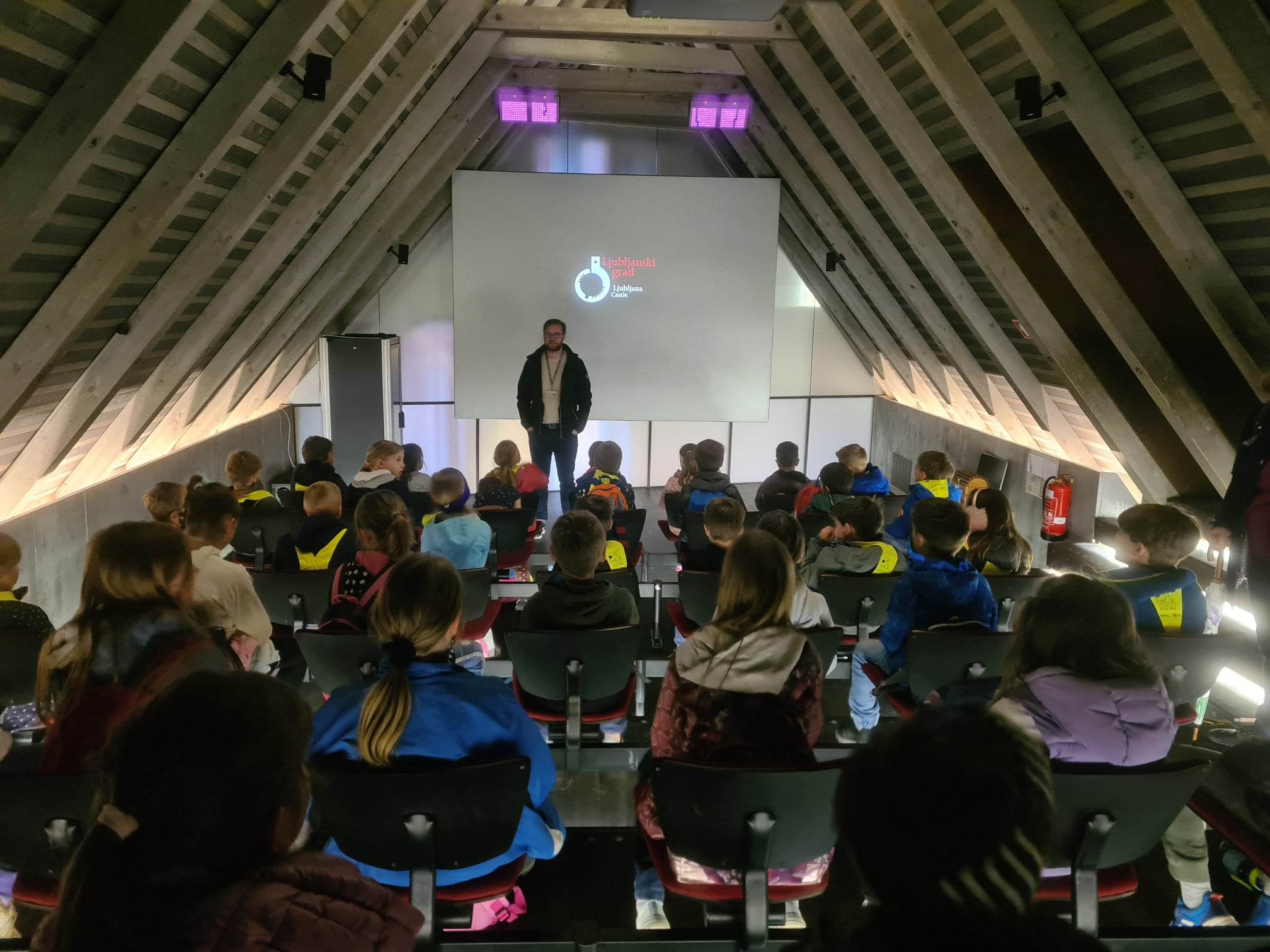Ogled gradu smo zaključili z ogledom video predstave o zgodovini gradu in njegovih spremembah skozi čas.