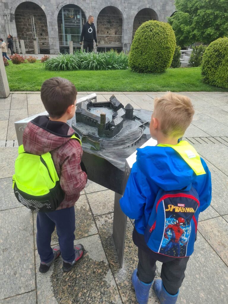 V zavetju zidov gradu smo pomalicali in spoznali vodiča, ki sta nas v dveh skupinah popeljala po sledeh zmaja Francija do skritega zaklada.