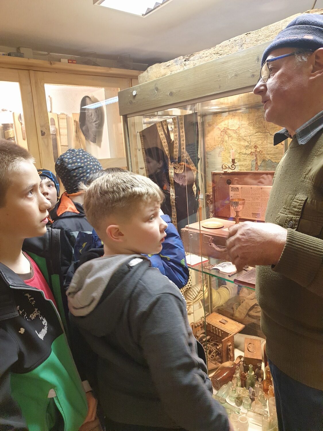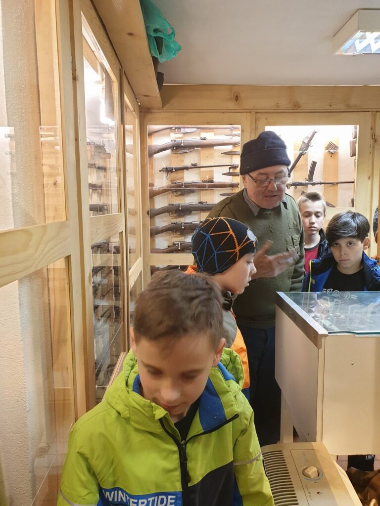 V ponedeljek, 27. 3. 2023, smo si z učenci to zasebno zbirko ogledali. Gospod Rudolf nam je ob eksponatih, ki jih je našel večinoma na Črnovrškem in jih ima razstavljene v vitrinah v treh prostorih, povedal zelo zanimive podatke in zgodbe iz preteklosti. Ob tej priložnosti se mu zahvaljujemo, ker nam je odprl vrata svojega zasebnega muzeja in učencem povedal, zakaj je začel z raziskovanjem prve svetovne vojne ter kaj vse se lahko ob teh zbirkah, ki prikazujejo življenje v preteklosti, naučimo.