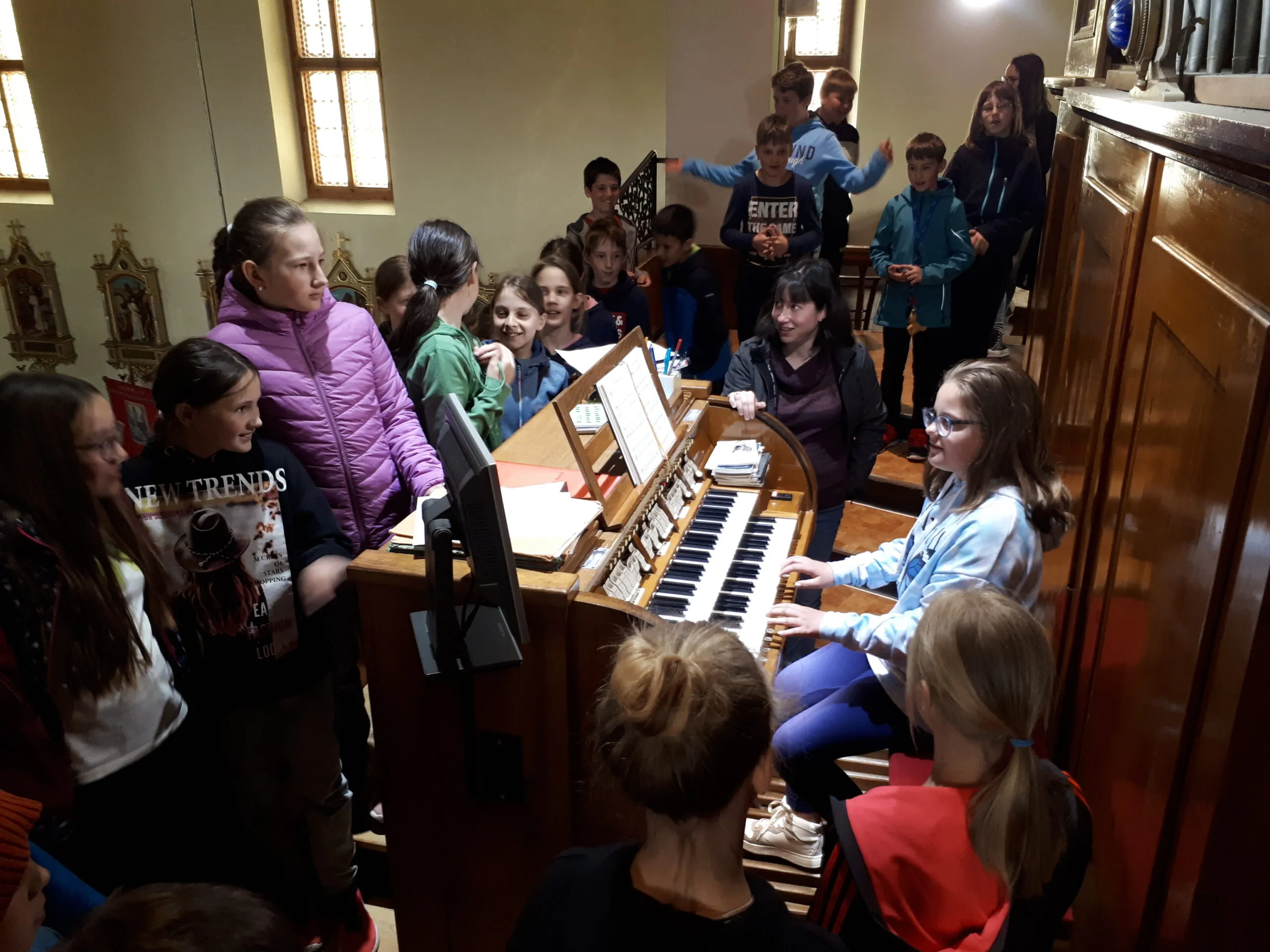 Gospa Polona Rudolf Žigon je učiteljicam prijazno ponudila, da lahko učencem predstavi orgle. Tako so se učenci od 1. do 5. razreda in učiteljice v torek, 3. 5. 2022, napotili v Črnovrško cerkev in v okviru pouka glasbene umetnosti podrobneje in pobliže spoznali največji instrument. Učenci so nanj poskusili tudi igrati.