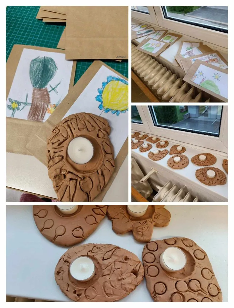 Pred prihajajočimi prazniki smo izdelali glinene svečnike in jih zapakirali v lično izdelane in okrašene vrečke.