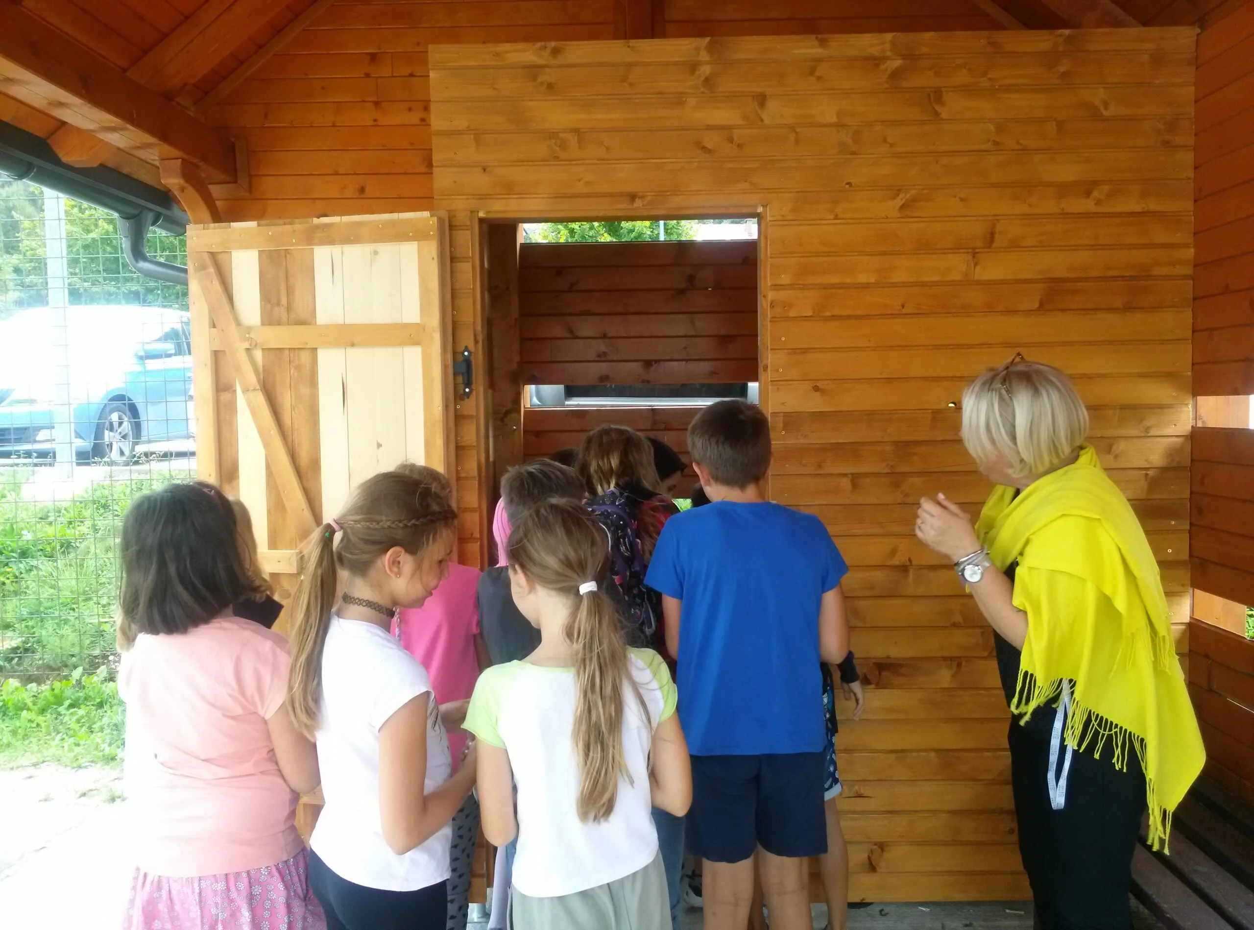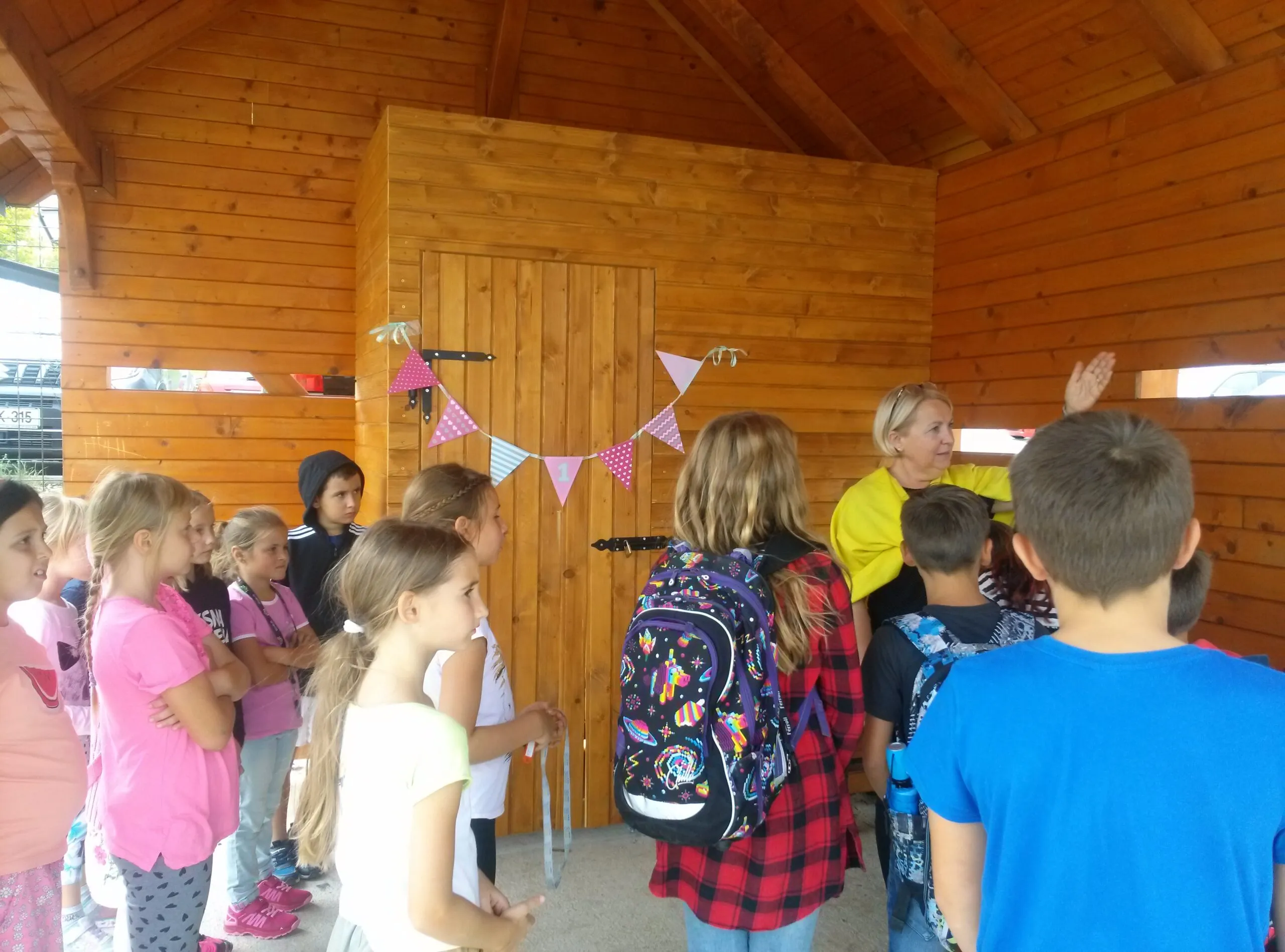 Danes, 1. 9. 2022, na prvi šolski dan, smo skupaj z učenci podaljšanega bivanja odprli vrata lesene hišice na šolskem igrišču in odkrili, kaj se skriva za njimi.
