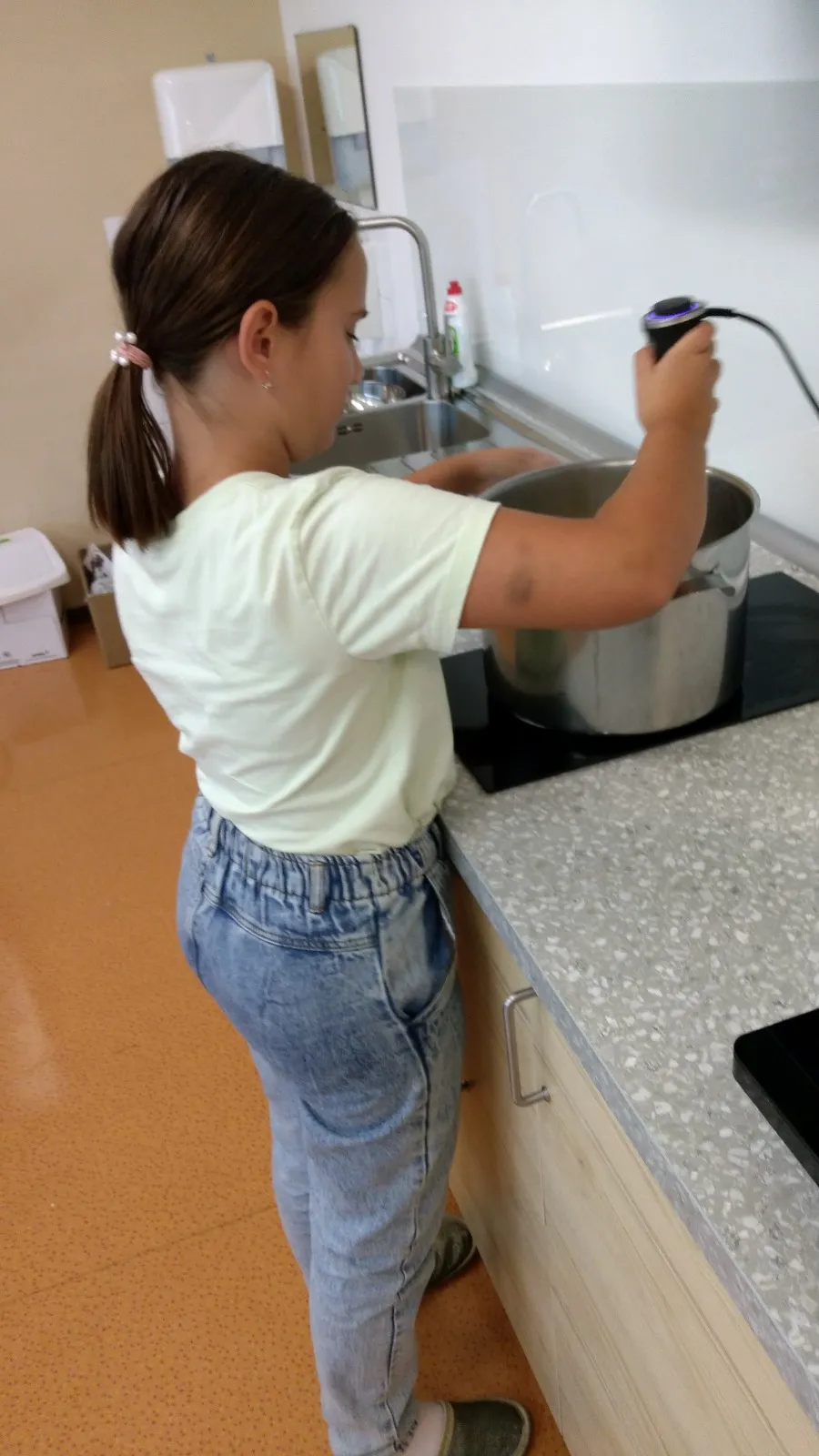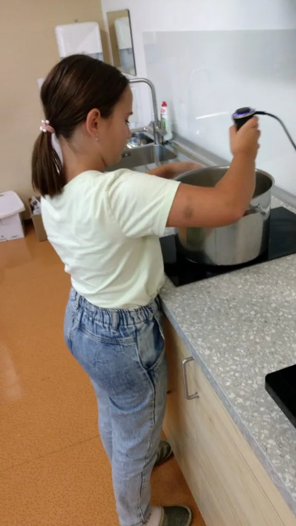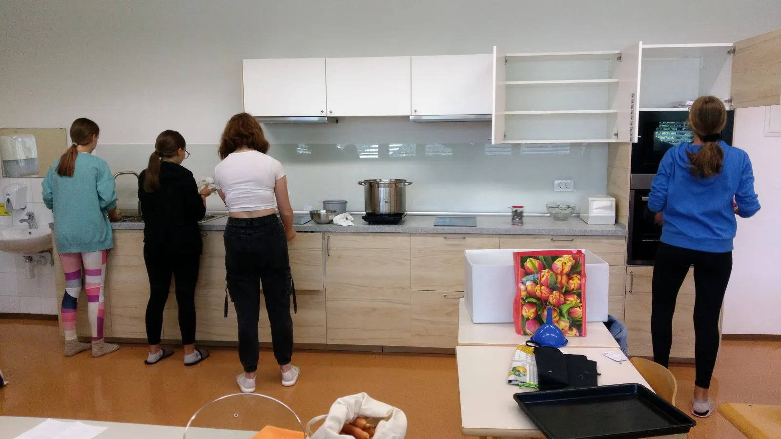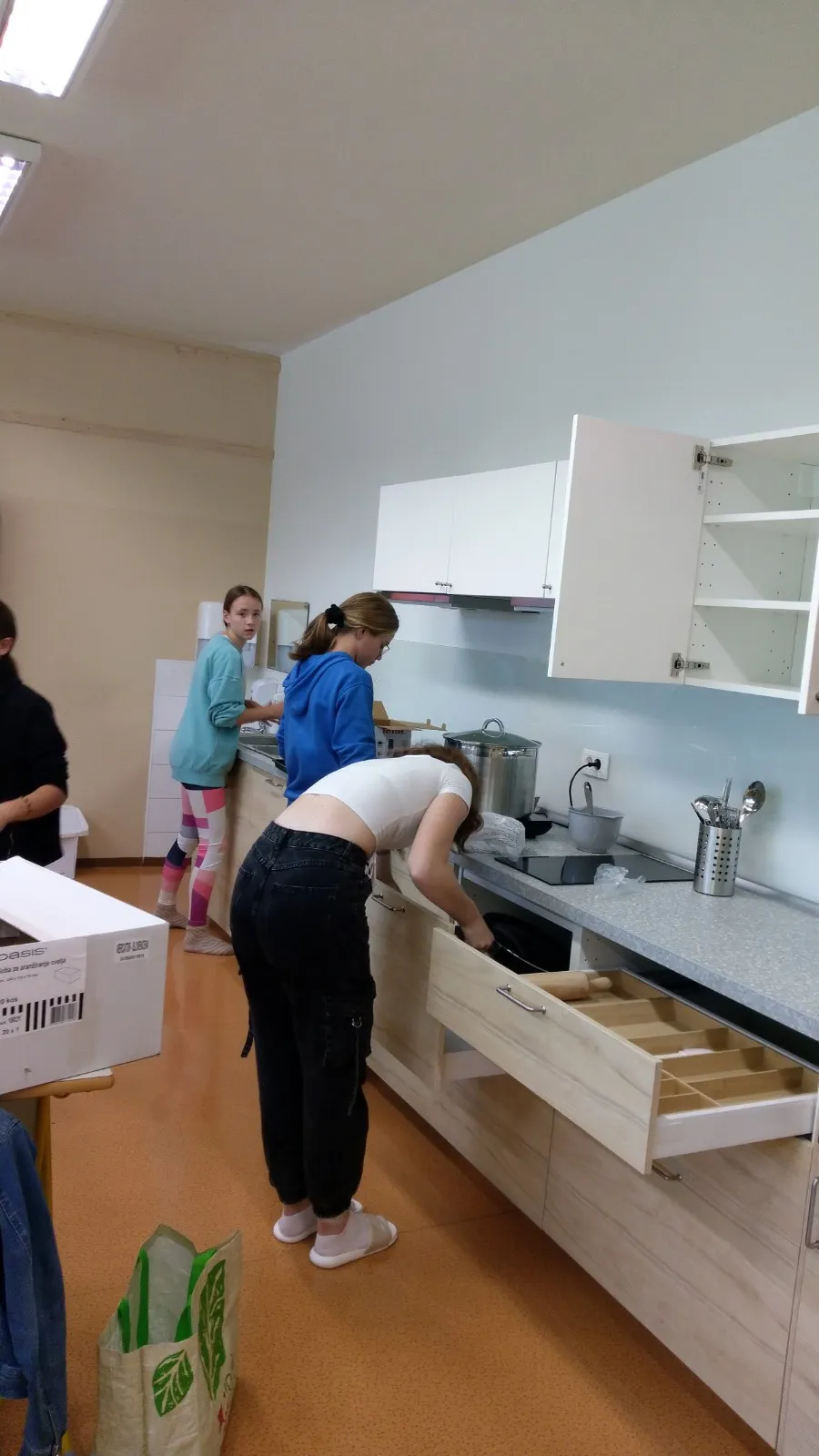 Med tem postopkom smo veselo pomivali ter pospravljali novo posodo, očistili predale in omarice nove kuhinje. Privoščili smo si tudi veliko petja, plesa in zabave.
