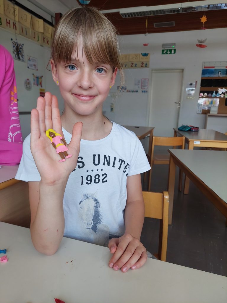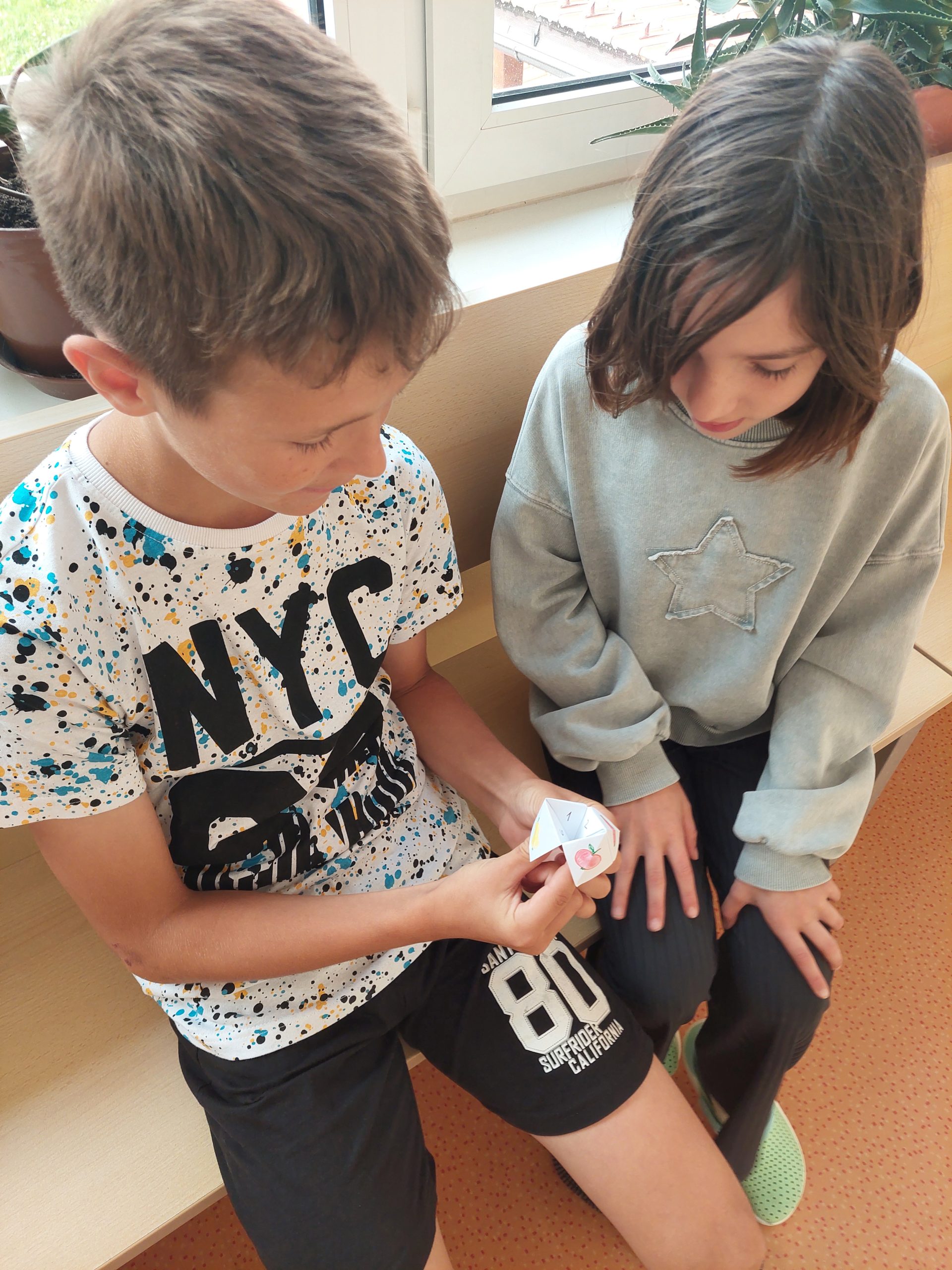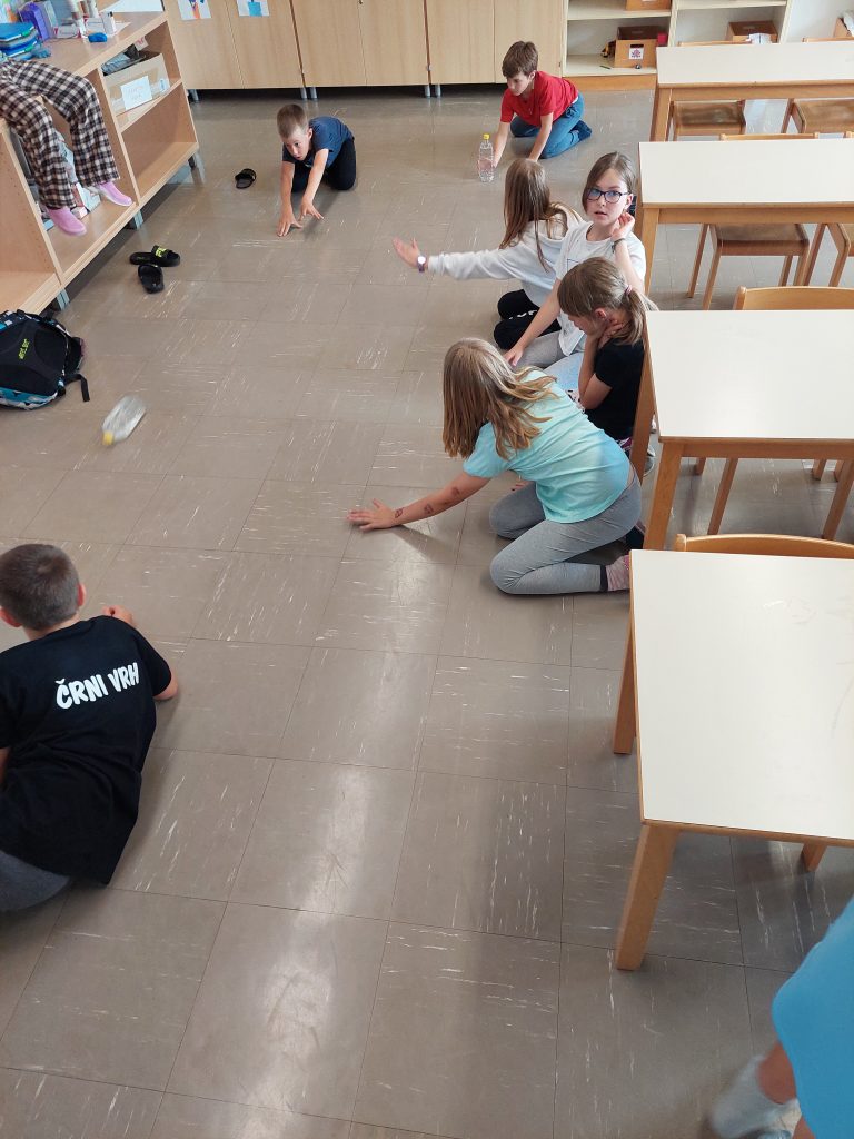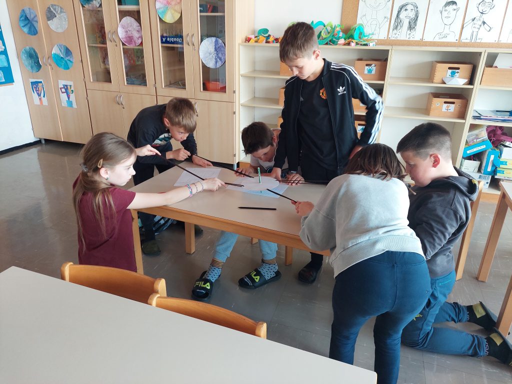 Včasih potrebujemo čas za pogovor in nekaj trenutkov brezdelja, da si oddahnemo od napornega dopoldneva pri pouku. Včasih imamo dovolj energije in takoj pohitimo s pisanjem naloge, da nam ostane popolne čas za druge dejavnosti. Občasno pa si ure v podaljšanem bivanju krajšamo z branjem; kdaj beremo sami, kdaj pa nam bere učiteljica in se mi samo prepustimo zgodbi. Pogosto rišemo in si čas krajšamo z ustvarjanjem. Preizkušali smo se tudi v skupinskem risanju na velik karton, ko smo skupaj ustvarjali risbo. Izdelali smo si igro, ki so jo že pred leti igrali učenci, naši starši. Nekajkrat smo se preizkusili v skupinski nalogi vodenja pisala skozi labirint. To je bil kar izziv, ker smo se morali uskladiti in delovati kot eden. Ko nam je uspelo, smo si izdelali zahtevnejši labirint in na njem preizkušali svojo spretnost. Pri delu smo se izmenjevali in se preizkušali v različnih sestavah skupin. Preizkušali smo svoje spretnosti in plastenko poskušali poriniti v določen kvadrat. …