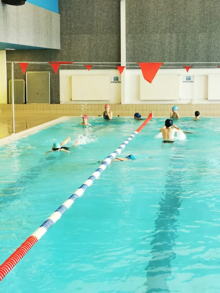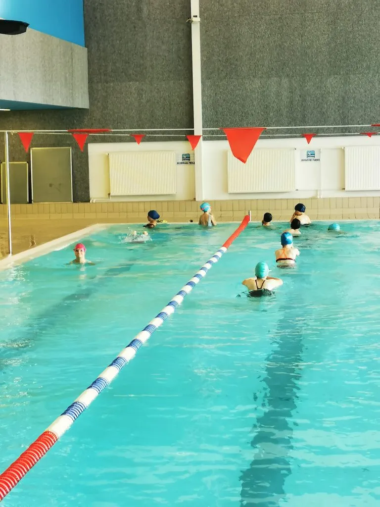 V ponedeljek zjutraj smo se ob 7.30 odpravili proti avtobusu, ki nas je odpeljal do pokritega bazena s toplo vodo. Prvi dan smo izvedli preizkus znanja in učence razdelili v dve skupini glede na njihove plavalne sposobnosti. Skozi različne vodne igre so se učenci postopoma prilagajali na vodo, premagovali začetni strah in usvajali osnovne plavalne tehnike.