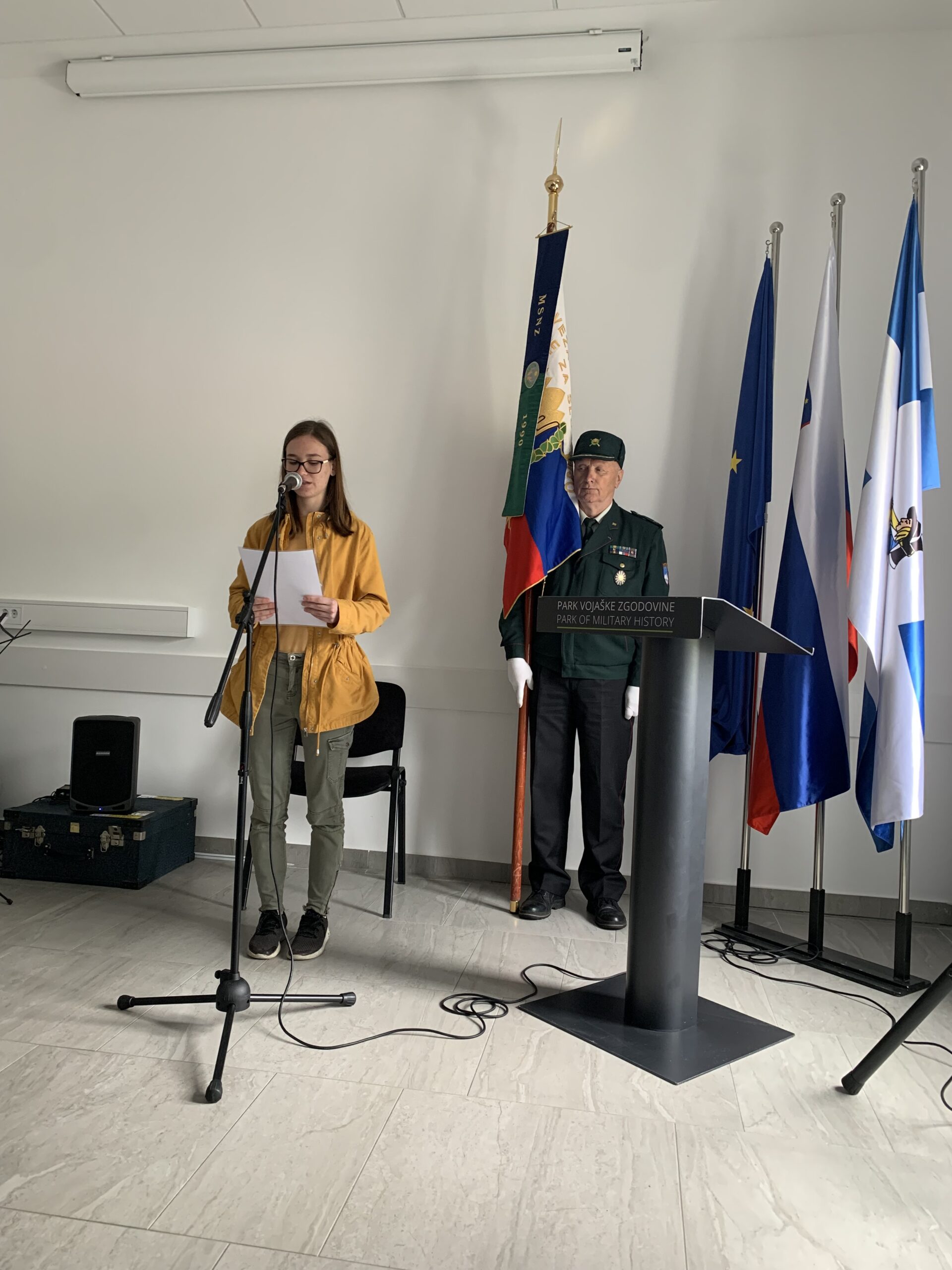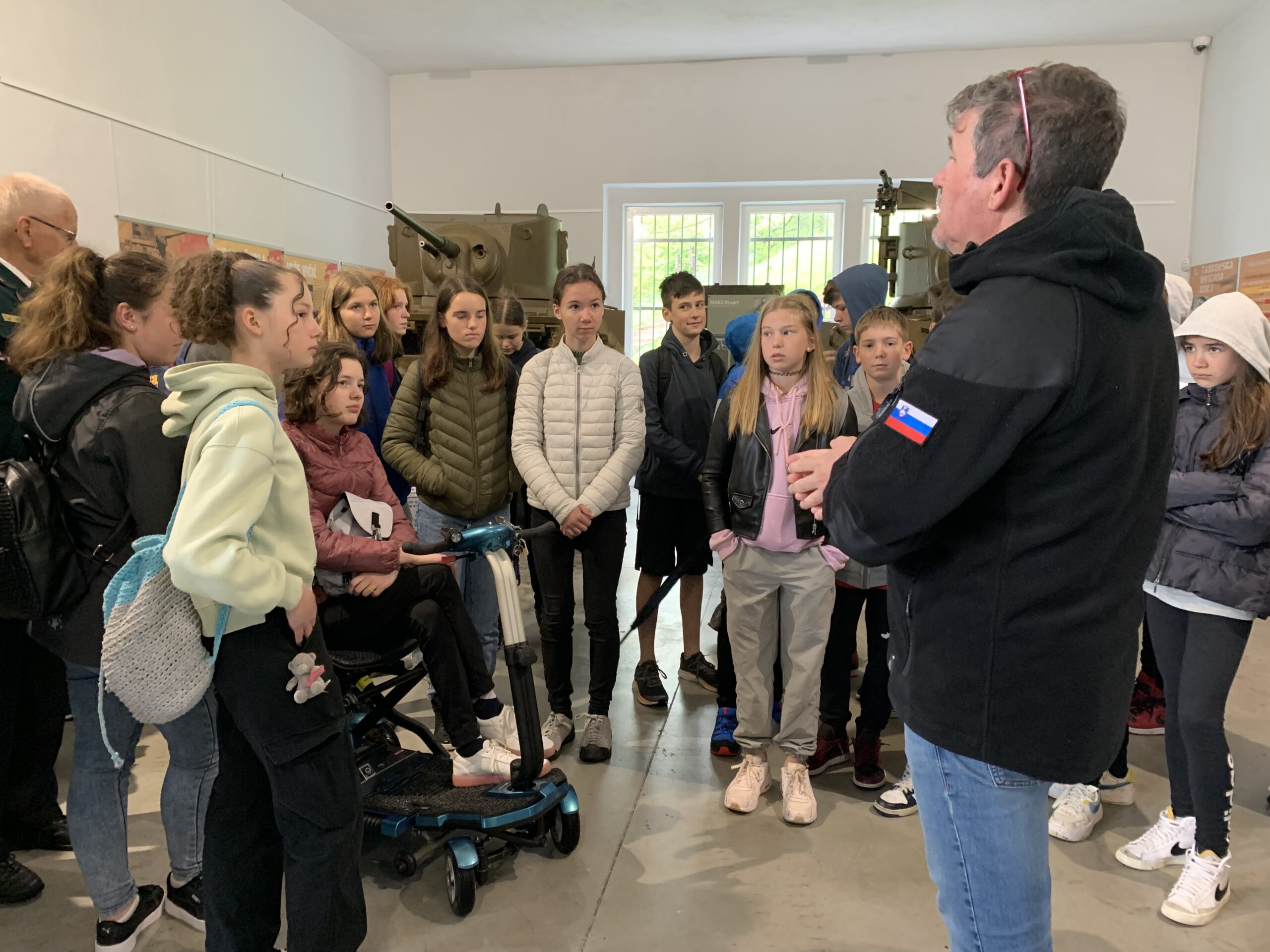 V okviru slovenščine se je več učencev odločilo za sodelovanje, trije pa smo bili nagrajeni z izletom v Park vojaške zgodovine v Pivko. Tako smo si v četrtek, 11. maja, v muzeju ogledali vojaško orožje in vozila. Najbolj zabavno je bilo, ko smo se lahko vkrcali na pravo podmornico in si ogledali njeno notranjost. Bilo je super.