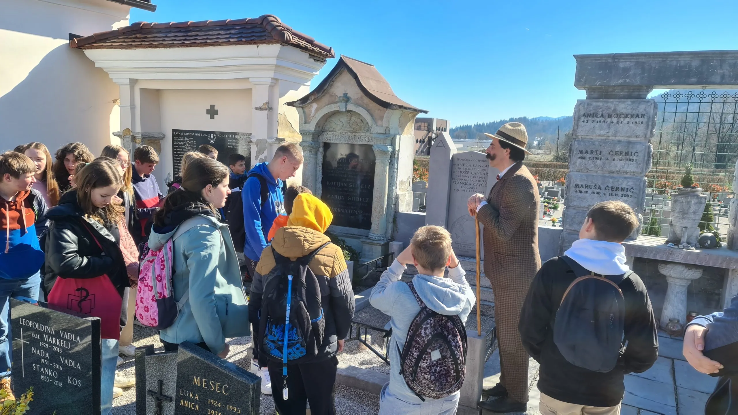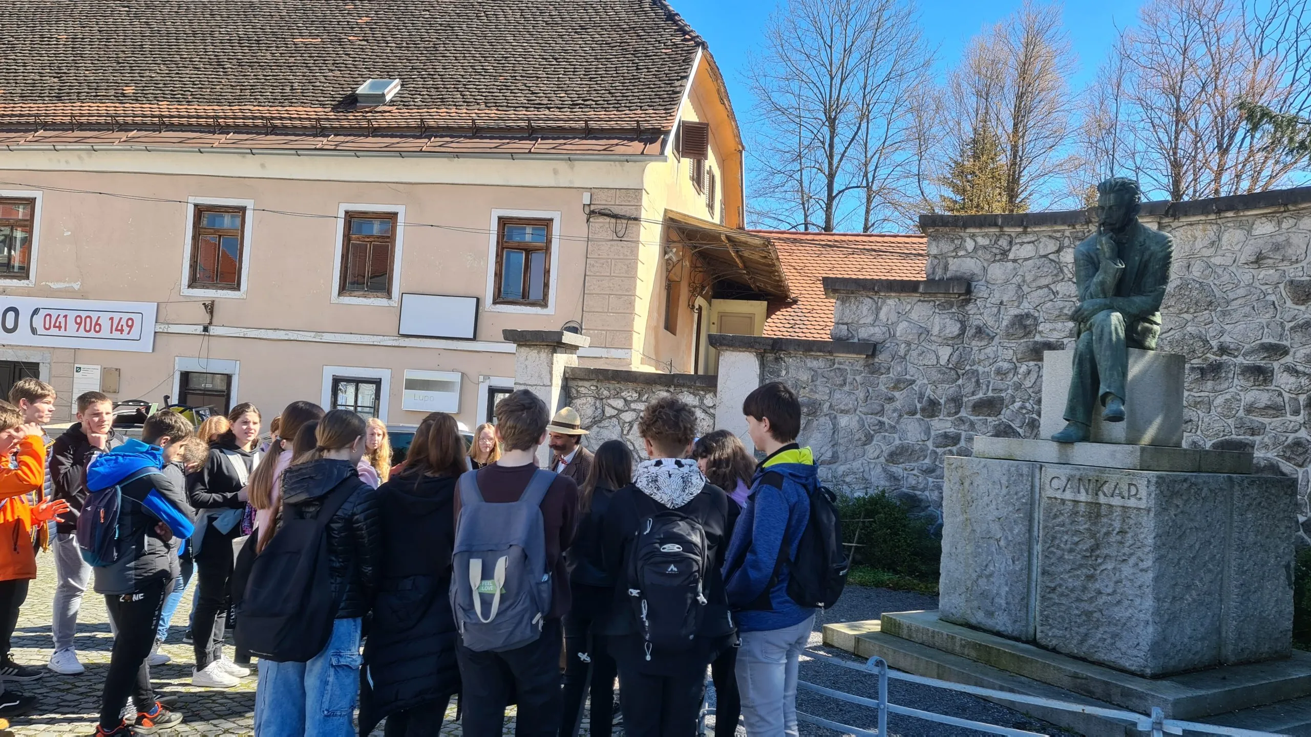 Z osmo- in devetošolci smo se odpravili po poti Cankarjeve mladosti in se s turističnim vodnikom, ki je bil, ne boste verjeli, kar sam Ivan Cankar J, sprehodili po celotni Vrhniki. Ves dan nas je prijetno grelo spomladansko sonce in nekaterim podarilo kar preveč najstniške razigranosti, saj so malo pozabili na bonton. Na kulturno obnašanje jih je spomnil kar Cankar sam in za »kazen« niso bili deležni doživete interpretacije odlomka iz Kurenta … „Veseli ljudje bodo živeli tod; pesem bo njih jezik in njih pesem bo vriskanje!“ …