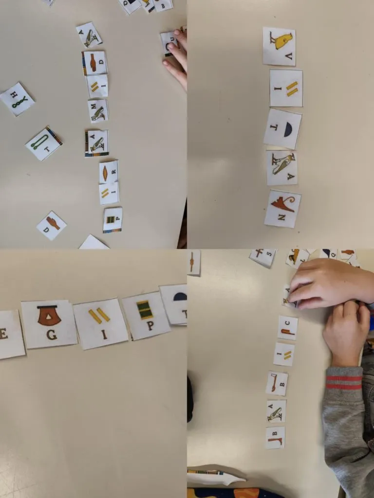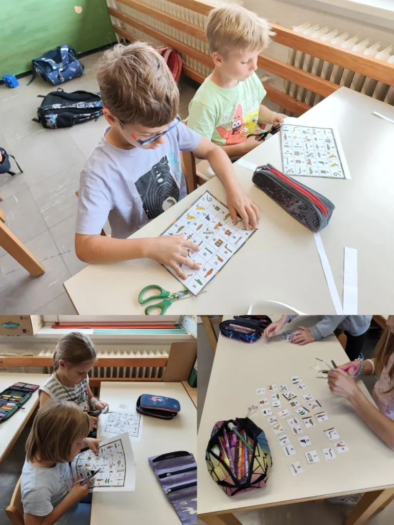 Dan smo začeli s prazgodovino. Učenci so se prelevili v prave jamske umetnike in ustvarjali svoje prve »jamske poslikave«. Sledilo je potovanje v Egipt starega veka, kjer so spoznali hieroglife in si z njimi celo dopisovali kot pravi pisarji.