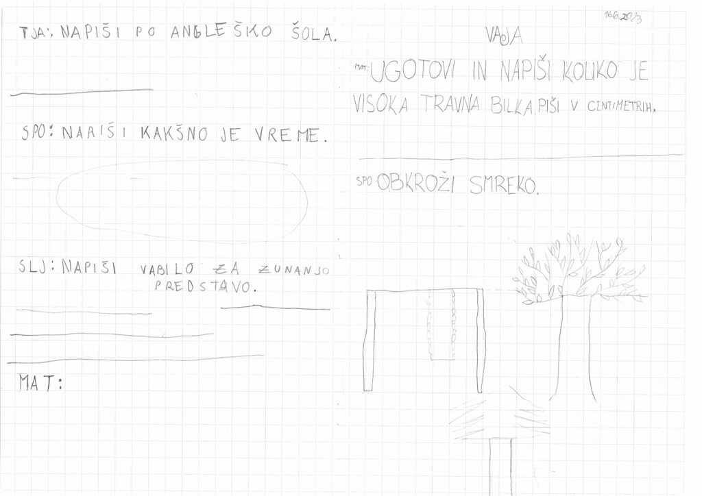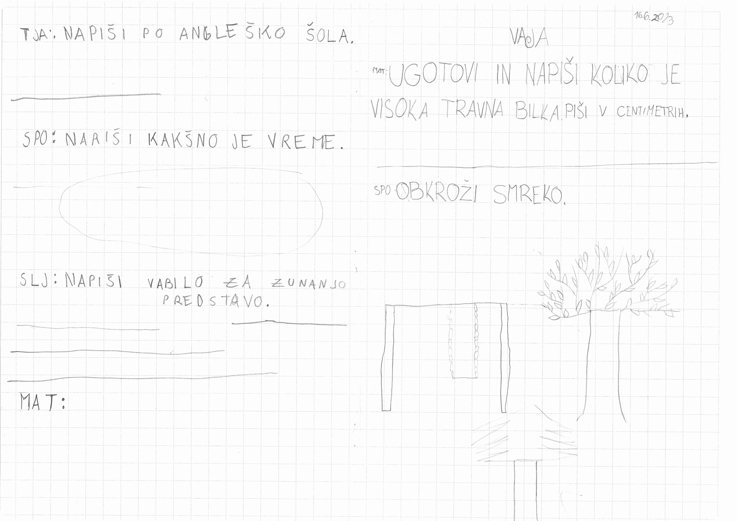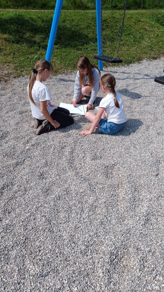 Vaje sem jim nato kopirala tako, da je bila vsaka skupina deležna vseh. Na zunanjem, travnatem igrišču so s sodelovanjem v skupinah, vaje vsi uspešno rešili, ter ob tem ponovili naučeno in spoznali kaj novega.