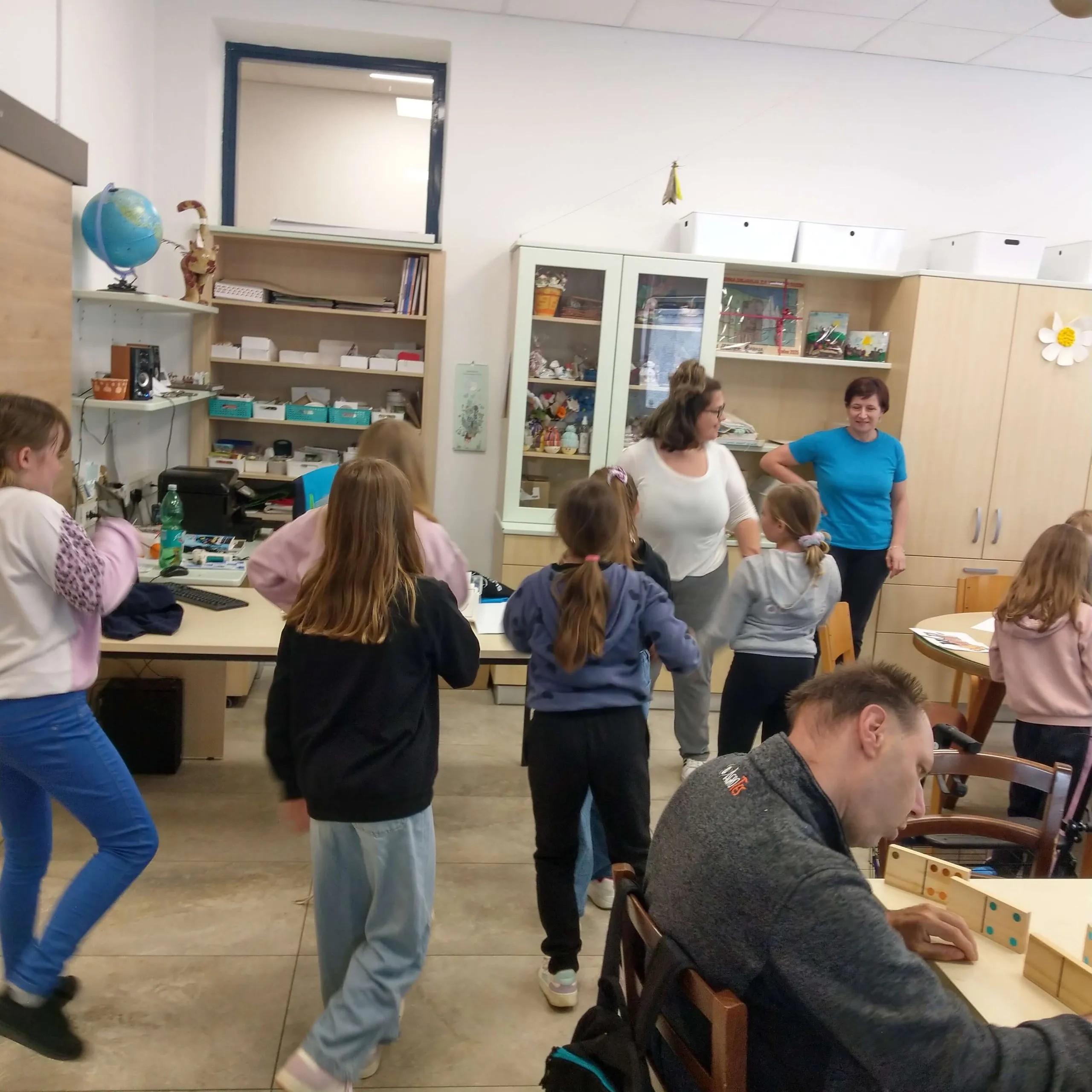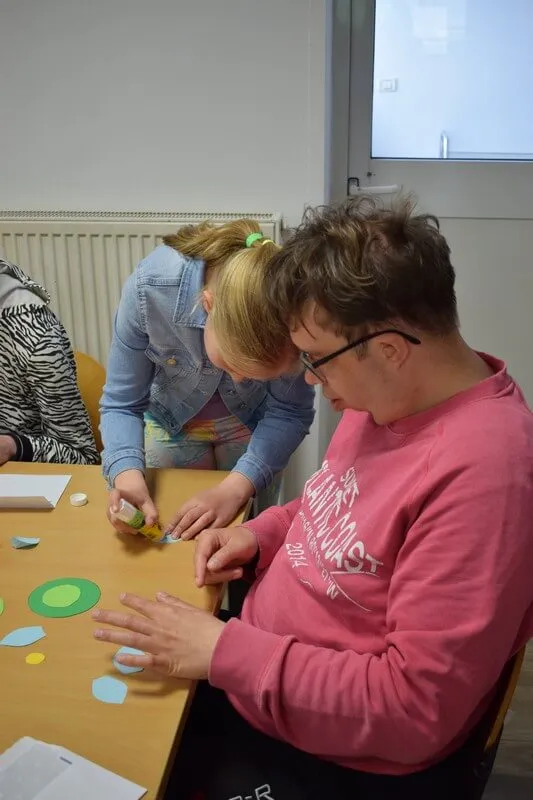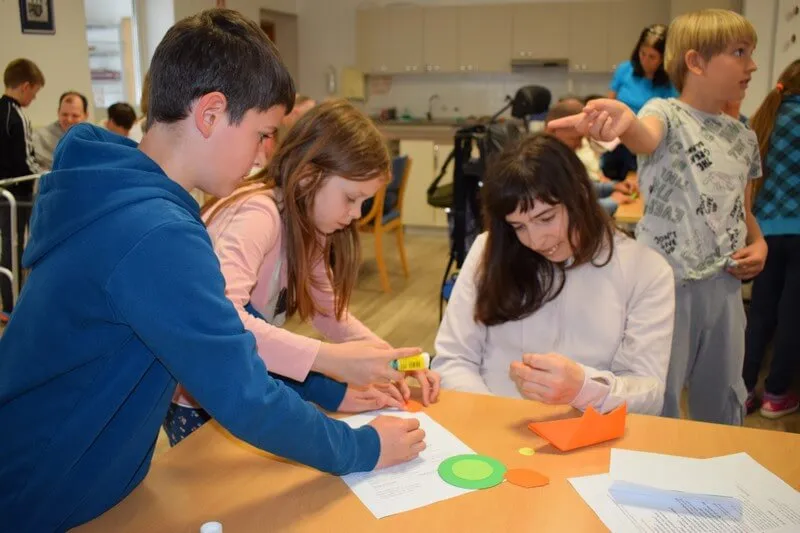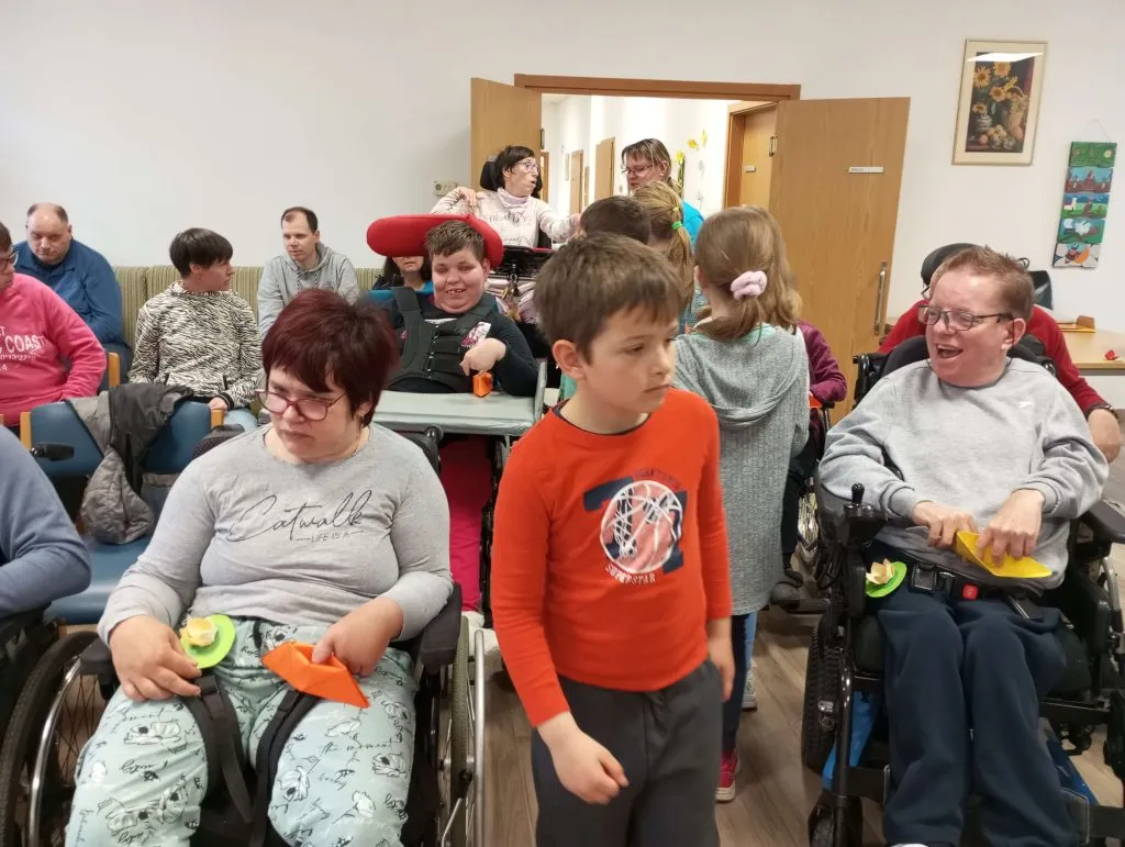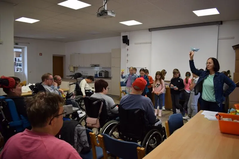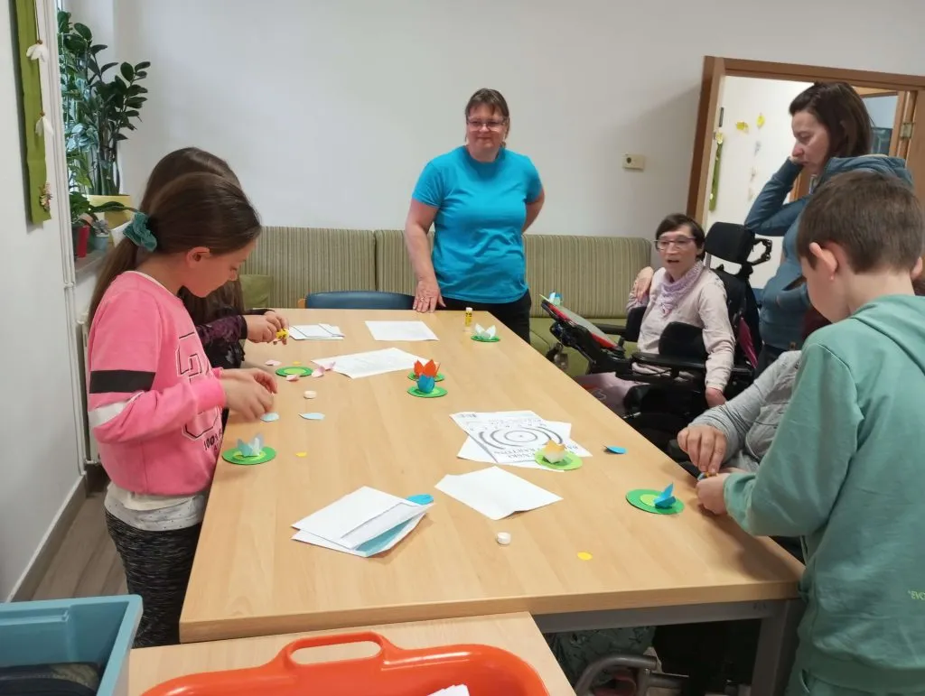 Gostitelji so učencem prijazno odprli vrata v svoj svet. Predstavili so jim različne delavnice, v katerih ustvarjajo in preživljajo svoj vsakdan ter jih povabili, da se jim pri delu tudi pridružijo. Skupaj so risali, peli, plesali, šivali in se drug od drugega marsikaj naučili. Med obiskom je vladalo veselo in ustvarjalno vzdušje, prežeto z medsebojnim spoštovanjem in srčnostjo.