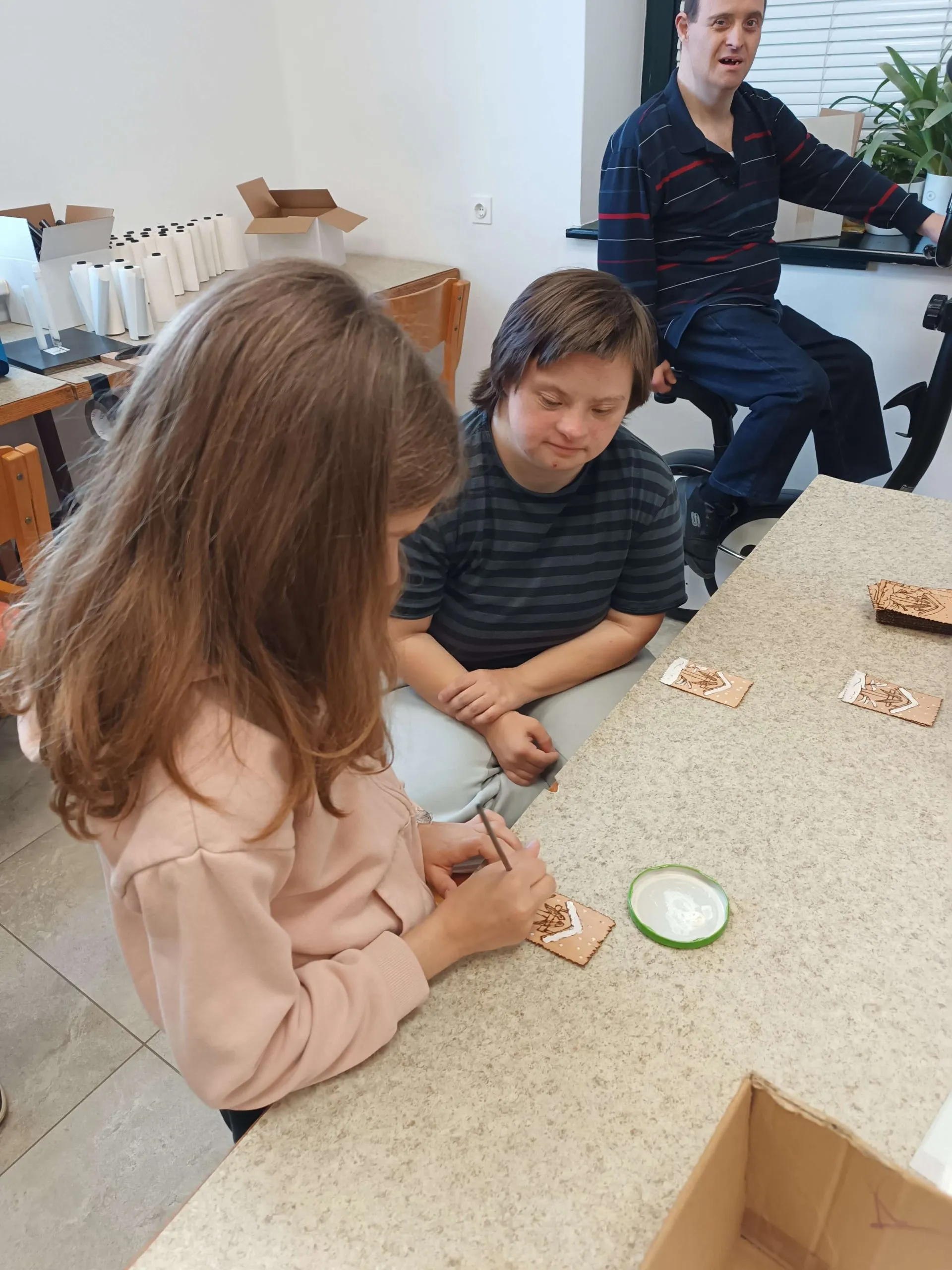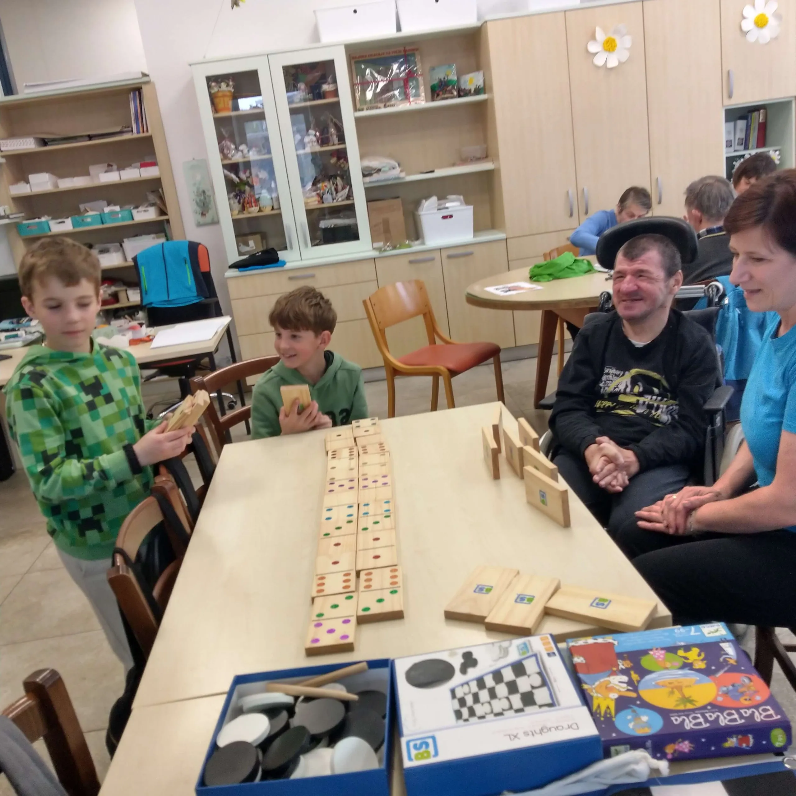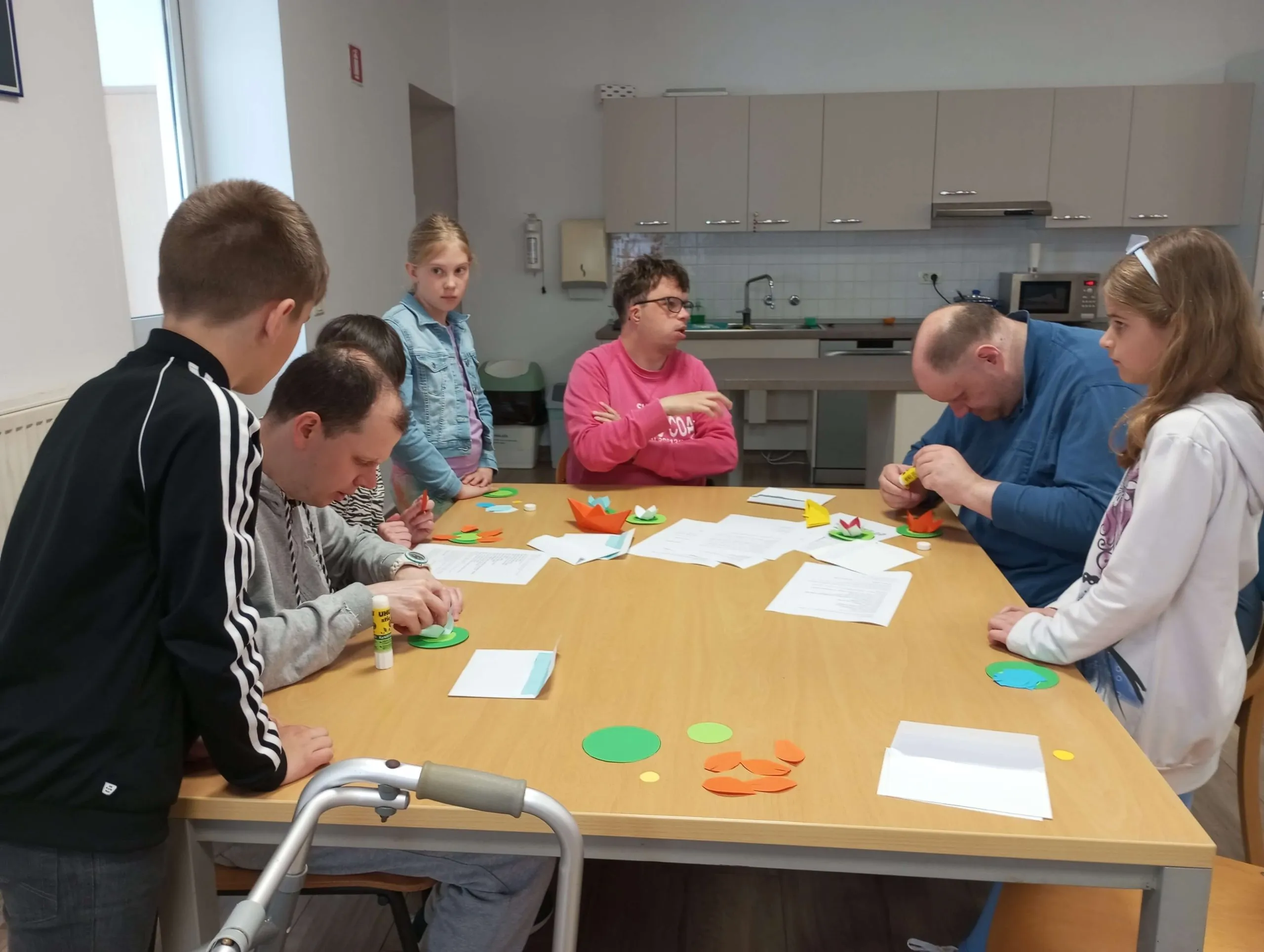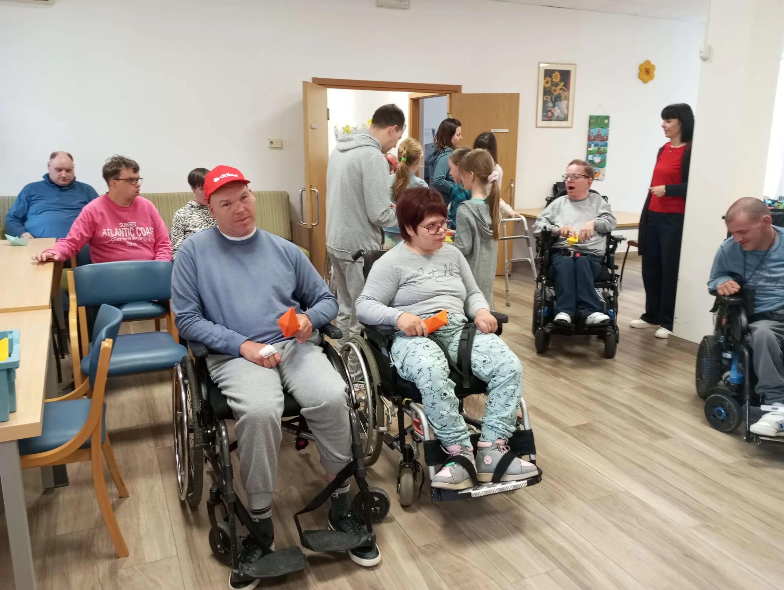 Gostitelji so učencem prijazno odprli vrata v svoj svet. Predstavili so jim različne delavnice, v katerih ustvarjajo in preživljajo svoj vsakdan ter jih povabili, da se jim pri delu tudi pridružijo. Skupaj so risali, peli, plesali, šivali in se drug od drugega marsikaj naučili. Med obiskom je vladalo veselo in ustvarjalno vzdušje, prežeto z medsebojnim spoštovanjem in srčnostjo.