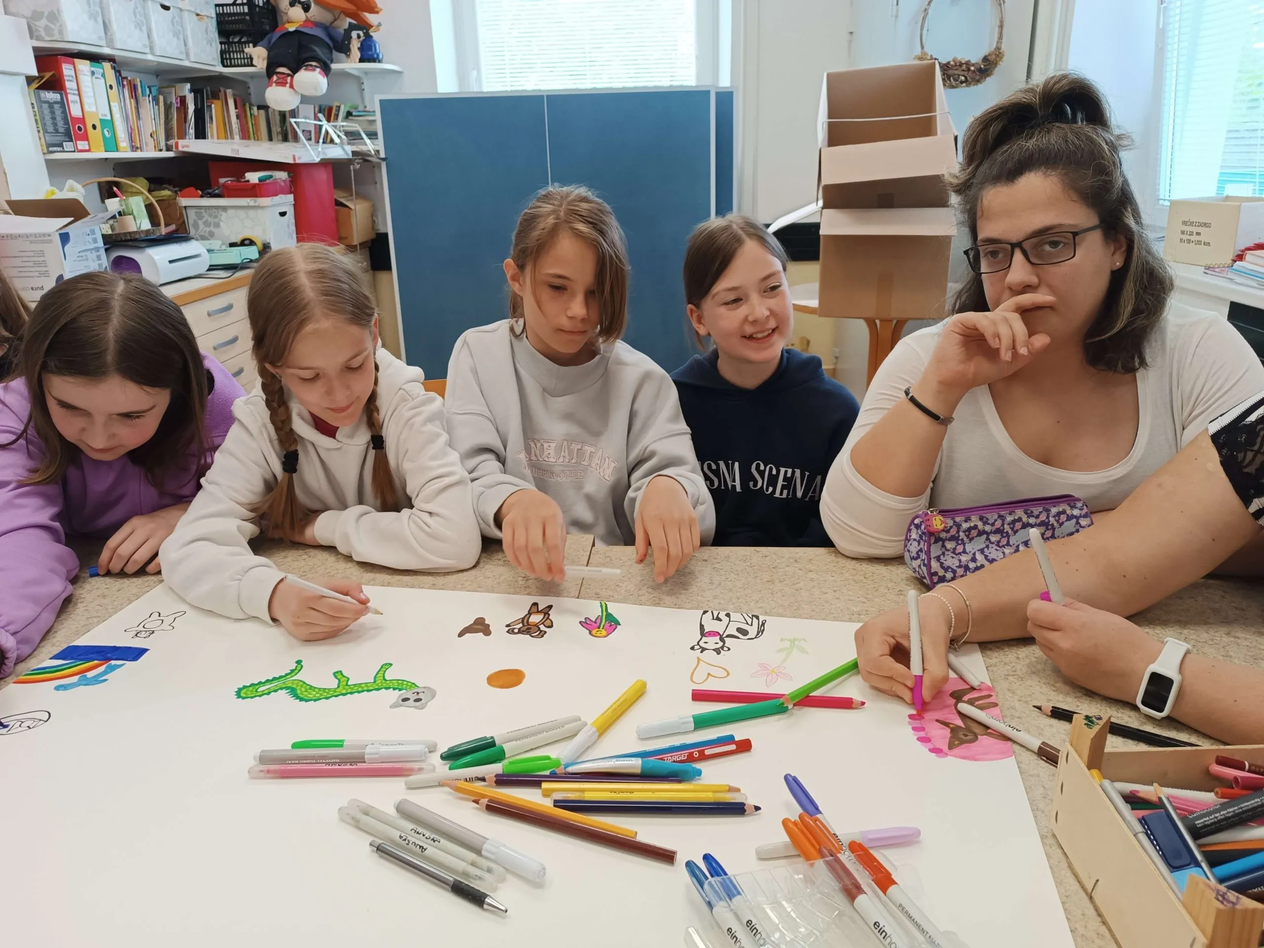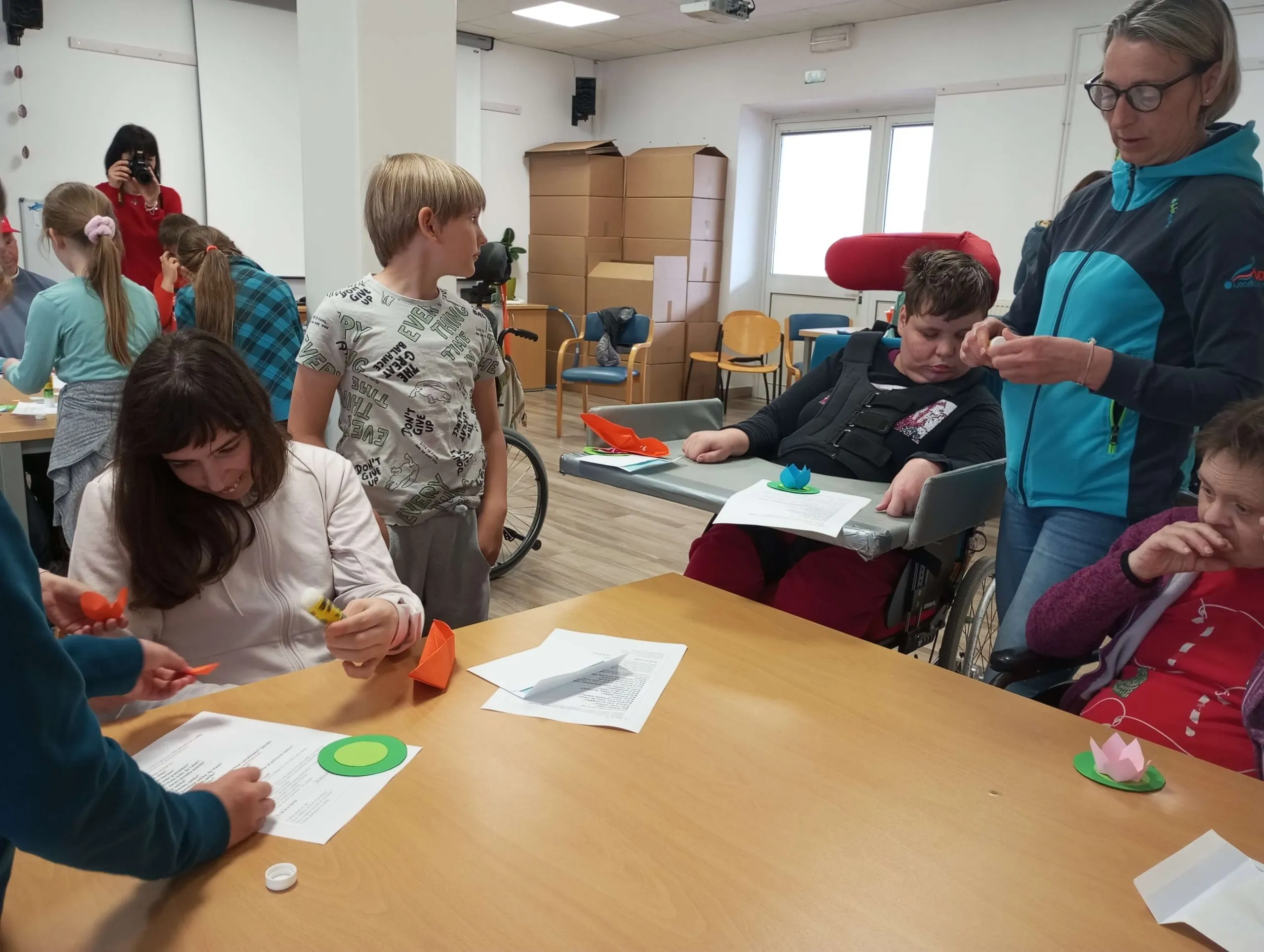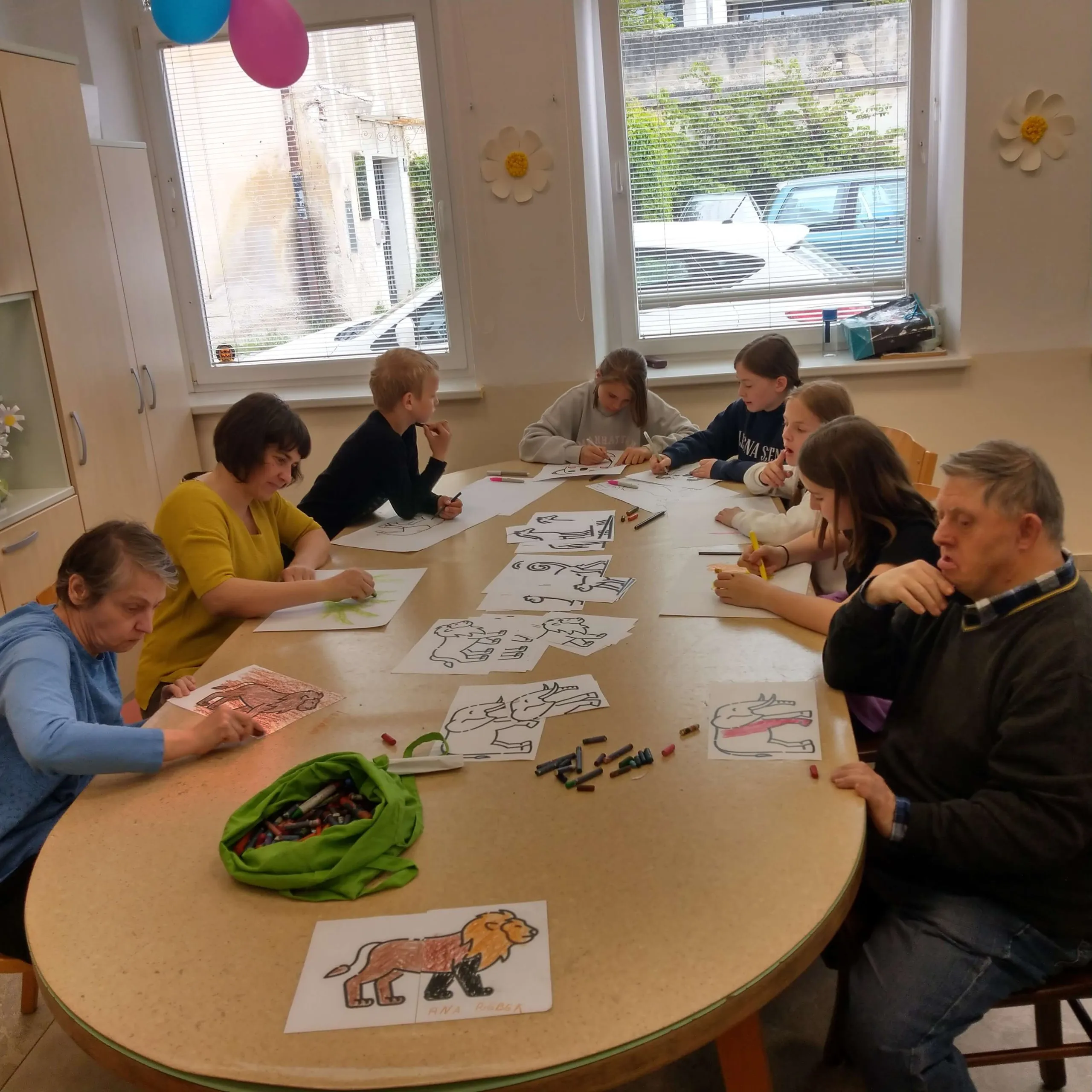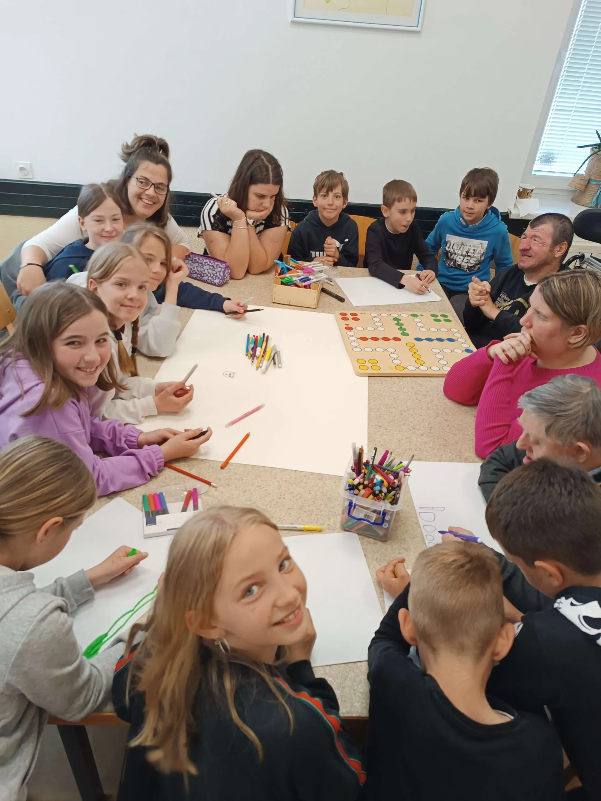 Gostitelji so učencem prijazno odprli vrata v svoj svet. Predstavili so jim različne delavnice, v katerih ustvarjajo in preživljajo svoj vsakdan ter jih povabili, da se jim pri delu tudi pridružijo. Skupaj so risali, peli, plesali, šivali in se drug od drugega marsikaj naučili. Med obiskom je vladalo veselo in ustvarjalno vzdušje, prežeto z medsebojnim spoštovanjem in srčnostjo.