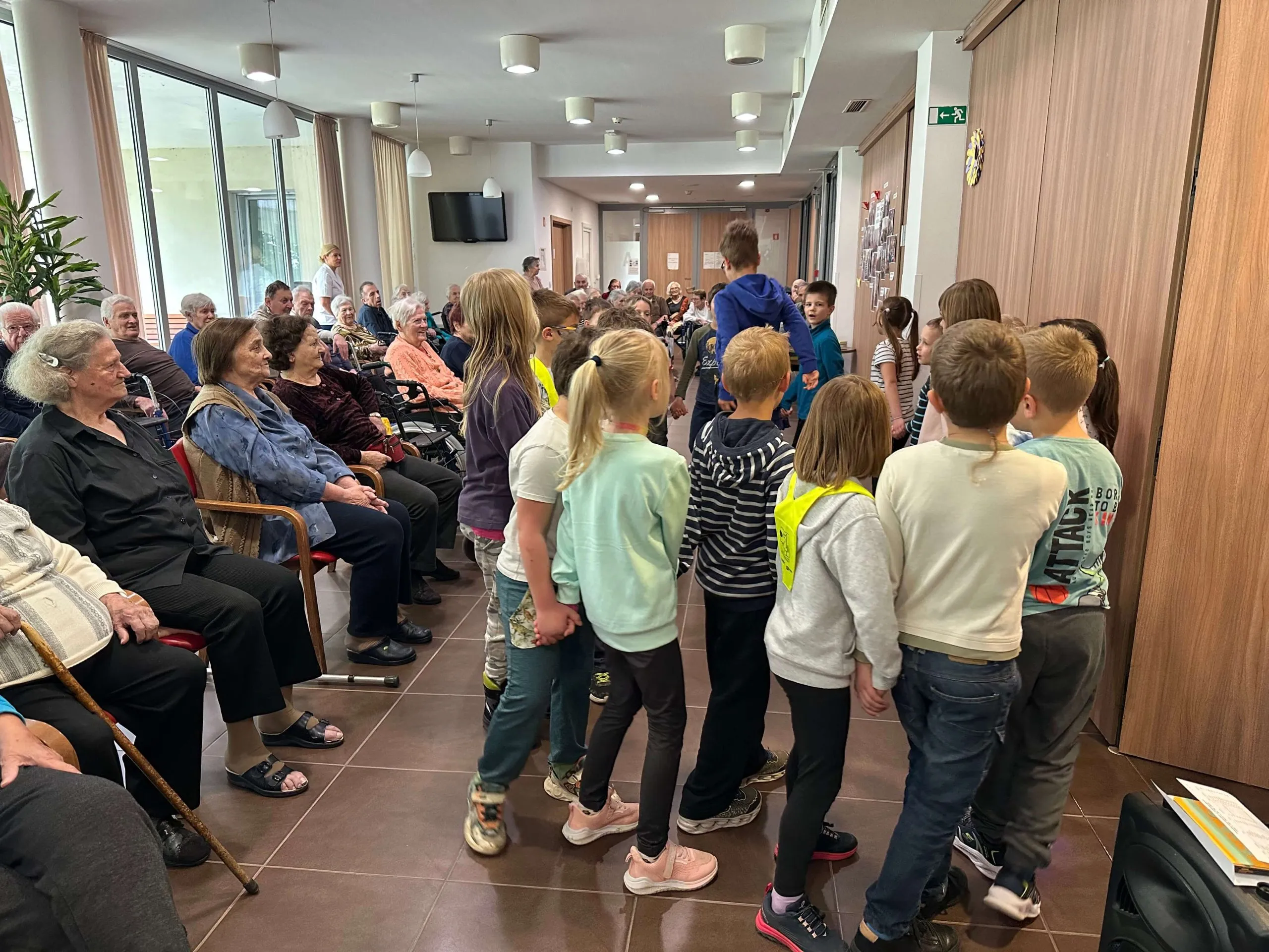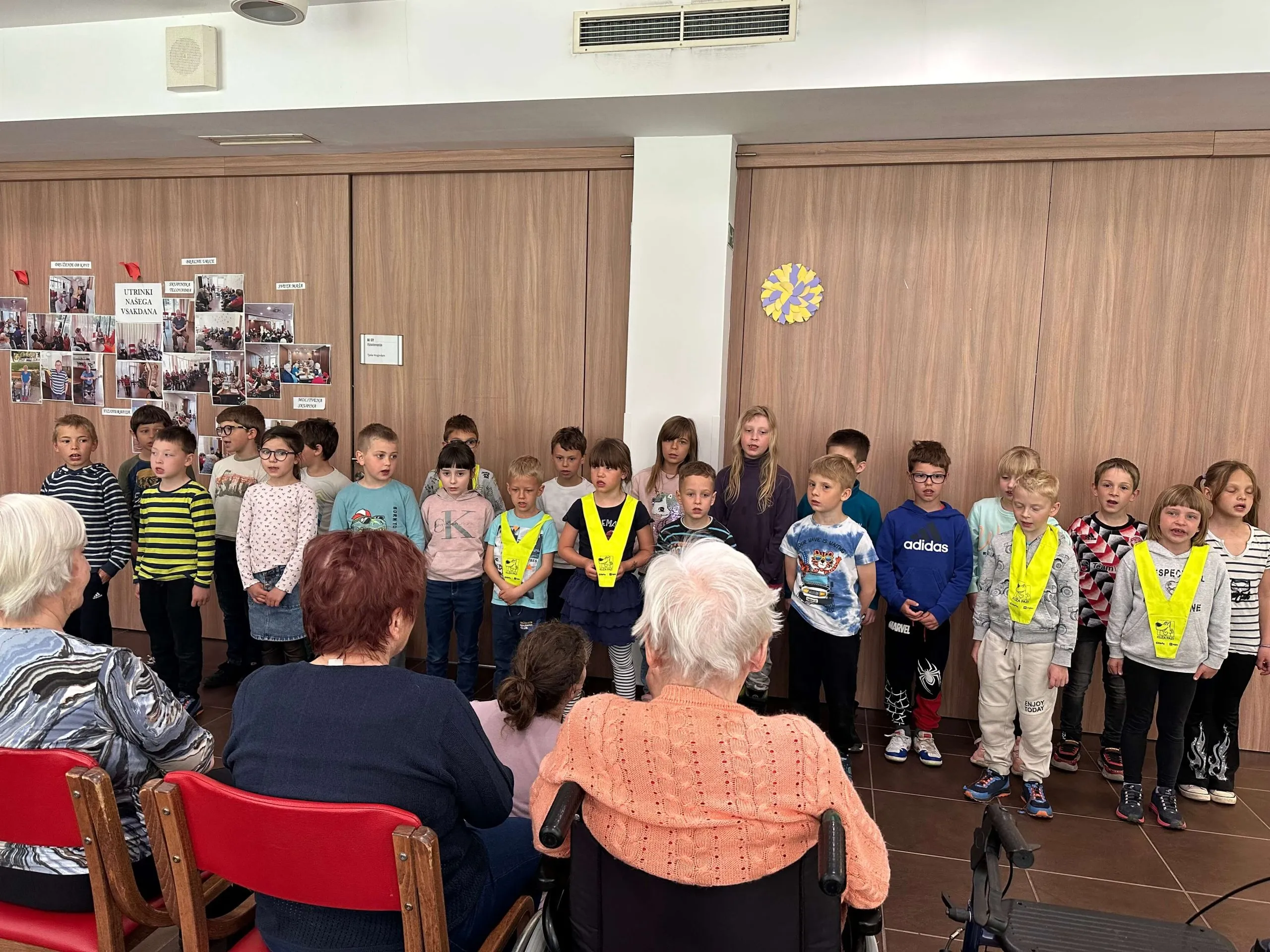 Učenci 1. in 2. razreda so obiskali Center starejših Pristan Vipava. Stanovalcem doma so pripravili prijeten nastop, ki je vključeval pevske in plesne točke ter recitacije. Na koncu so jim podarili še pomladne voščilnice, ki so jih predhodno izdelali z mislijo na njih. Obisk je bil dobro in toplo sprejet. Varovanci centra so z nastopajočimi peli ljudske pesmi, navdušeno spodbujali ples in se nasmejali ob šaljivih recitacijah. Vodja delovne terapije, gospa Mateja, je učence pohvalila in povedala da tako samozavestnih, nasmejanih in aktivnih otrok že dolgo ni bilo v njihovi hiši. Energijo otrok je povezala z aktivnostjo in vključenostjo učiteljic. Po nastopu so se učenci posladkali z jabolčnim zavitkom in prisluhnili voščilom za rojstne dni, ki so jih praznovali prebivalci doma. Ena izmed slavljenk je otroke pohvalila in povedala, da je bilo praznovanje rojstnega dne s takim nastopom zelo lepo. Osebje centra je učence in učiteljice povabilo k ponovnemu sodelovanju.
