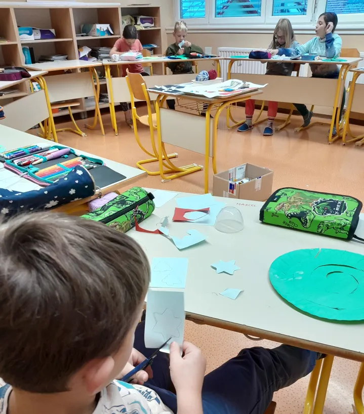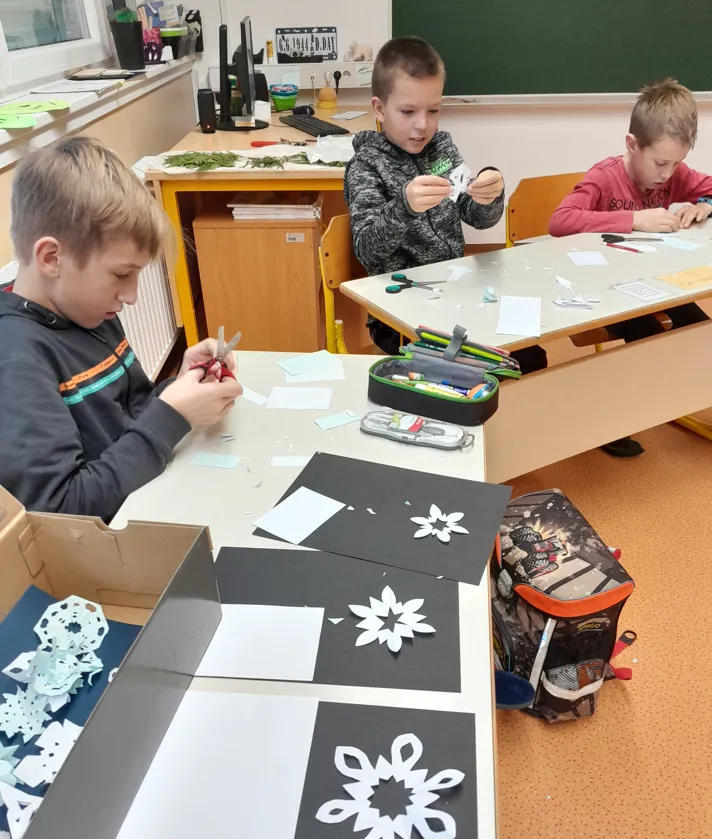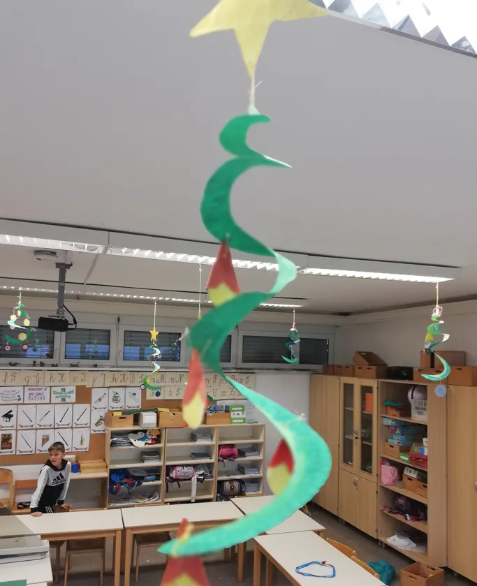 30. 11. 2023, zadnji dan novembra, smo na razredni stopnji poskrbeli za vstop v okrašen in prazničen december. Skupaj smo izdelovali smrečice in obeske, katere bodo šolo praznično obarvale, ter voščilnice.