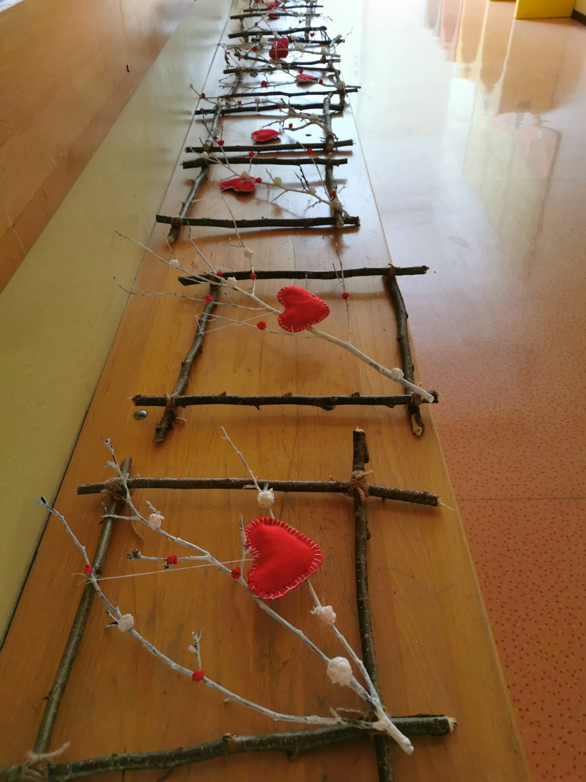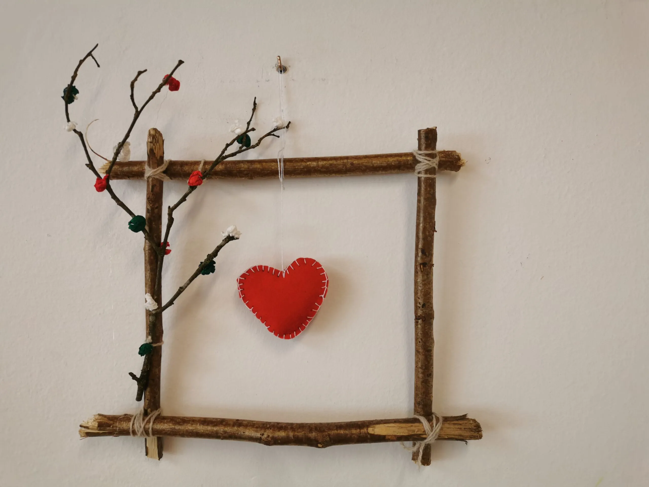 Izdelava okraskov je bila zahtevna, saj so se otroci učili šivati srček iz filca in iz lesenih palic sestaviti okvir.