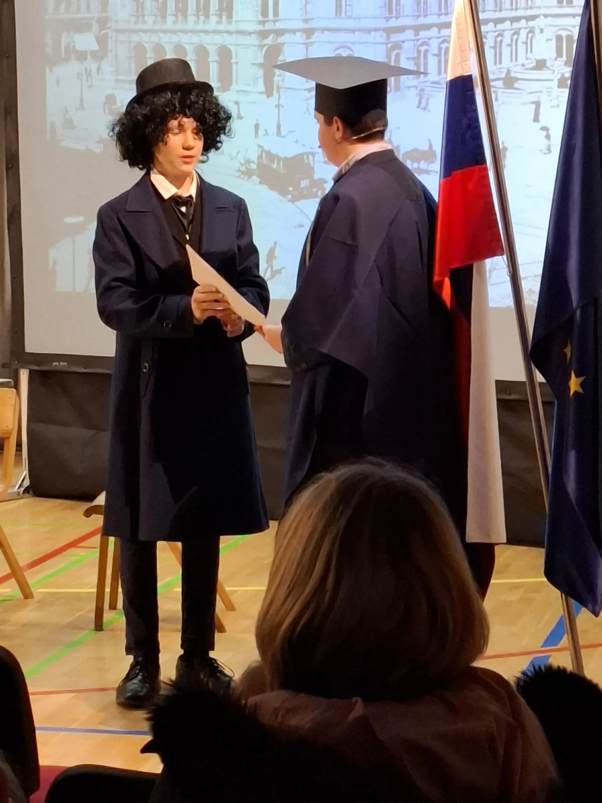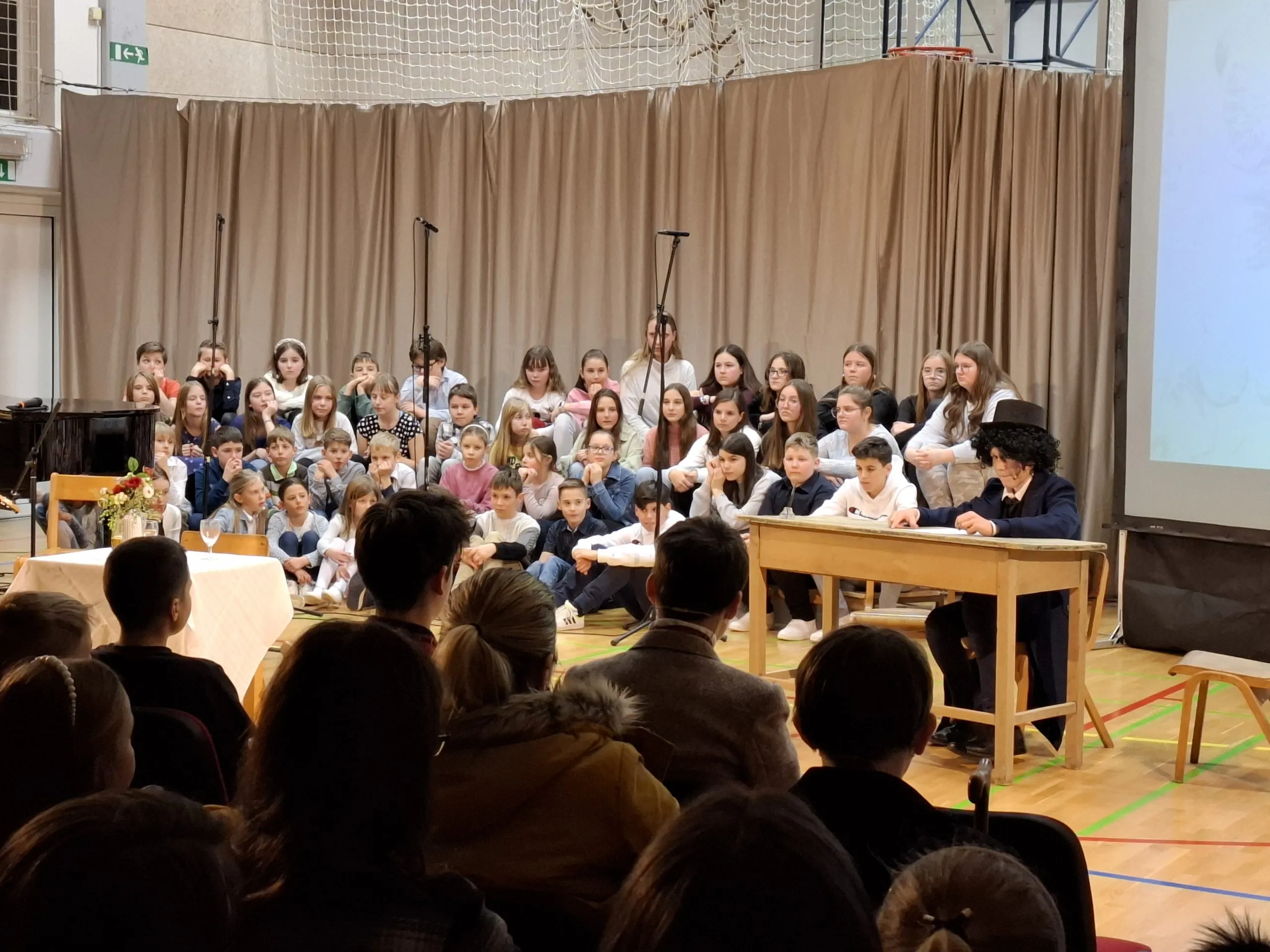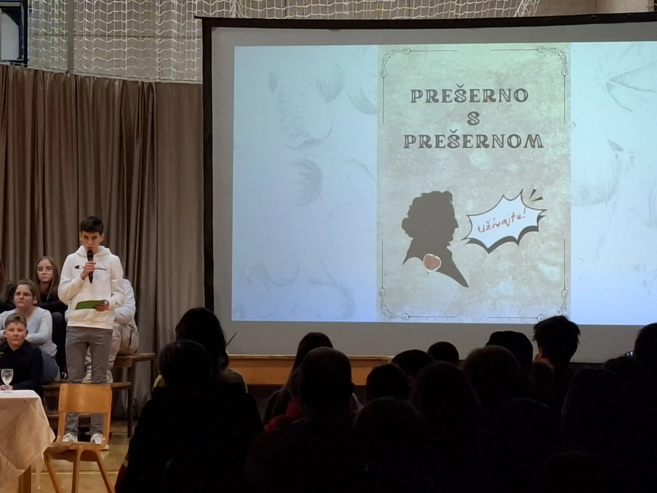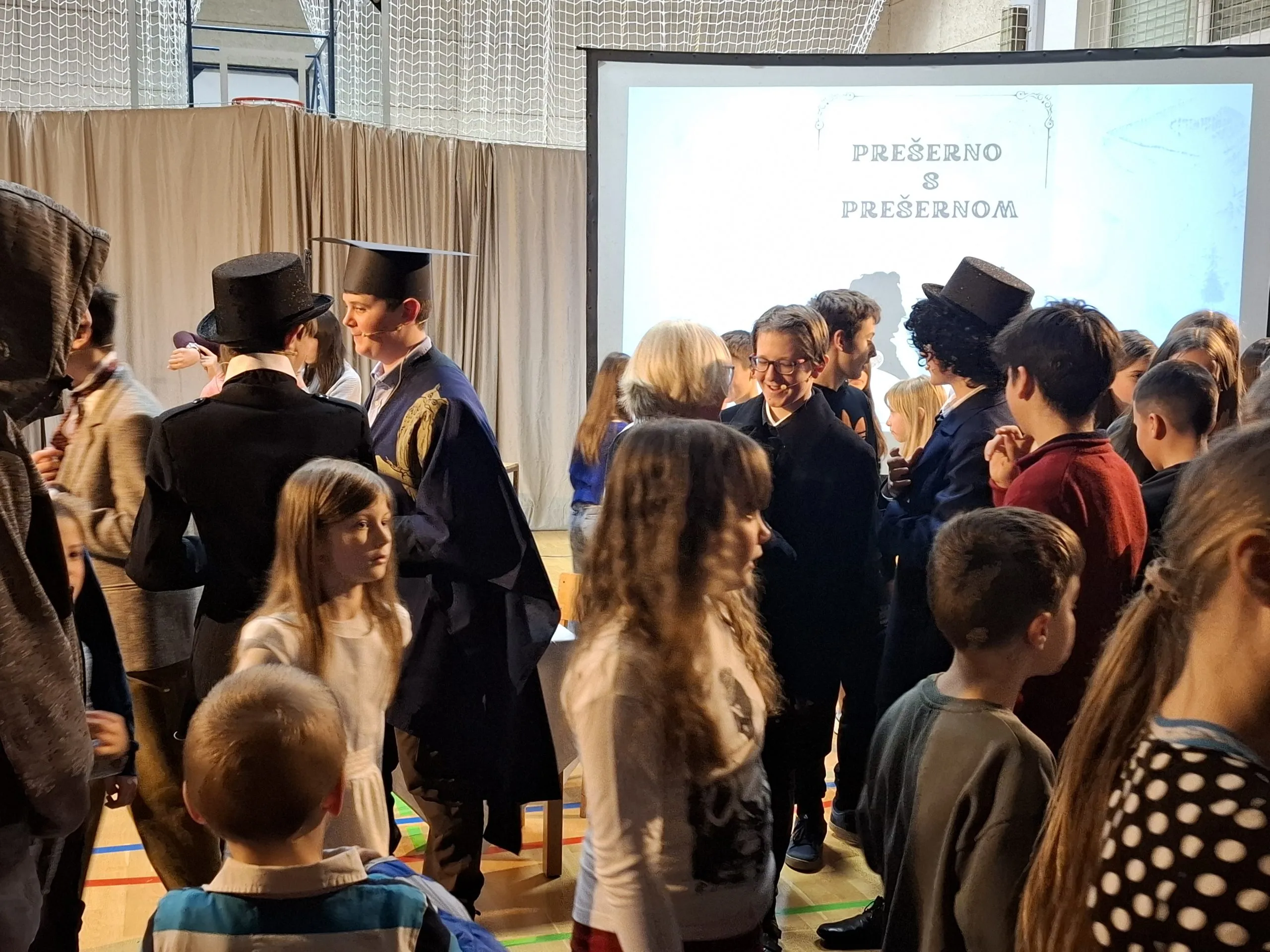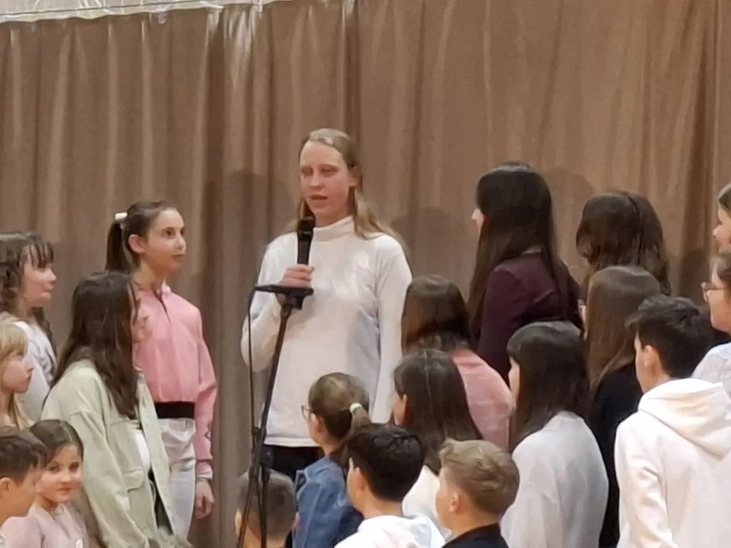 Nastop so zaključili učenci, ki so v različnih jezikih deklamirali 7. kitico Zdravljice in dokazali, da naša himna lepo zveni tudi v španščini, angleščini, nemščini, hrvaščini, ukrajinščini in italijanščini. Poklon Amadeji-Deji, Veroniki, Luku, Ivanu, Karyni in Eliji.