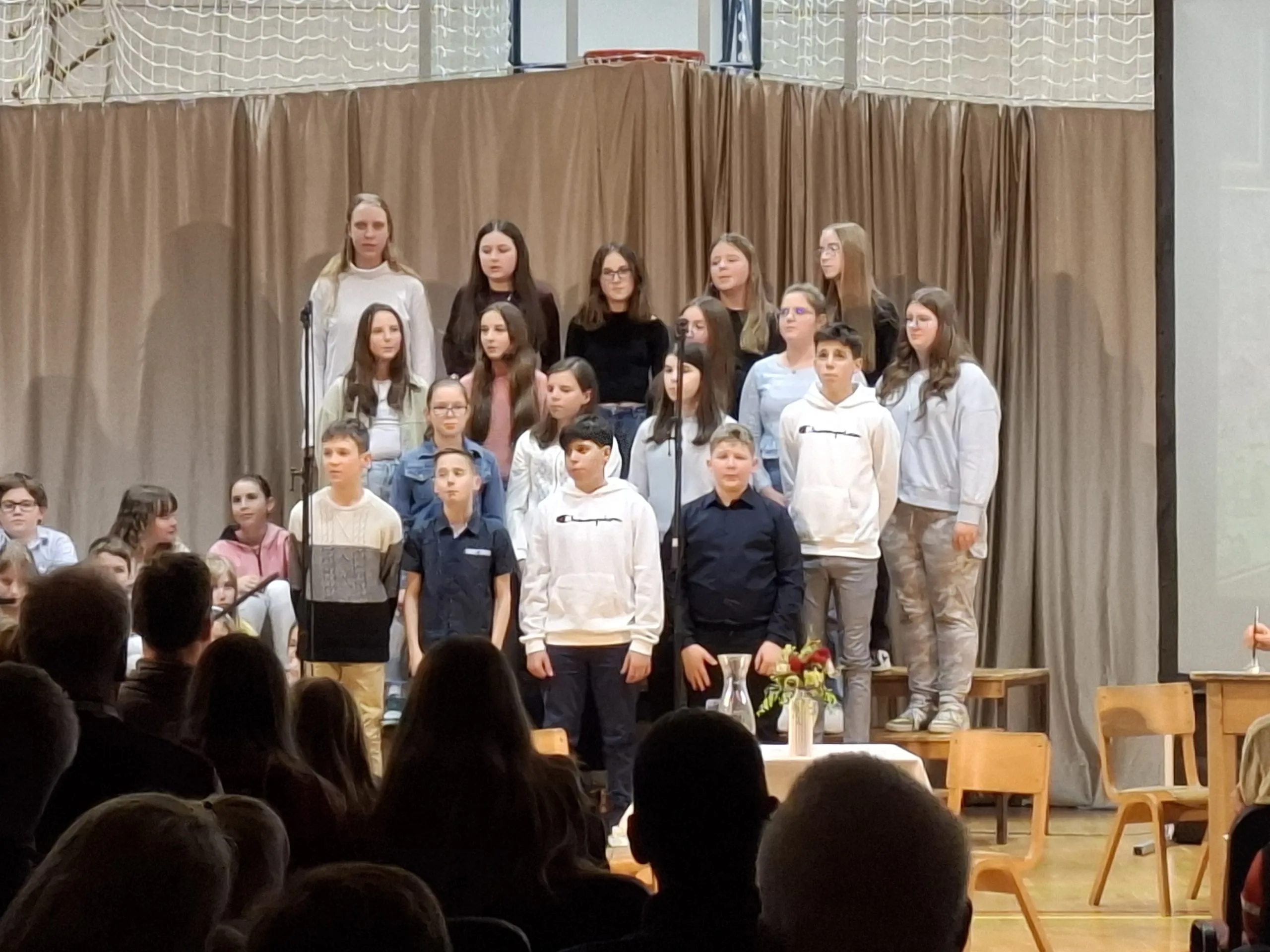 Z bučnim aplavzom, ki so ga naši učenci ob koncu poželi, in marsikatero solzo, ki se je utrnila, ste nam dali vedeti, da smo na četrtkov večer v vaša srca prinesli radost in ljubezen. Hvala vam, ker ste bili z nami in nam s svojo prisotnostjo pokazali, da podpirate naše delo.