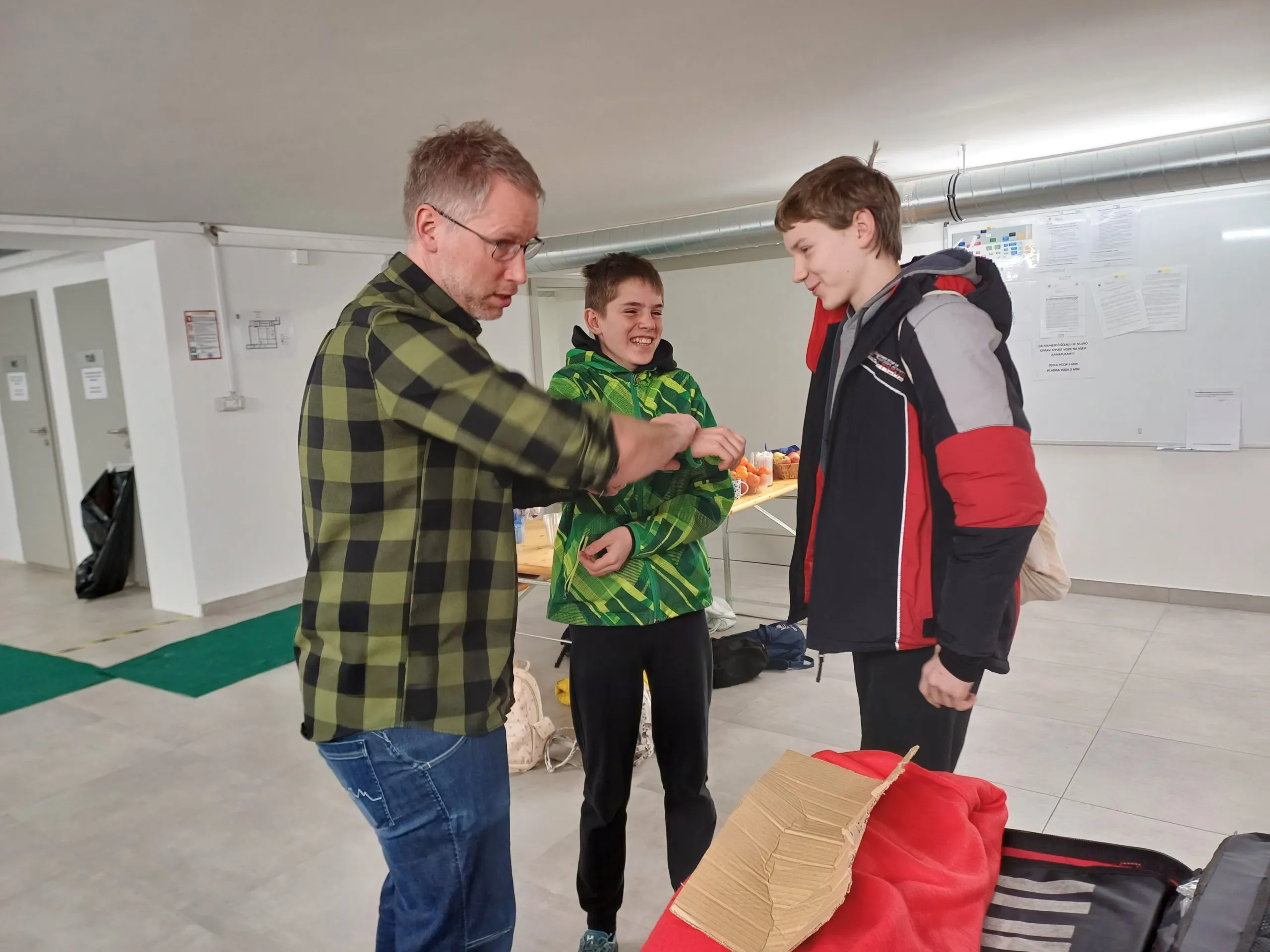 Sprejeli so nas z zajtrkom za vse ekipe, ki so se nato pomešale in svoje znanje še utrdile na delavnicah (od krvavitev, pa do zlomov).
