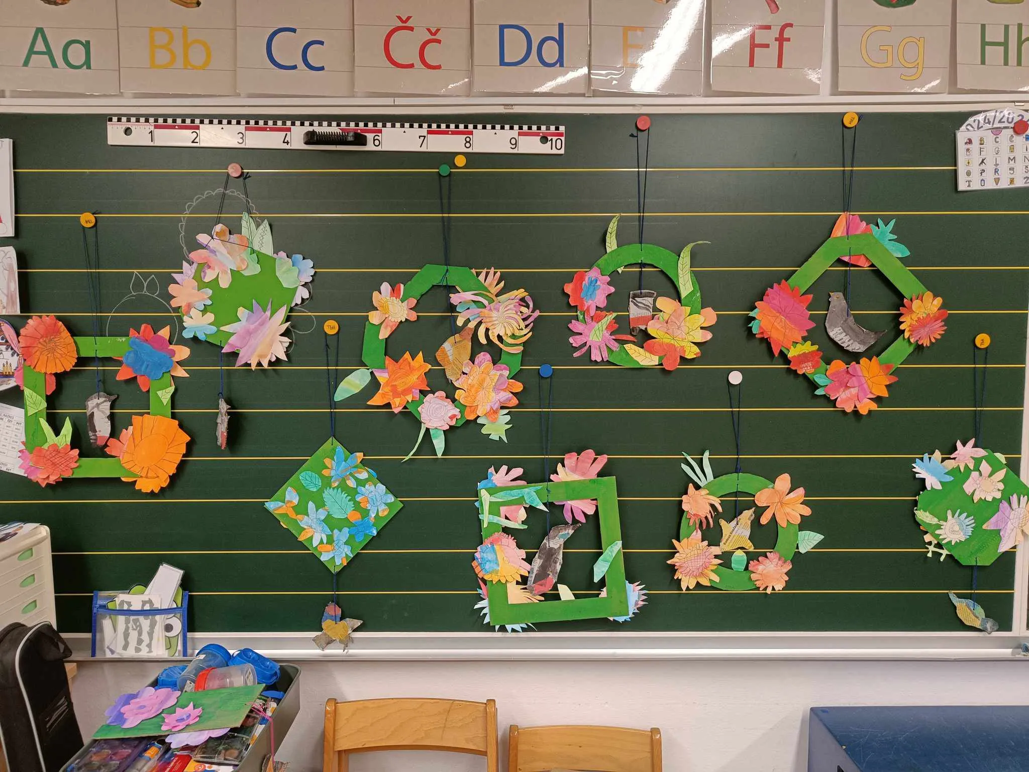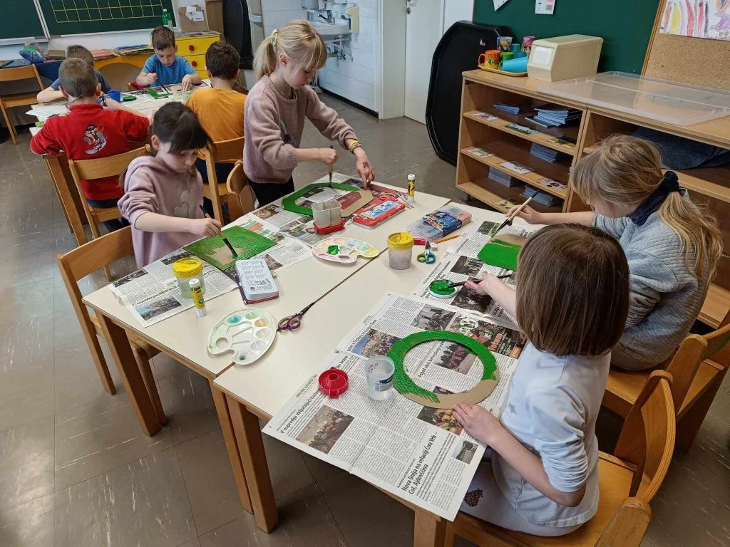 Učenci prvega in drugega razreda so v torek, 11. 3. 2025, združili moči in izdelali barvite pomladne obešanke, da z njimi povabili pomlad v našo šolo.