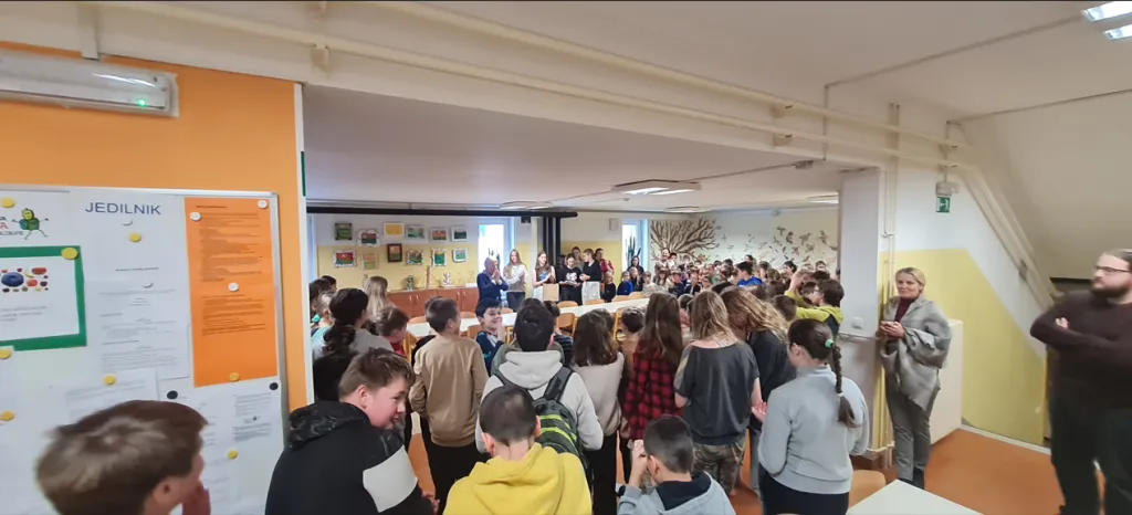 Danes med glavnim odmorom je bila šolska jedilnica živahna in polna navdušenja. Članice otroškega parlamenta so namreč izvedle srčno in plemenito akcijo, ki ima svoj izvor v socialni igri »Skrivni prijatelj« in so jo poimenovale »Prijatelj sporoči«. Akcija je bila zasnovana z namenom, da bi šolski duh dvignili na novo raven in da bi spodbudila učence, naj se prepustijo vzdušju dobrote in prijaznosti, ki ju prinaša december.