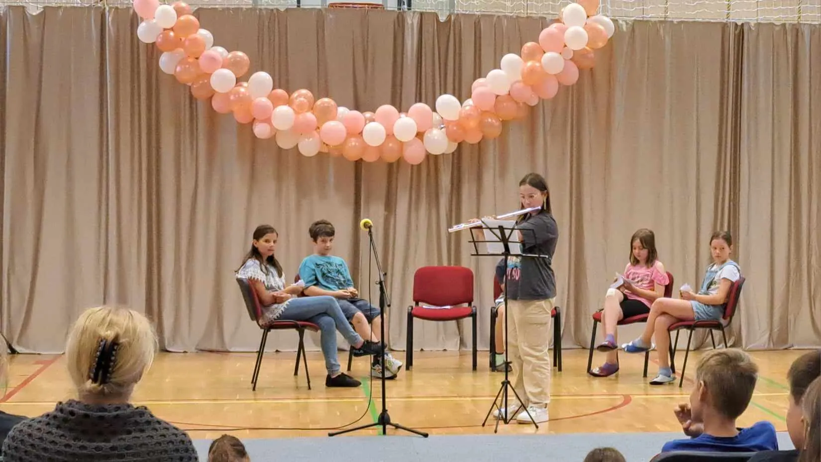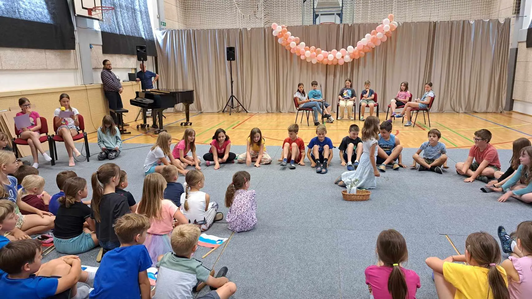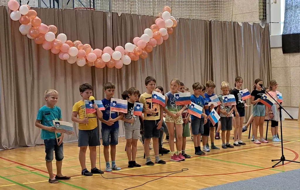 Prvošolci so recitirali pesem Ferija Lainščka Kaj moraš med počitnicami storiti, drugošolci so recitirali pesem Čarobna dežela, tretješolci so nas razveselili s slovenskimi zastavicami in voščilom Republiki Sloveniji za rojstni dan, četrtošolci so nastopili z dramatizacijo Franeta Puntarja: A, petošolci pa s kratkimi predstavitvami znanih osebnosti, ki so oblikovale našo državo. Program so popestrile plesalke 1. do 8. razreda s tremi plesnimi točkami pod mentorstvom Neje Jereb, EL1 plesna scena.