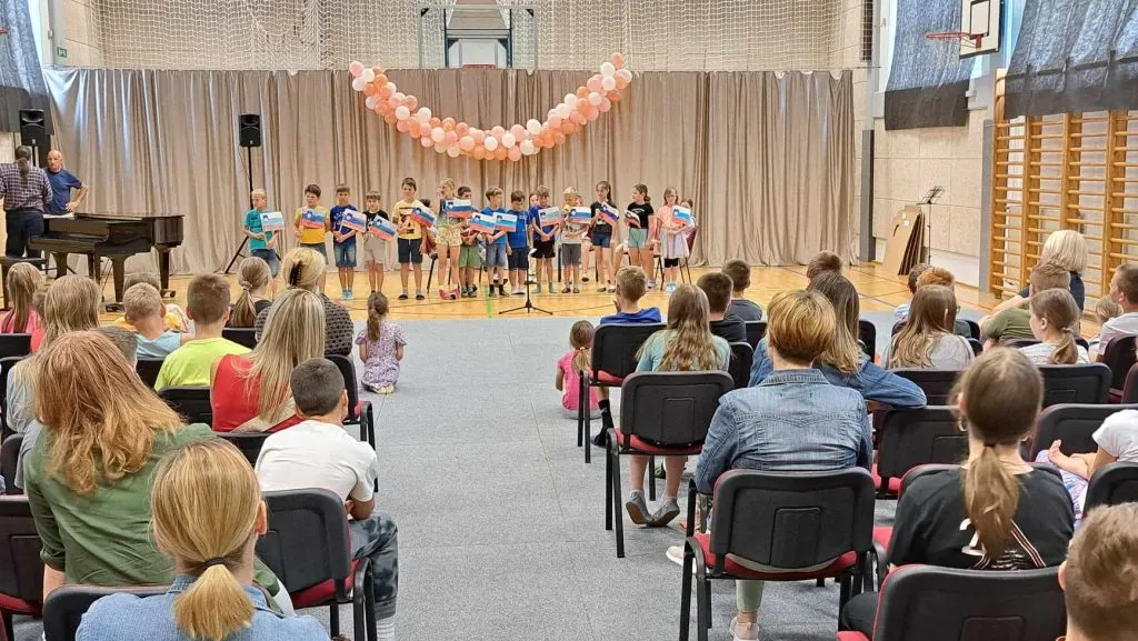 V četrtek, 20. 6., je v telovadnici OŠ Črni Vrh potekala prireditev ob dnevu državnosti in zaključku šolskega leta 2023/24. Učenci: Lenart Rupnik, Alex Habe, Matej in Tadej Kavčič in Vito Bizjak so zapeli slovensko in šolsko himno, sledil je nagovor ravnateljice, ge. Karmen Simonič Mervic, ki je učence pospremila v počitnice s spodbudno besedo.