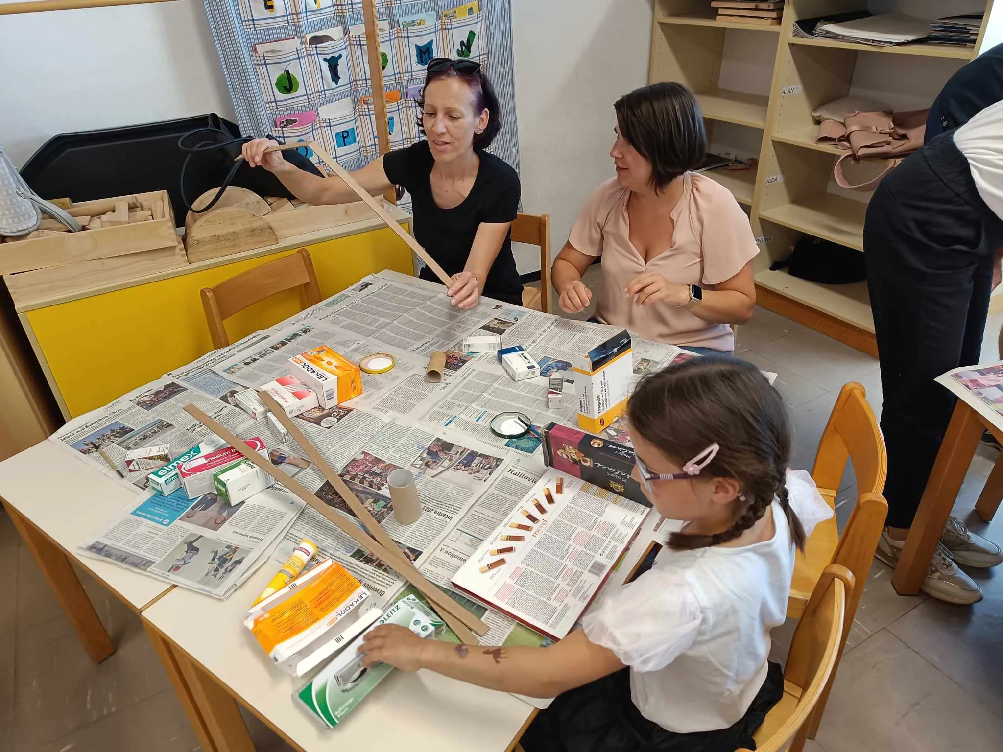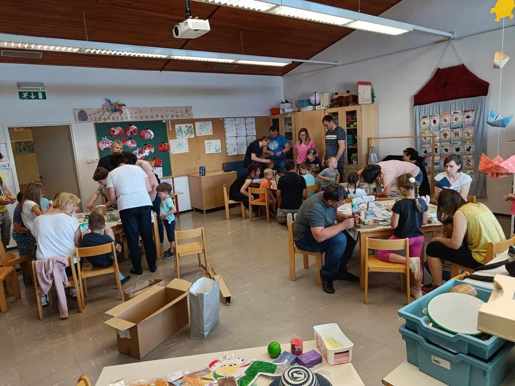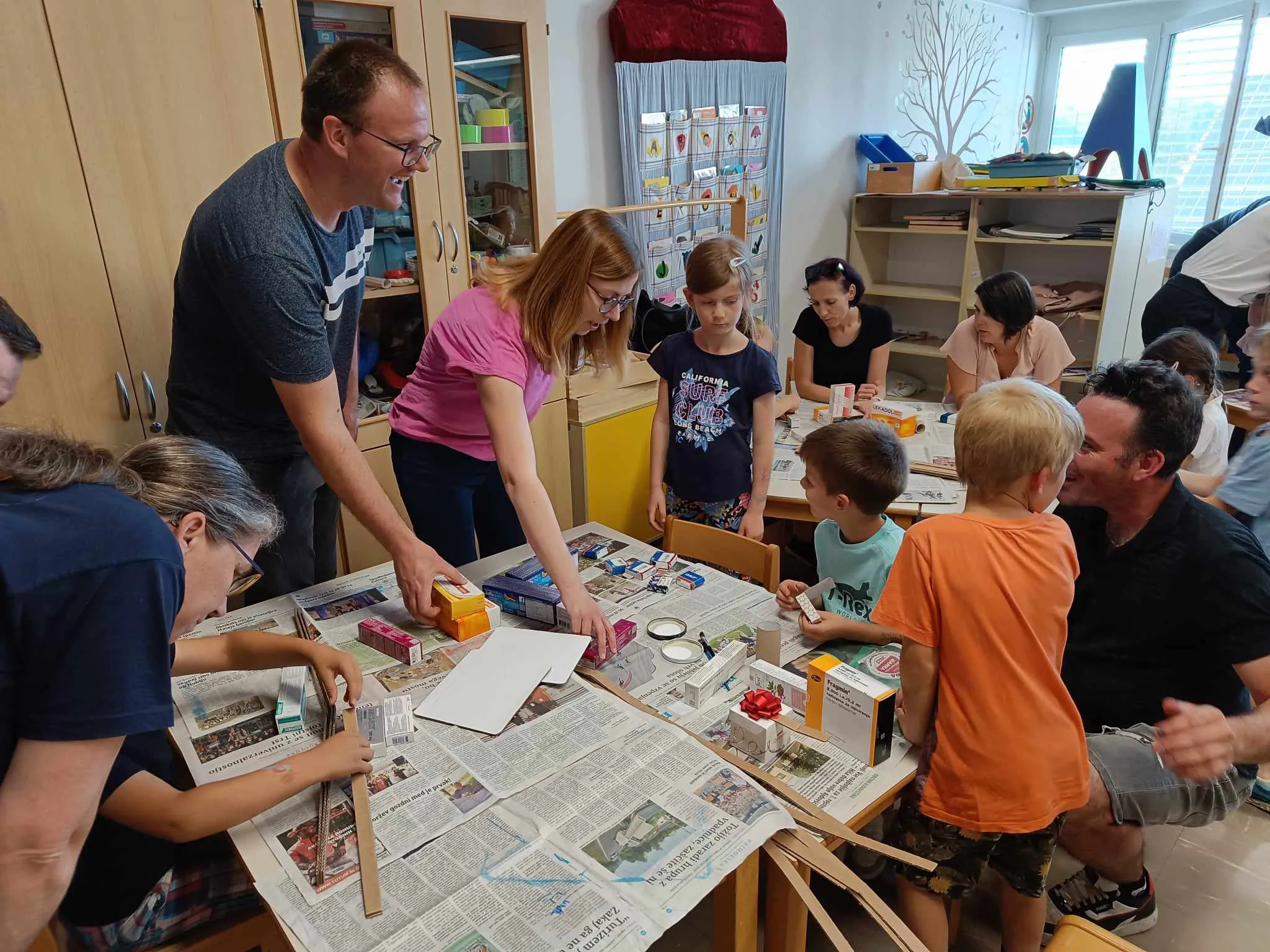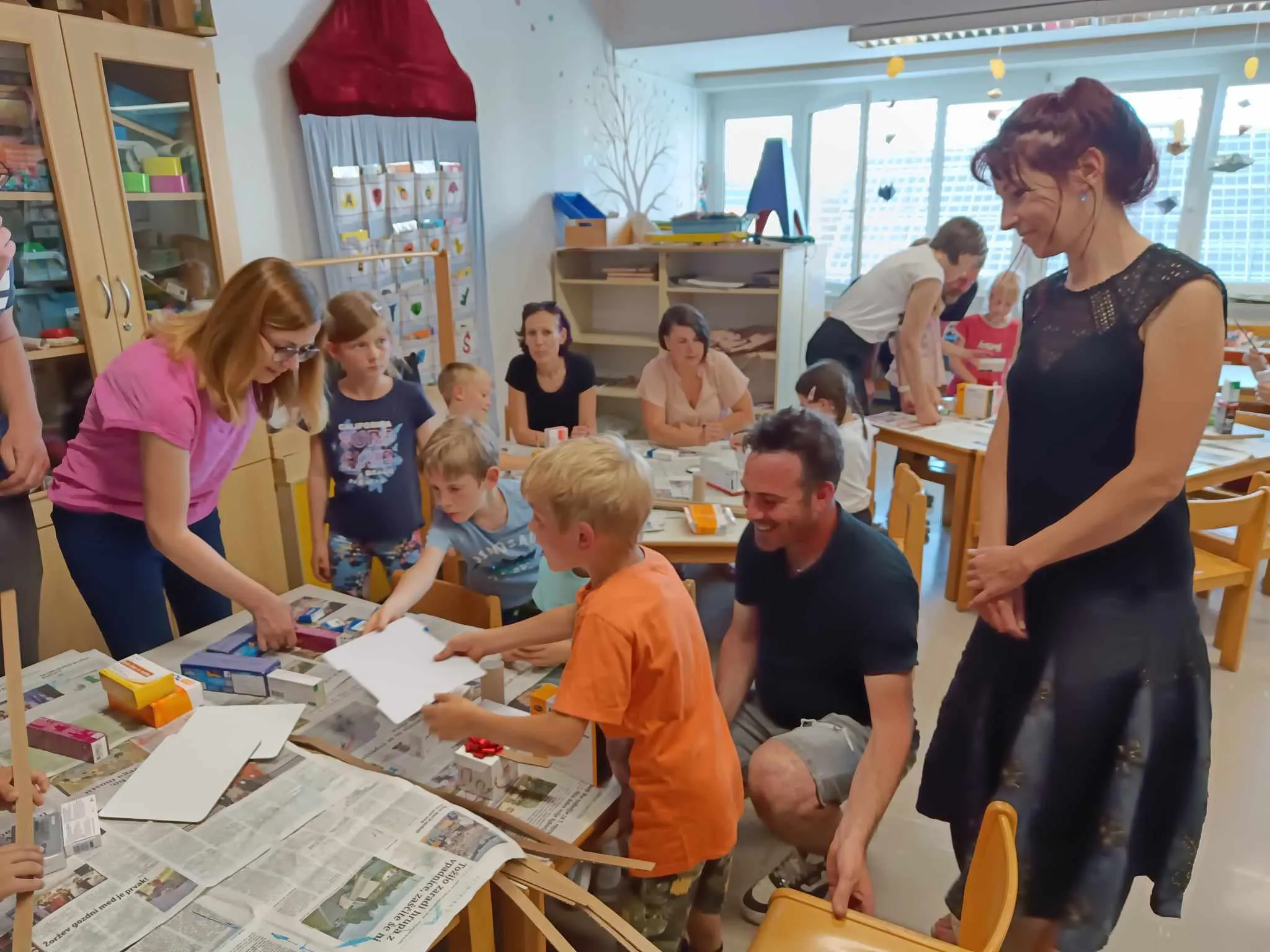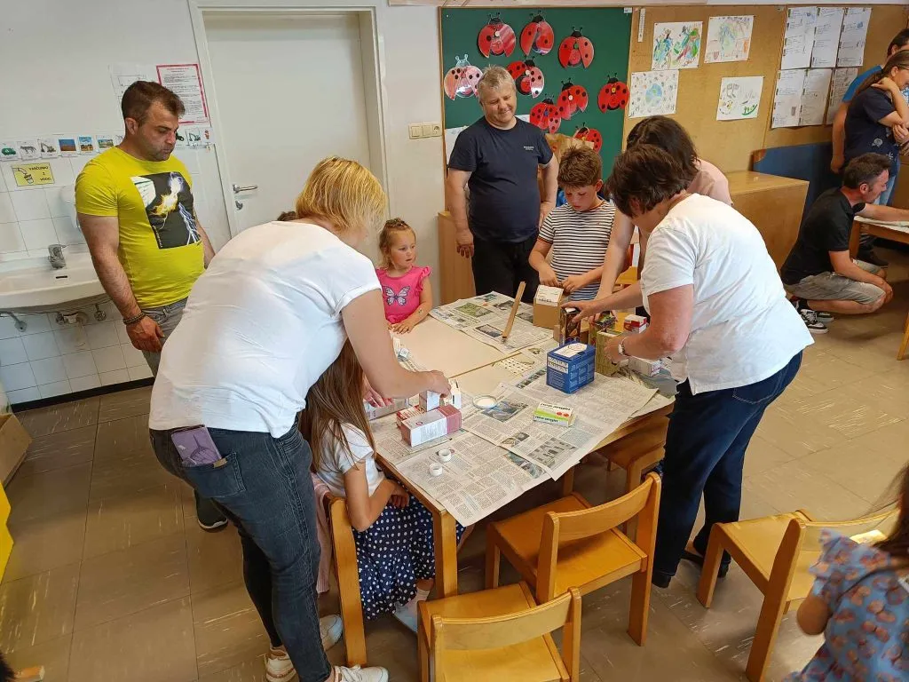 Drugi del dogodka so učeni ustvarjali skupaj s starši in izdelali hiše, stadion, kmetijo, gledališče iz škatlic in odpadnega kartona.