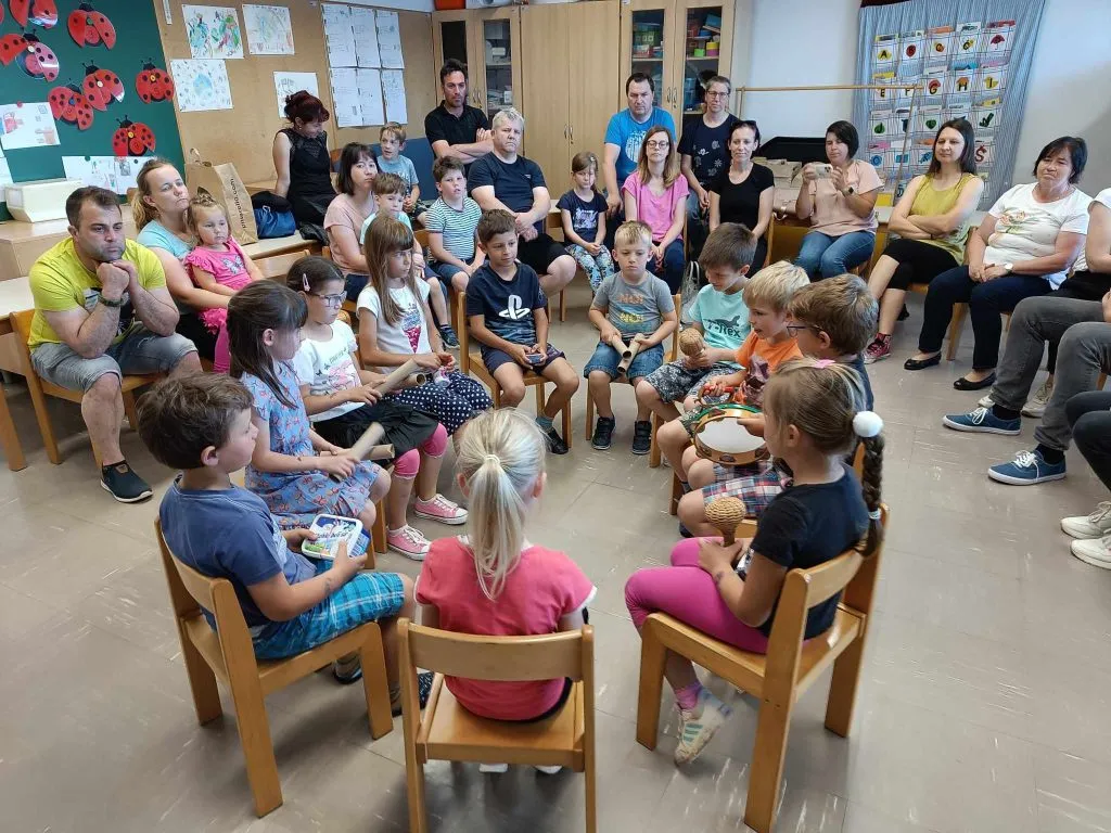 Učenci so staršem pokazali spretnosti ritmiziranja in ritmičnega ustvarjanja. Zaplesali so ritmični ples, pesmi spremljali s preprostimi glasbili, ki so jih sami izdelali in Orffovimi glasbili. Povedali zgodbo o svojem kužku in s preprostimi lutkami recitirali pesem Boštjana Gorenca Pižama – Kaj se skriva očku v bradi.
