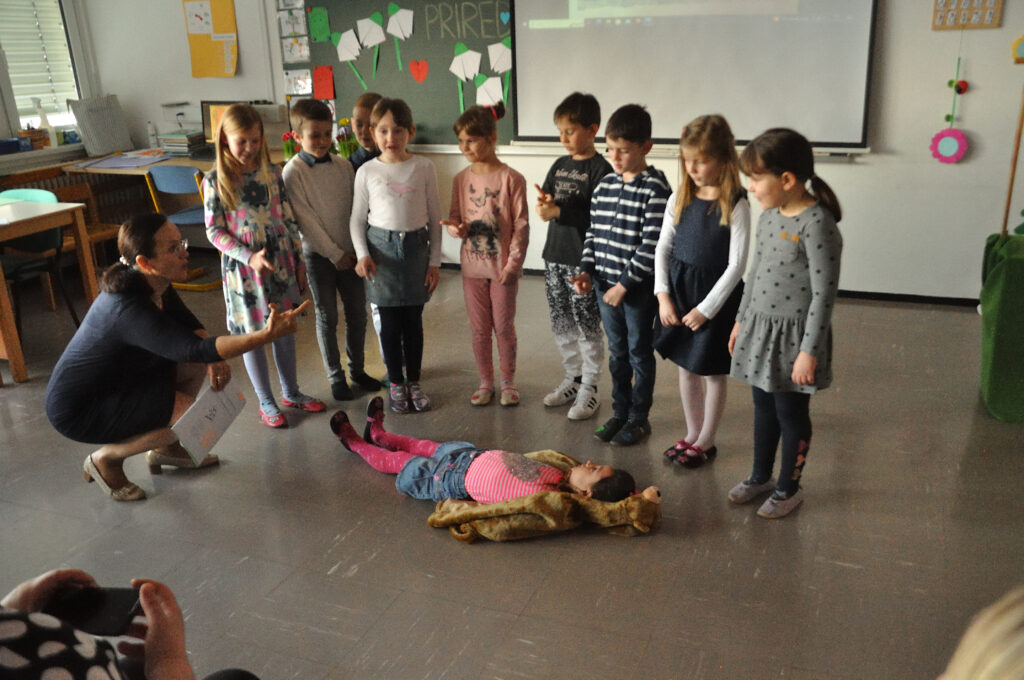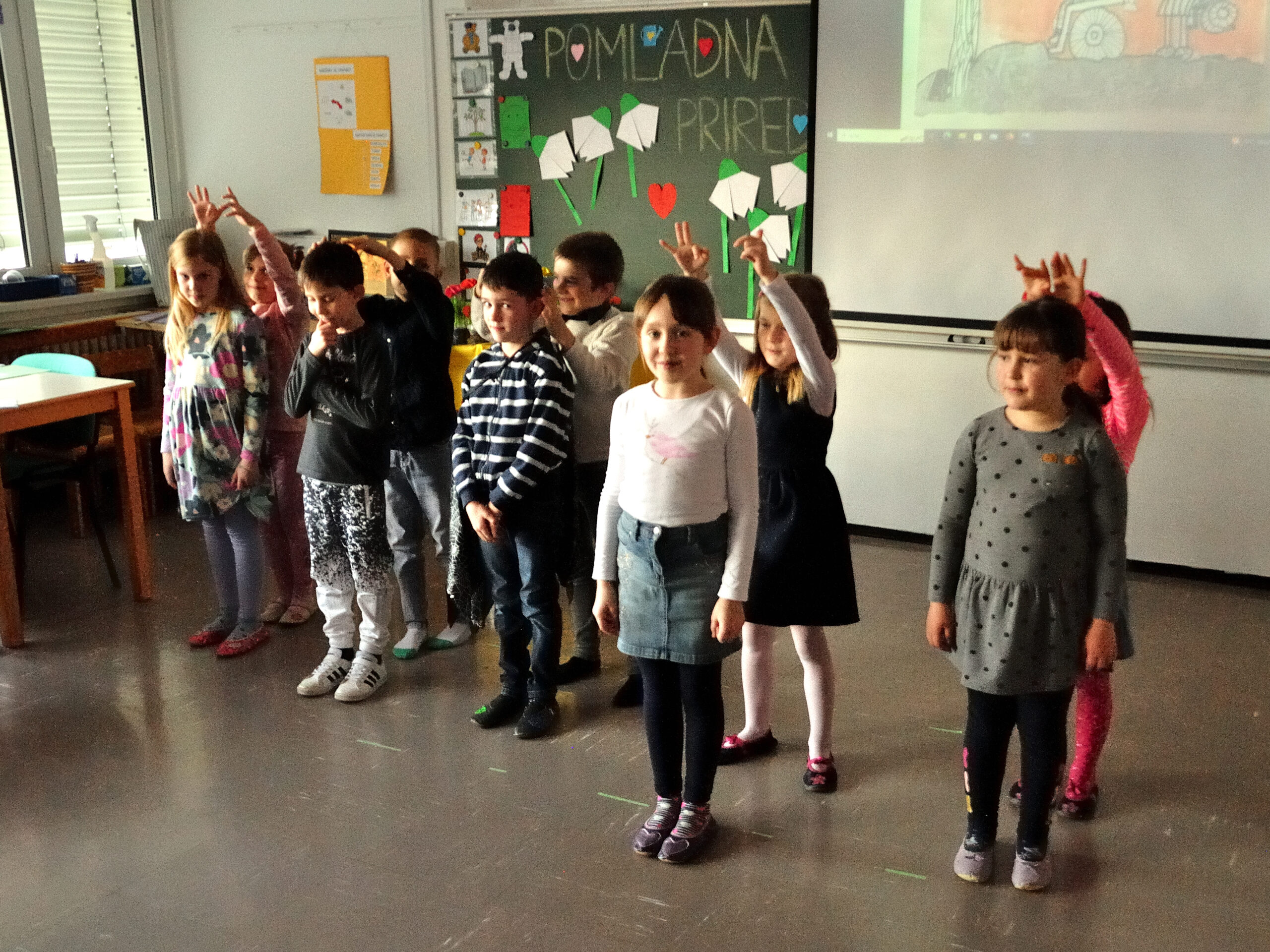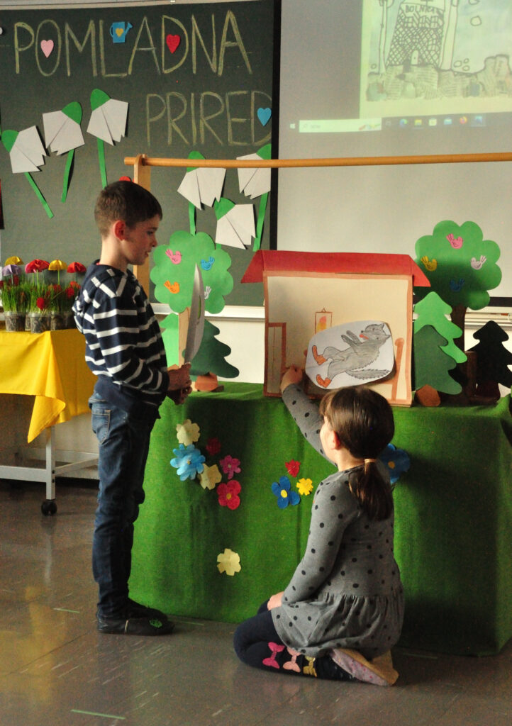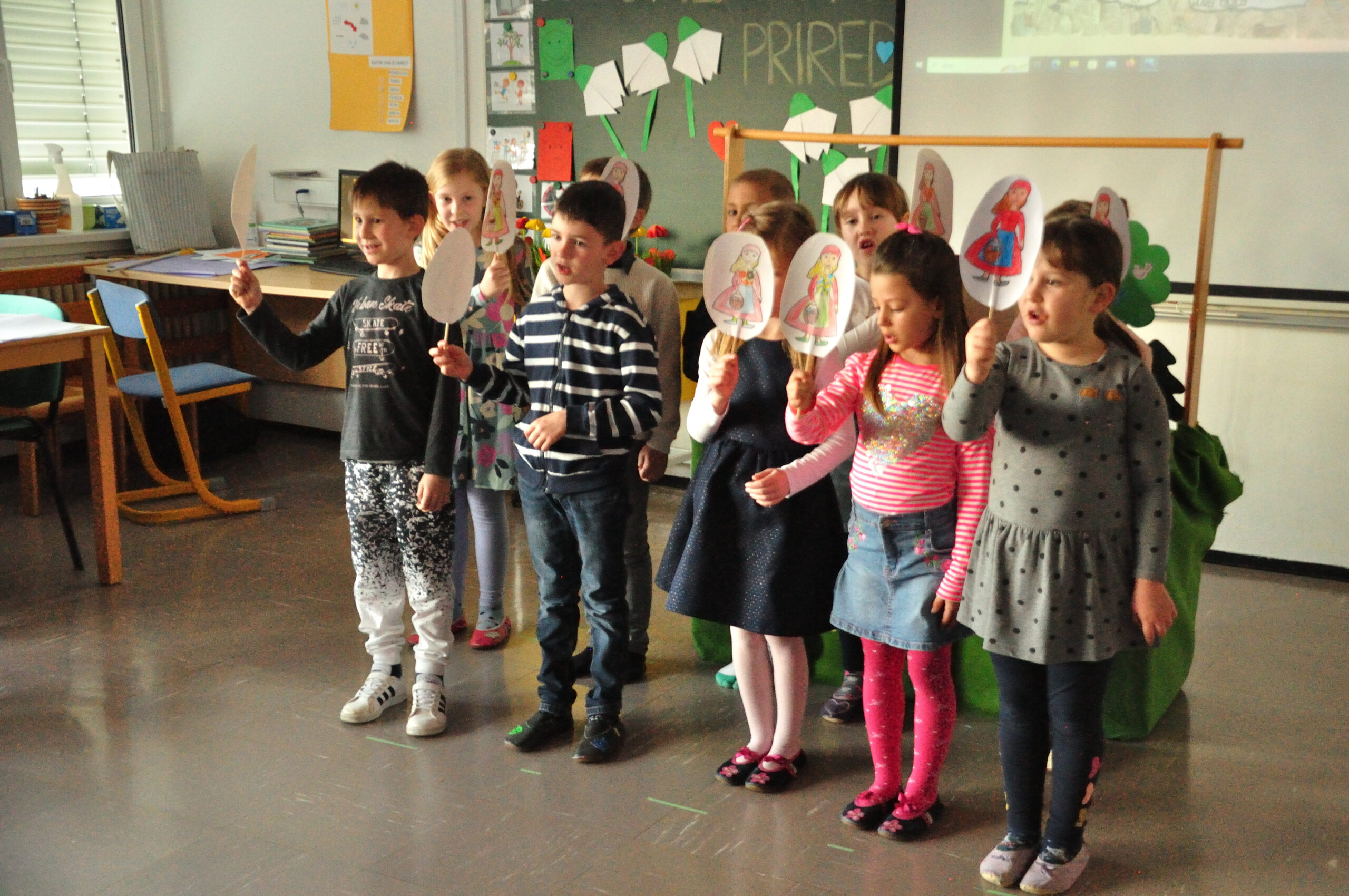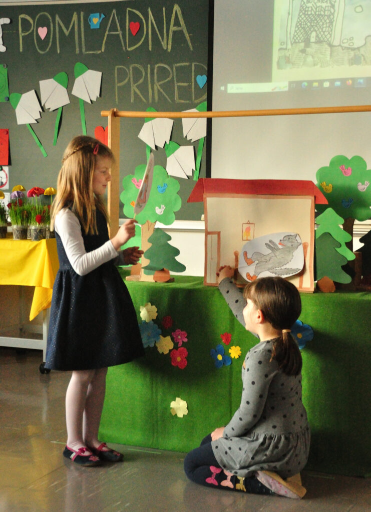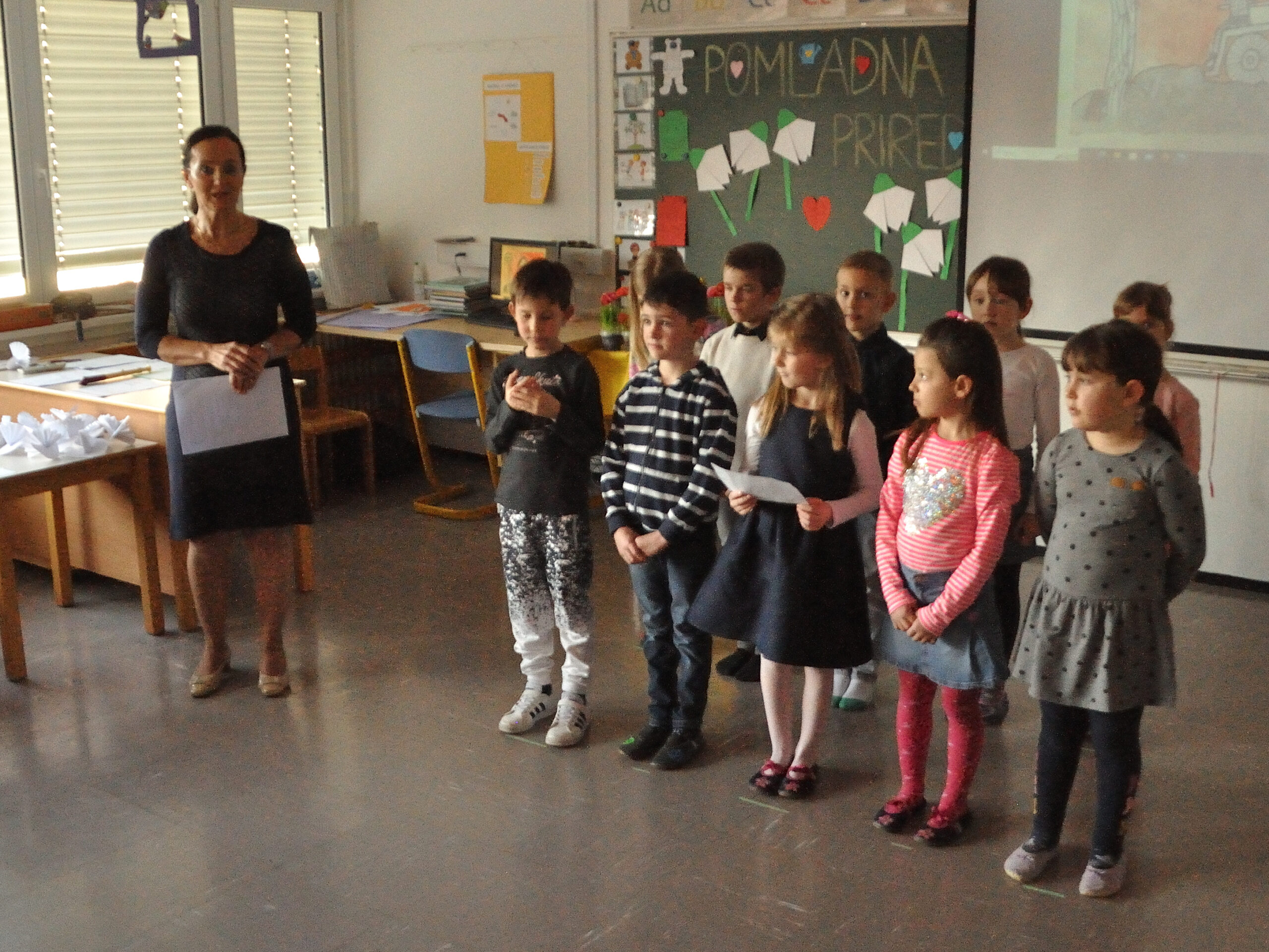 Prvošolci in njihovi starši so v torek, 21. 3. 2023 praznovali prihod pomladi. Ob 17. uri so se vsi zbrali v učilnici 1. razreda. Učenci so za starše pripravili pester program. Prav vsi so se predstavili, peli, igrali, recitirali, plesali in se igrali, predstavili pa so tudi likovni izdelek Pomoč potrebujemo vsi Skupina otrok je zaigrala lutkovno igrico Rdeča kapica. S pesmico Mali zvonček pa so otroci še enkrat sporočili, da je prišla pomlad in sonček naš zlat. Pesem Jaz imam pa goslice, rastoče žito in rožica iz papirja so bili prav posebno darilo otrok za mamice. Ob koncu prireditve je vse prisotne pozdravila ravnateljica Karmen Simonič Mervic in vsem zaželela svetlo, srečno in sončno pomlad.