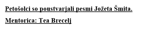 Na prireditvi se nam je pridružila gospa Nives Brezovnik iz Zavoda za kulturo, turizem in razvoj Rogatec, ki nas je v začetku januarja povabila, da sodelujemo in dodamo svoj kamenček v mozaik k letošnji obletnici. Odzvali smo se in sodelovali v likovnem in literarnem natečaju ob stoletnici rojstva Jožeta Šmita. V Rogatec smo poslali 61 del naših učencev.