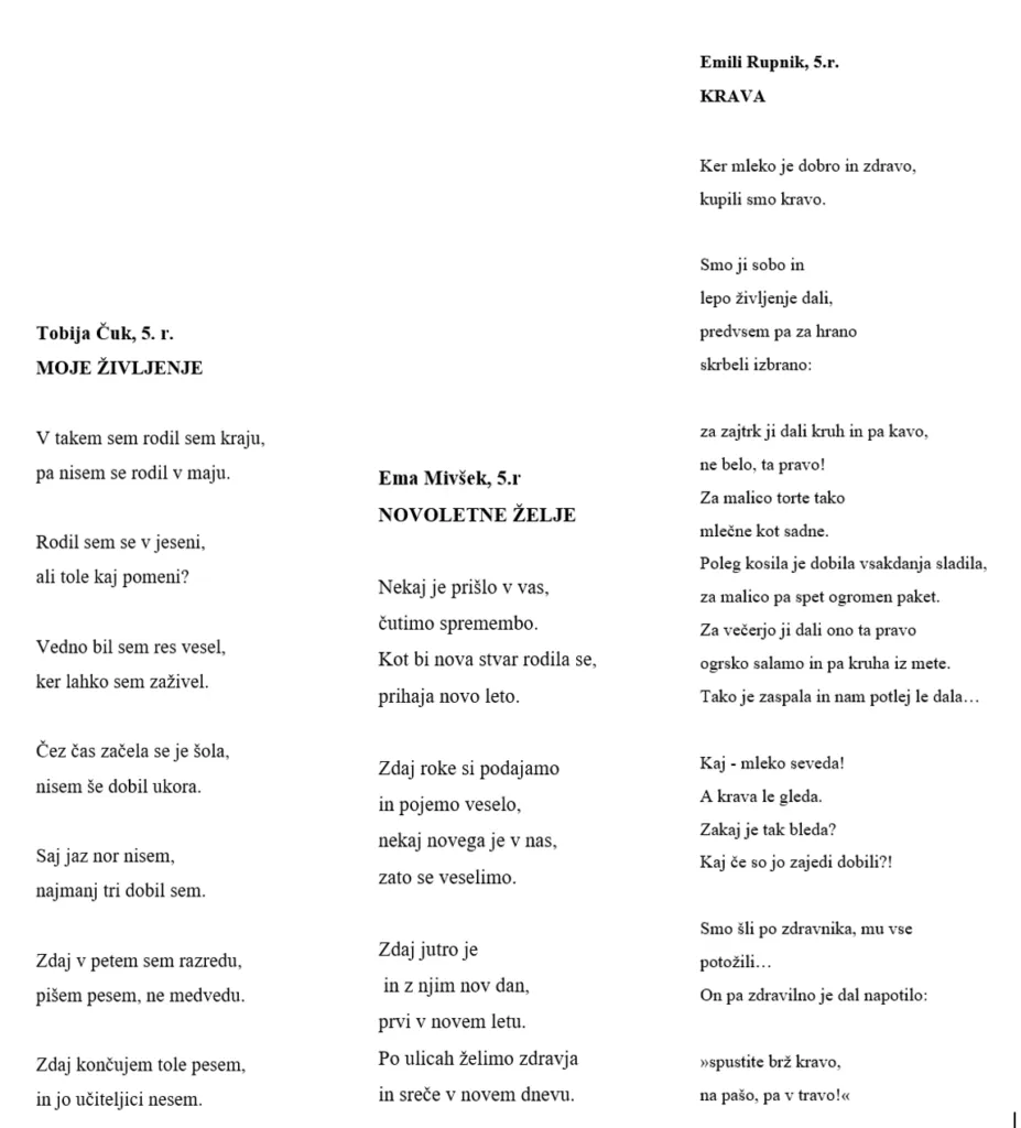 Z branjem Šmitovih pesmi, s prireditvijo in poustvarjanjem učencev gojimo spomin na pesnika Jožeta Šmita in njegovo delo. Rože poezije-pesmi Jožeta Šmita- so nas popeljale na sprehod po pisanem travniku, med raznobarvne pesnikove šopke.