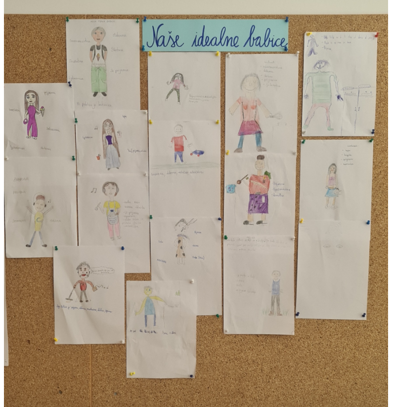 Zadnja šolska ura je bila namenjena pogovoru o naših idealnih babicah. Nastala je spodnja razstava.
