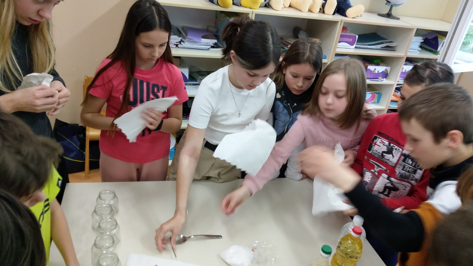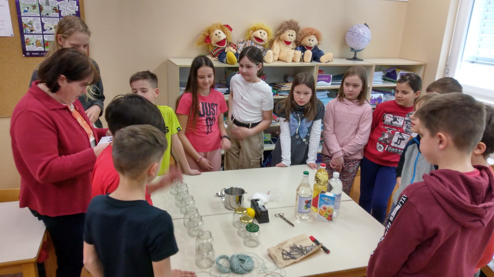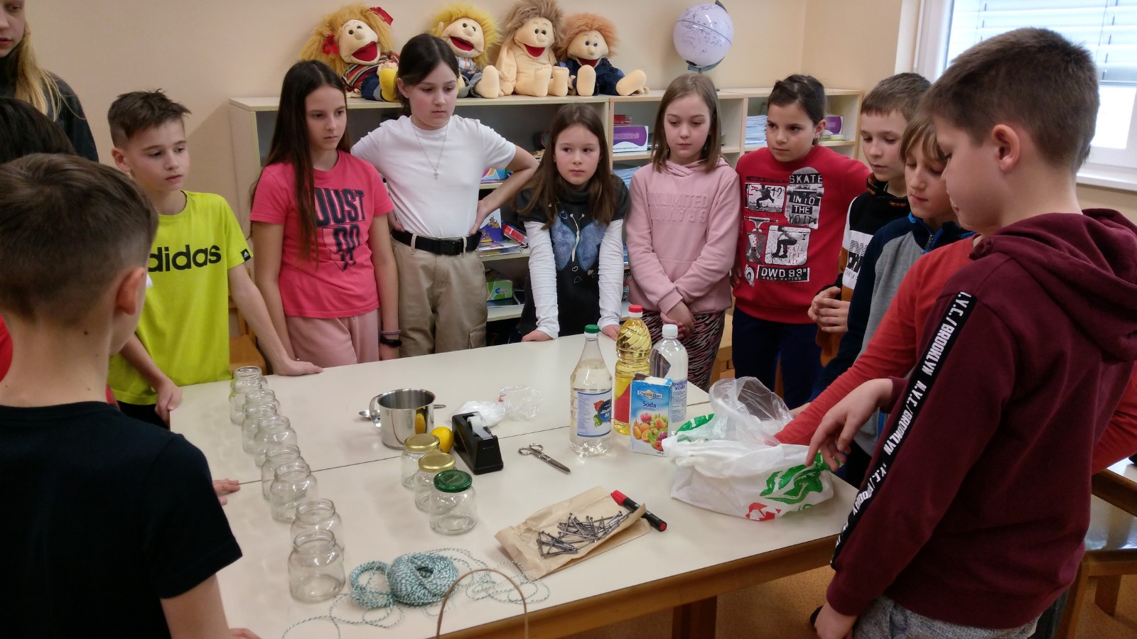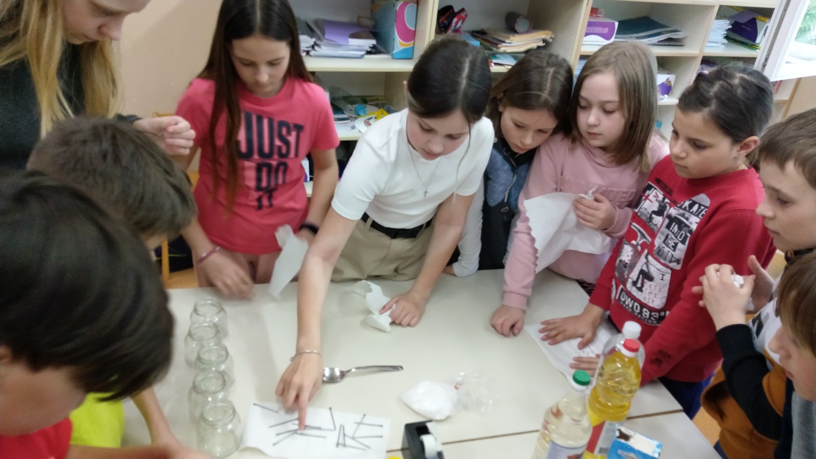 Danes so skupaj naredili poskus, kjer bodo opazovali v katerih snoveh in ob kakšnih pogojih žeblji rjavijo. Opazovali bodo vsak dan en teden, o ugotovitvah vam bodo povedali naslednji teden.